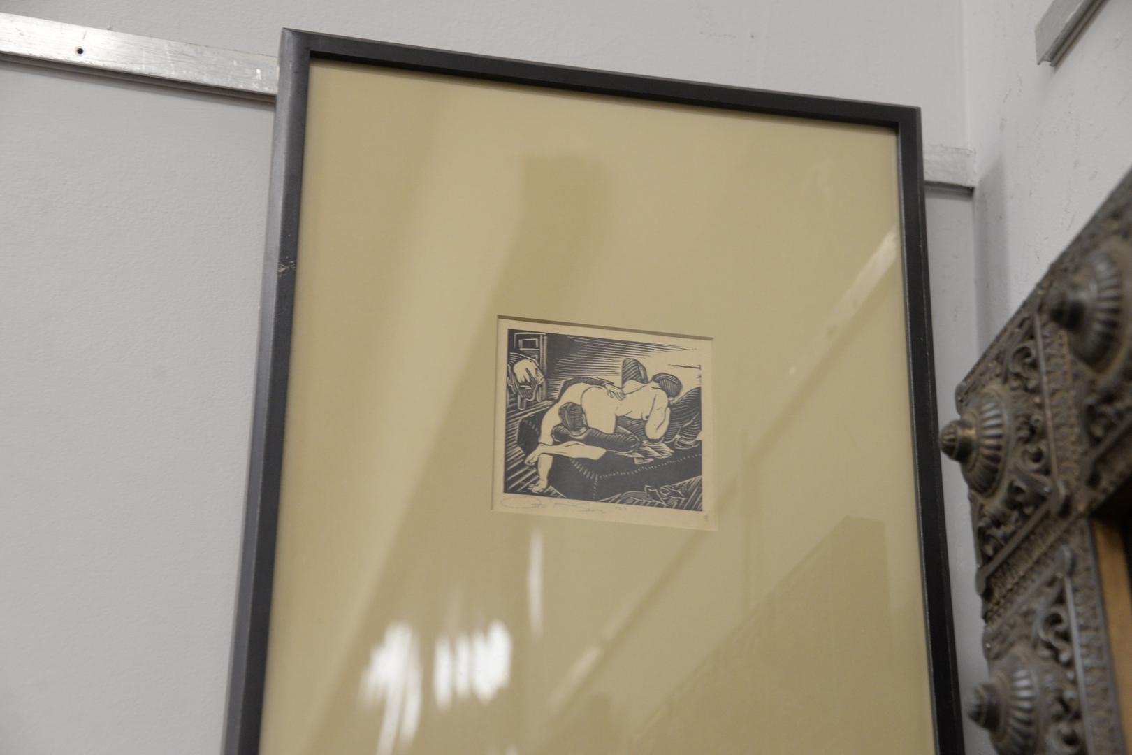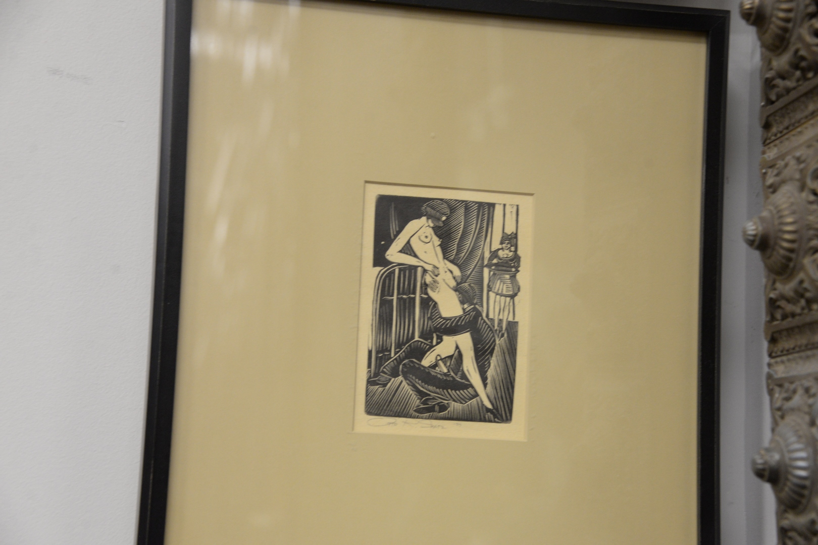 Lot 170: Four Otto Schatz Austrian, 1900-1961, erotic woodblocks on paper, each signed and dated 27 in pencil in the lower margin, largest 5 x 3 3/4.