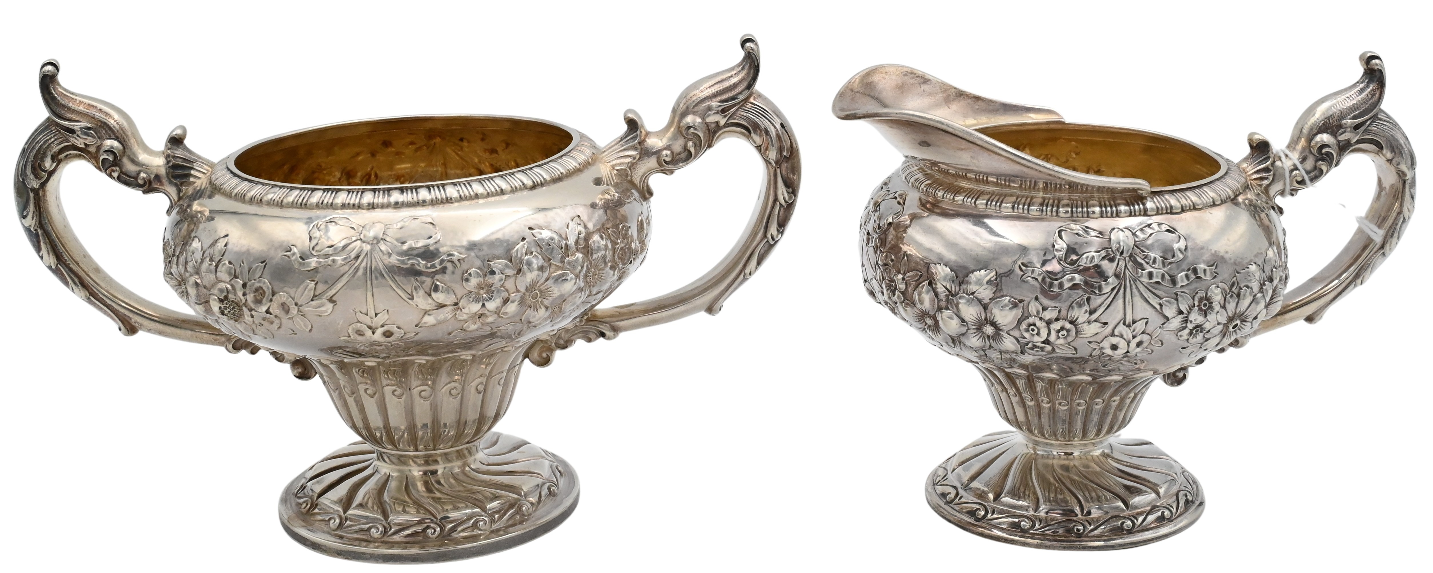 Lot 170: Gorham Repousse Sterling Silver Sugar and Creamer