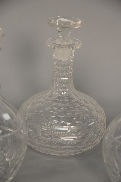 Group of four cut glass bottle decanters, one having four matching glasses. ht. 9 in.