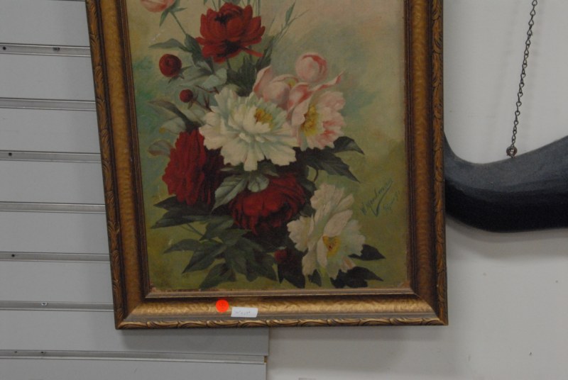 Oil on board, still life, signed lower right, Memkaman.