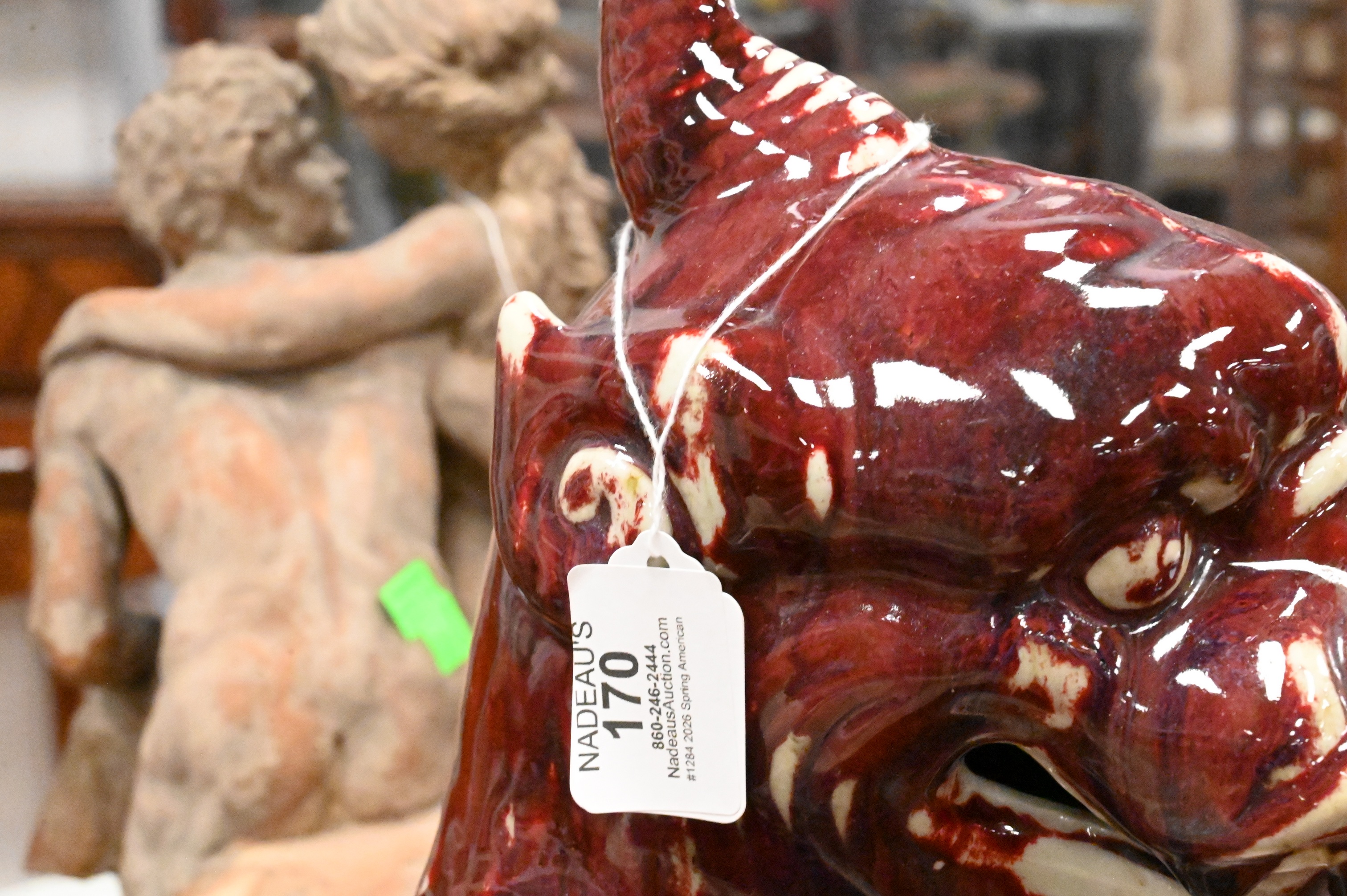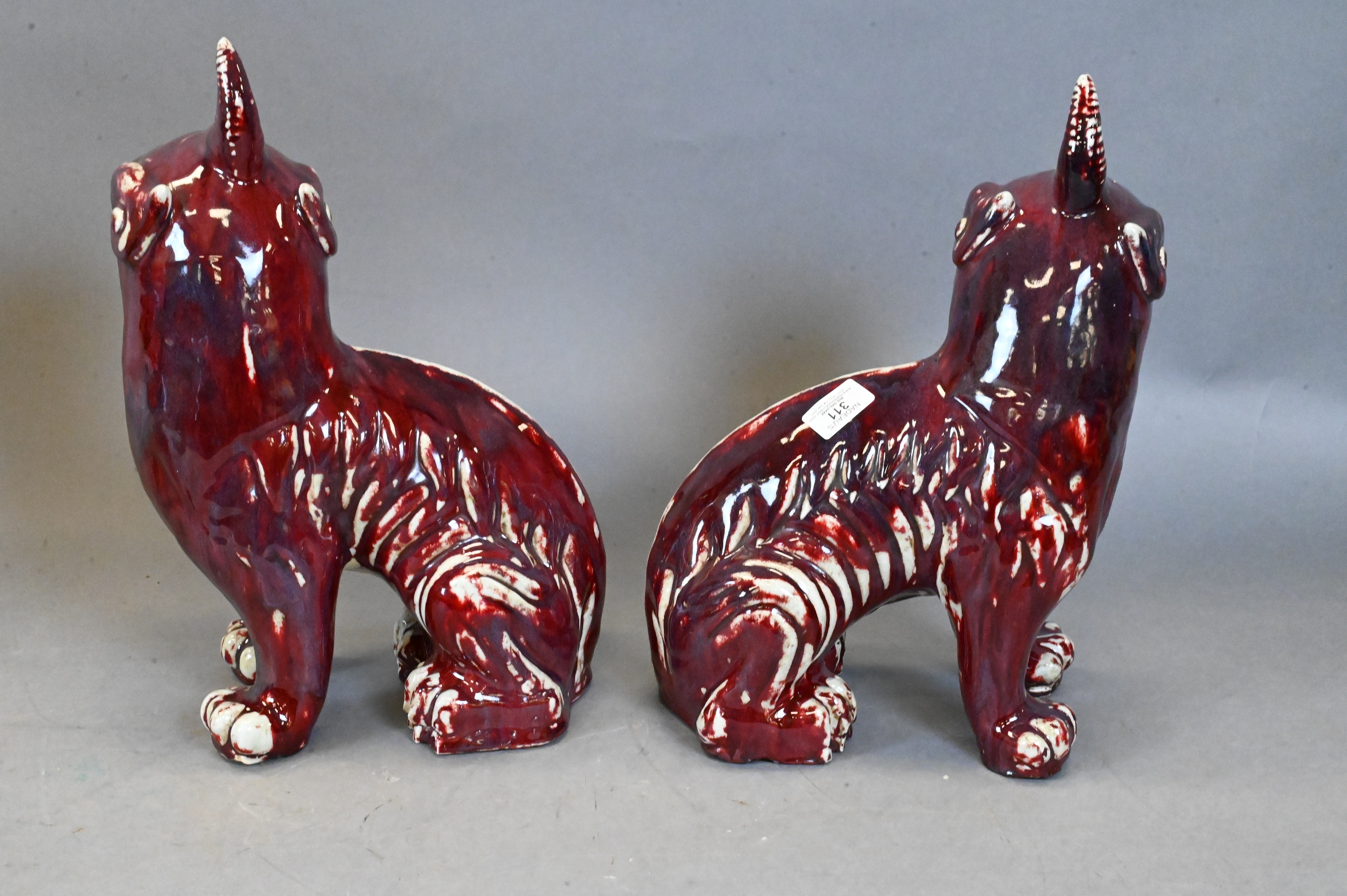 Lot 170: Pair of Chinese Flambe Porcelain Foo Dogs