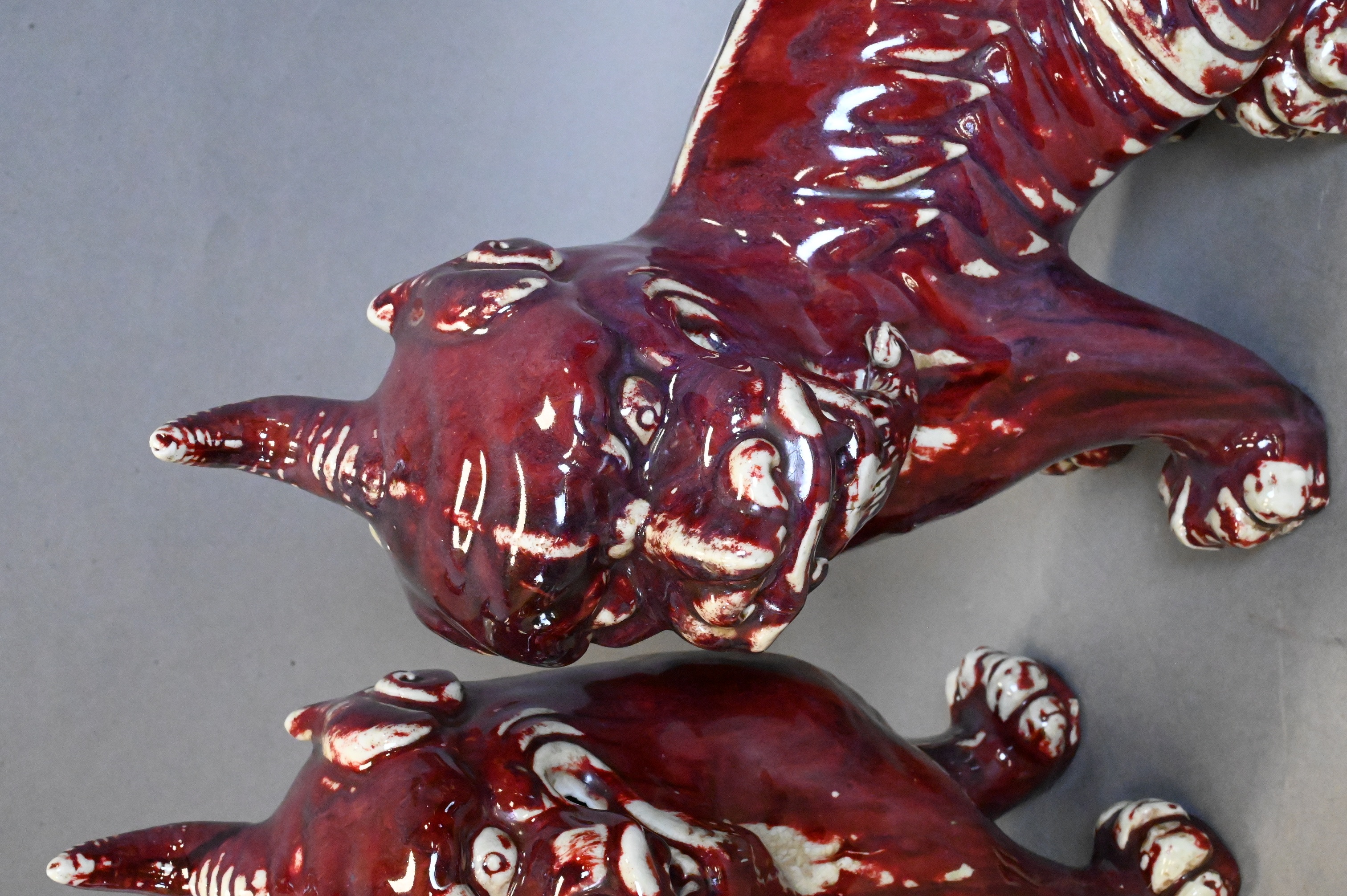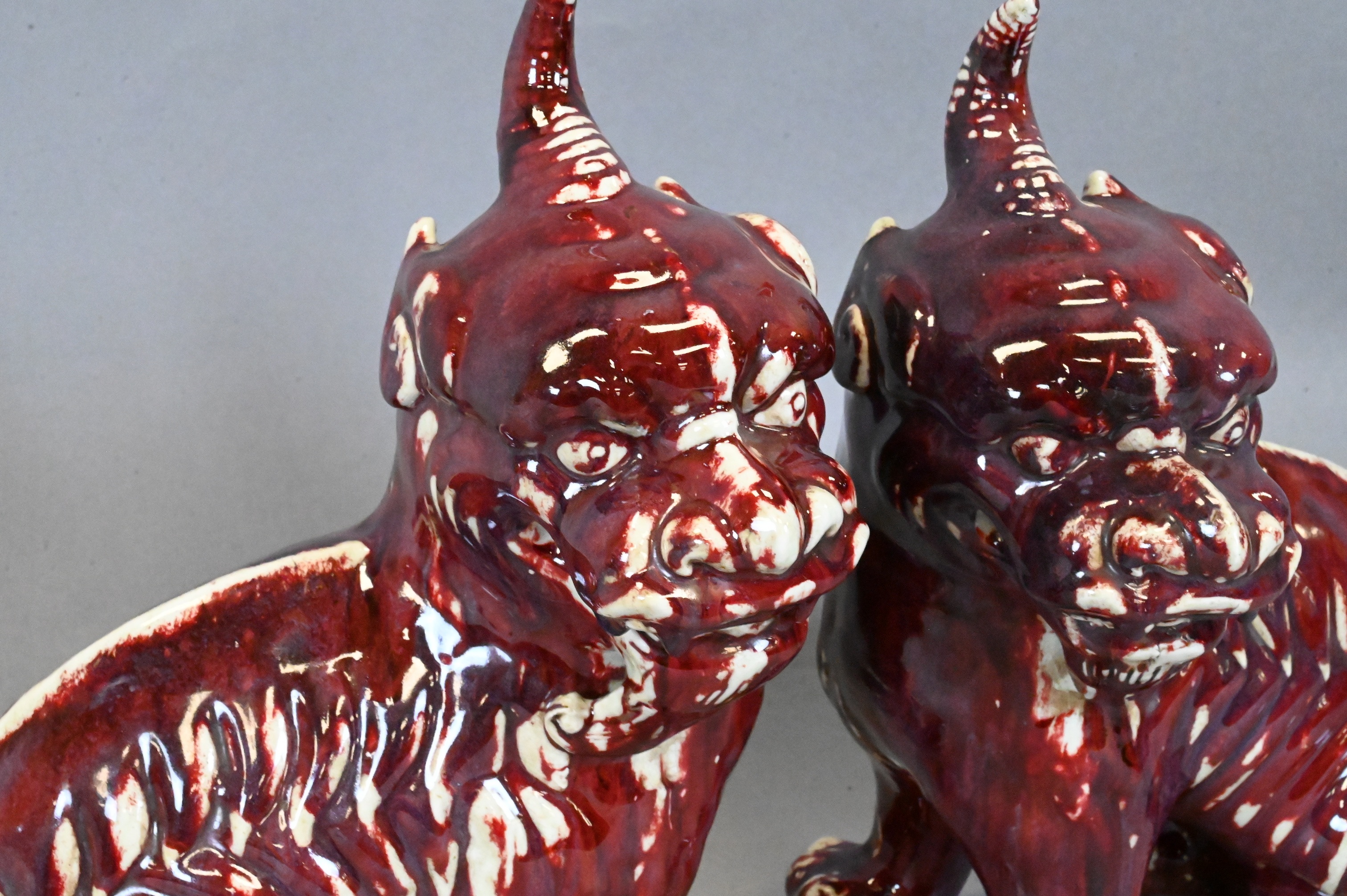 Pair of Chinese Flambe Porcelain Foo Dogs