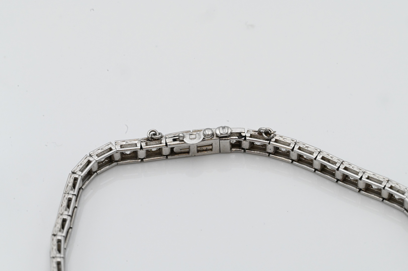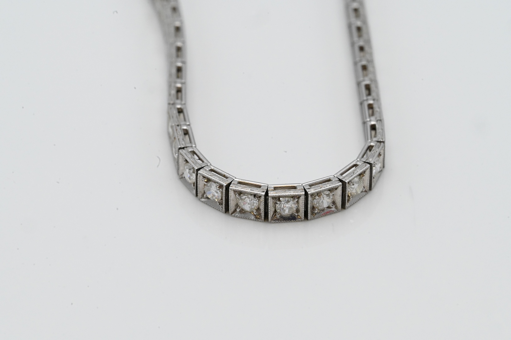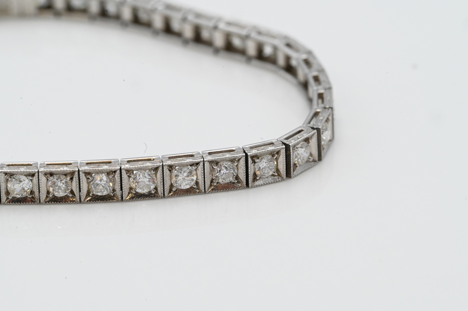 Platinum and Diamond Inline Bracelet 40 diamonds, #1803 length 7 inches, each diamond approximately 2.8 millimeters total weight 17.5 grams Condition: good condition