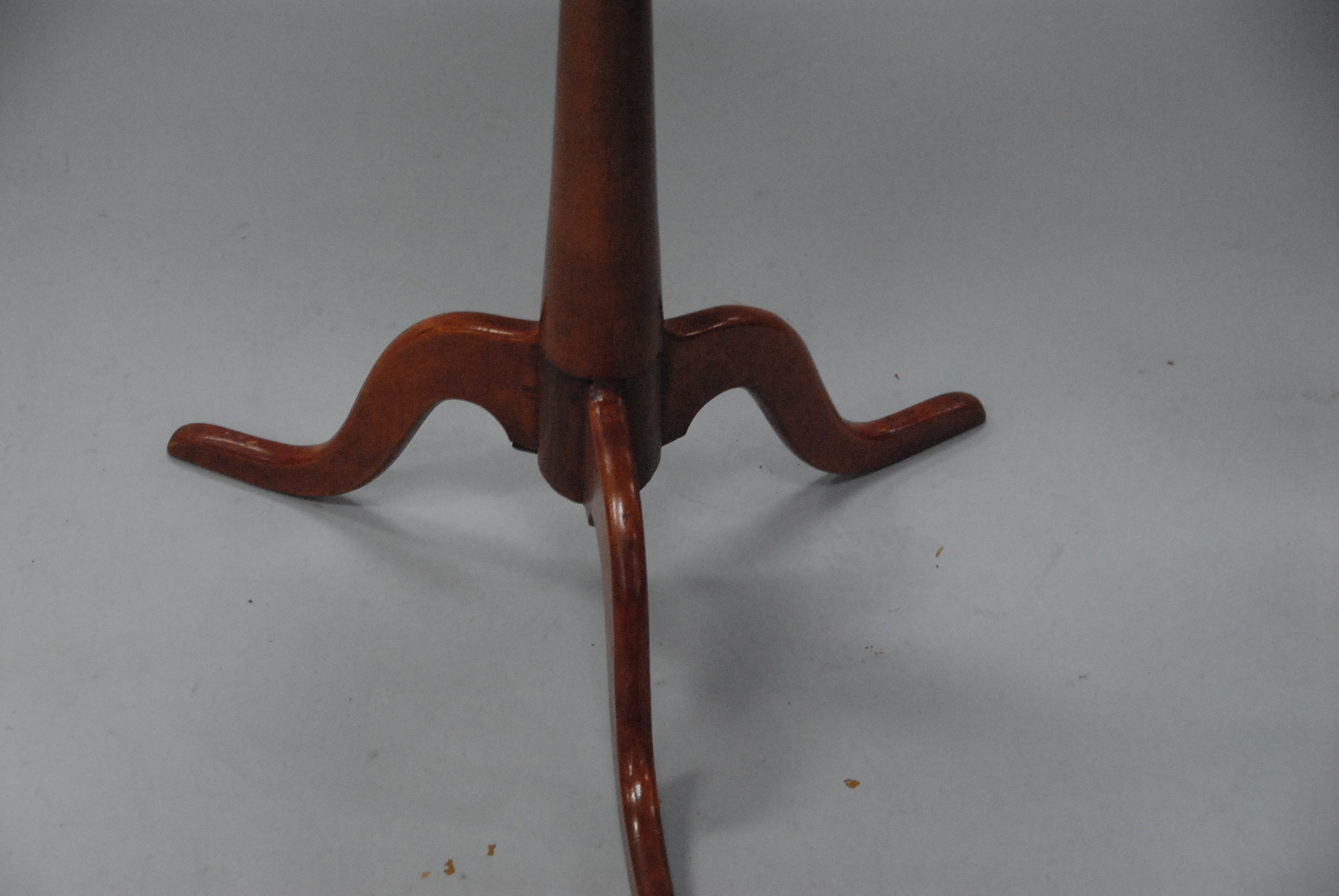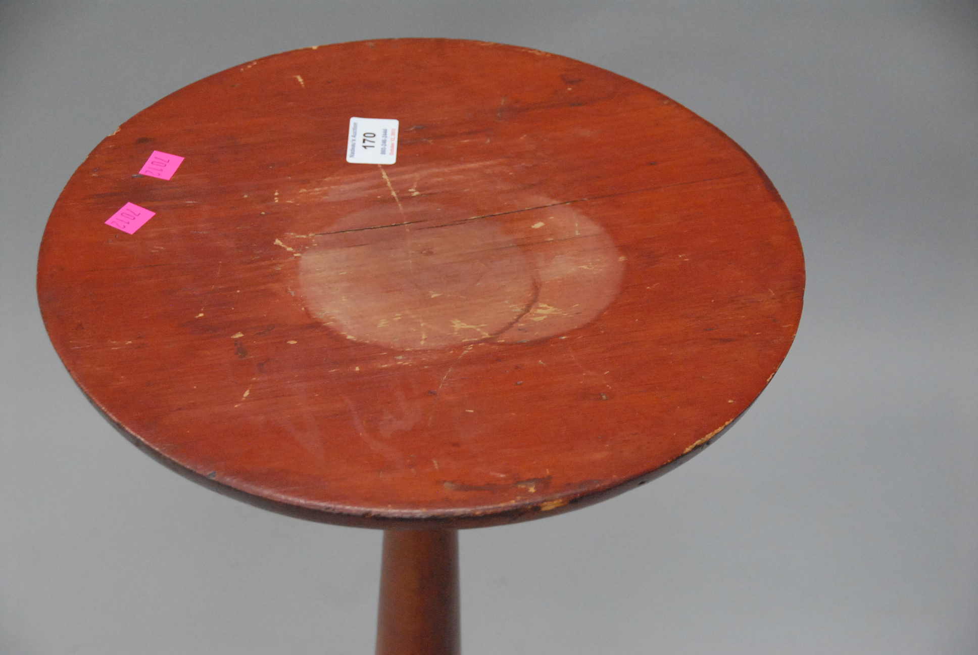 Lot 170: Shaker candlestand with round top having plain turned shaft on tripod base pine refinished. ht. 25in. dia. 15in.