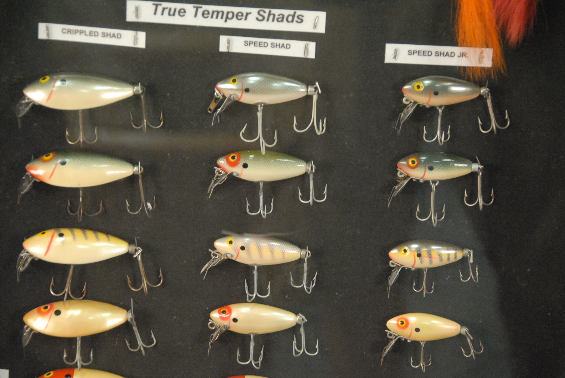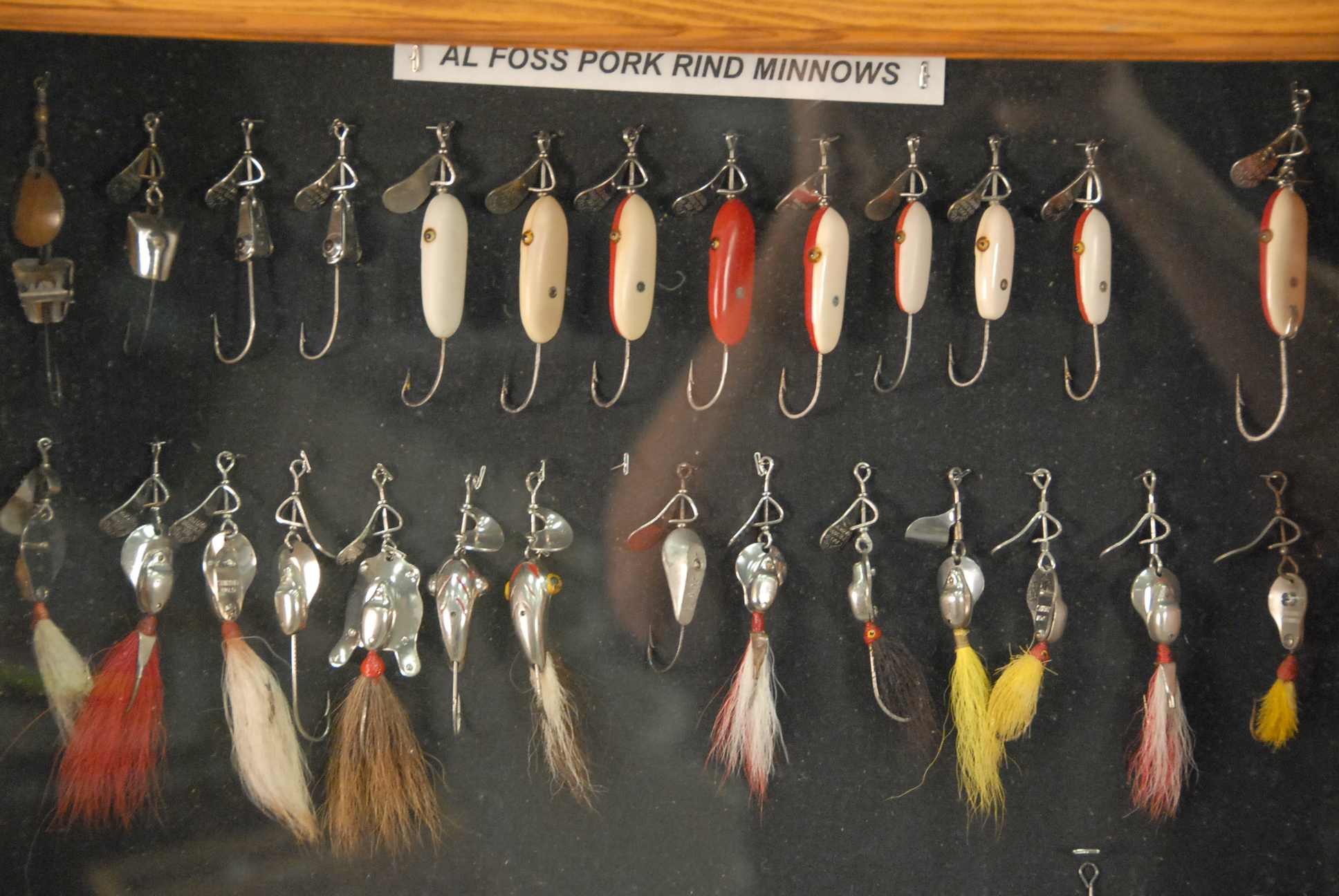 Sixty-seven Al Foss pork rind minnows and True Temper Shads to include Oriental, Skidders, Musky, Little Egypt, Shimmy, Crippled shad, Speed shad, and Speed shad Jr.
