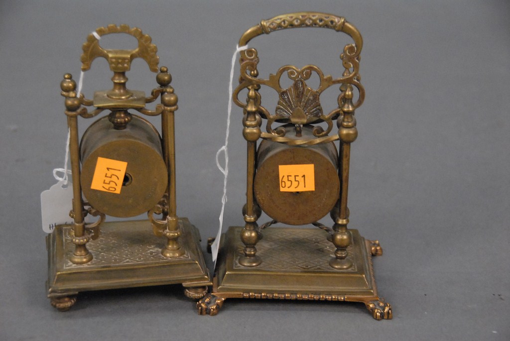 Two brass Victorian shelf clocks marked Parker, 6 1/2 & 7.