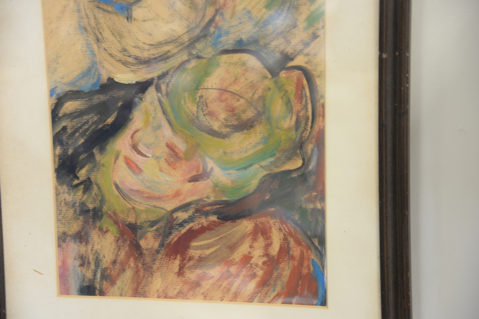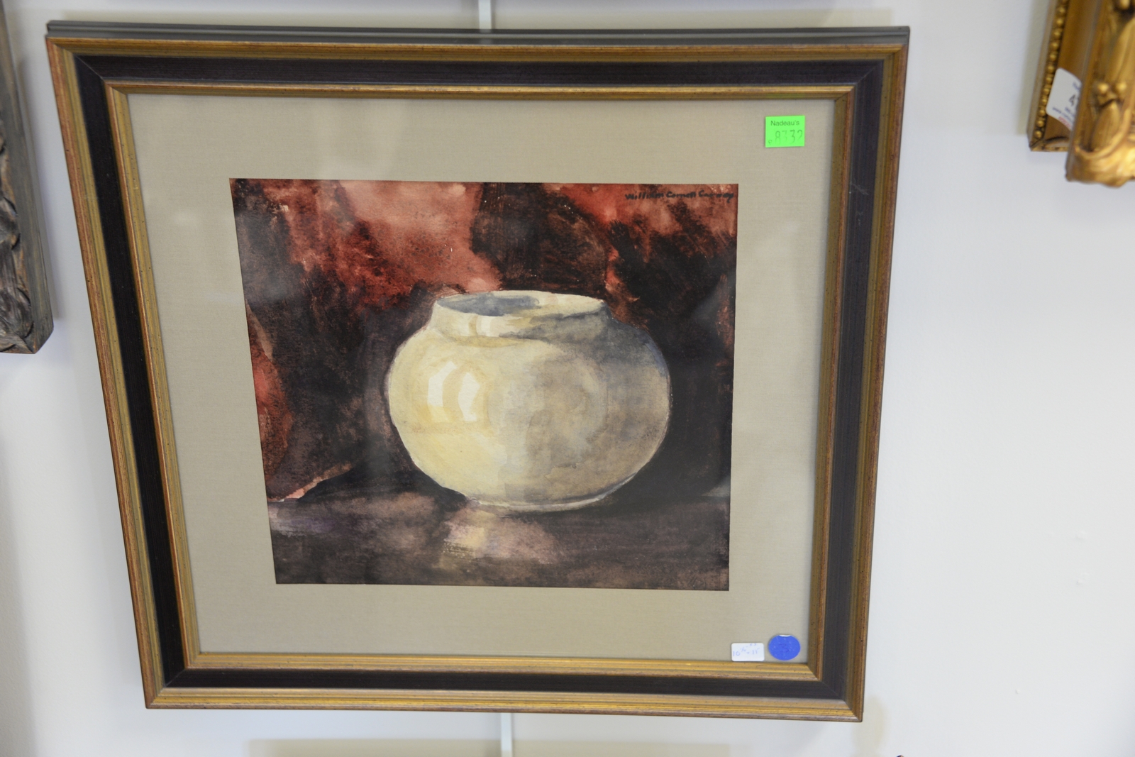Lot 170: Two framed watercolors including William C. Carney still life of vase sight size 10 x 11 and an unsigned watercolor of two women…