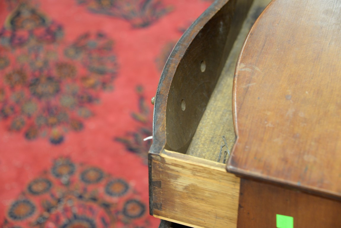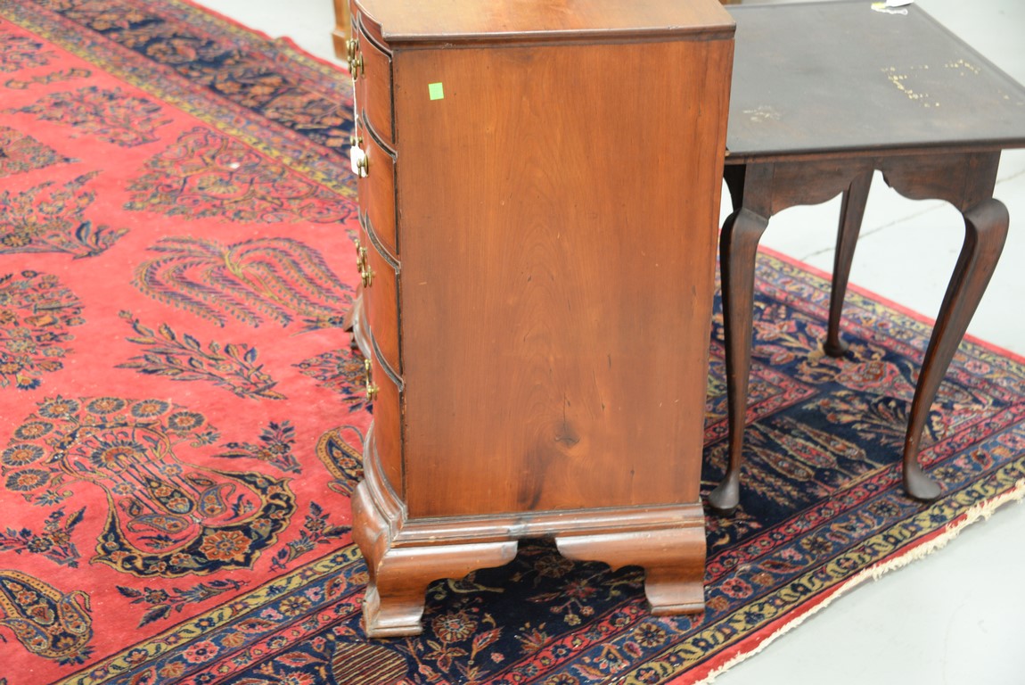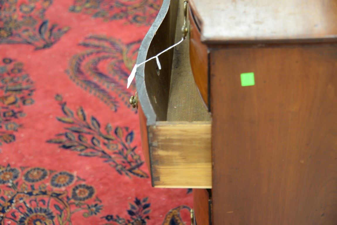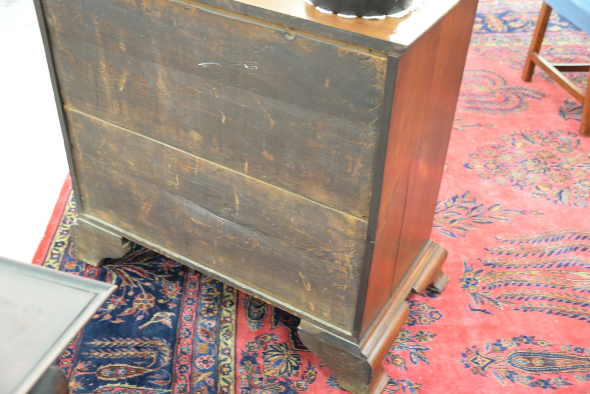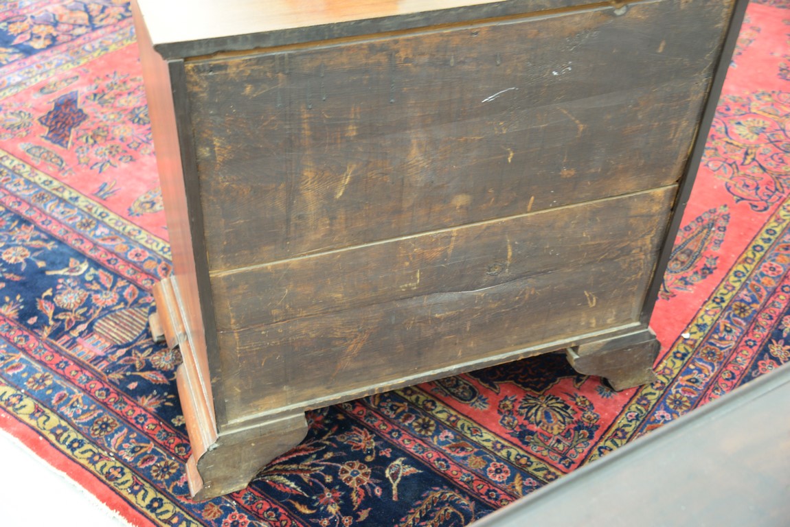 Lot 171: Chippendale cherry reverse serpentine chest having reverse serpentine top over four conforming drawers with block ends set on blocked ogee feet and quadrant blocking having original hardware, attributed to Eliphalet Chapin both back feet pieced.