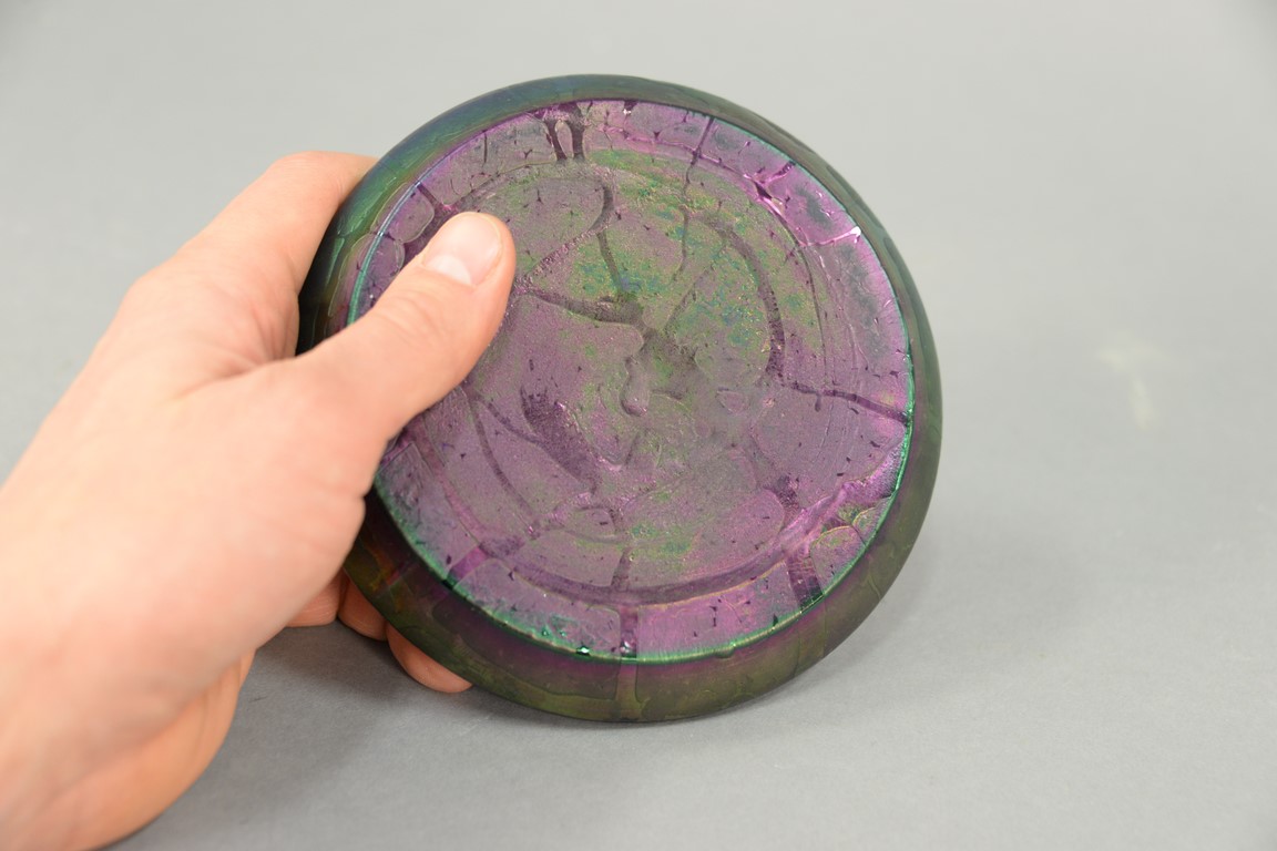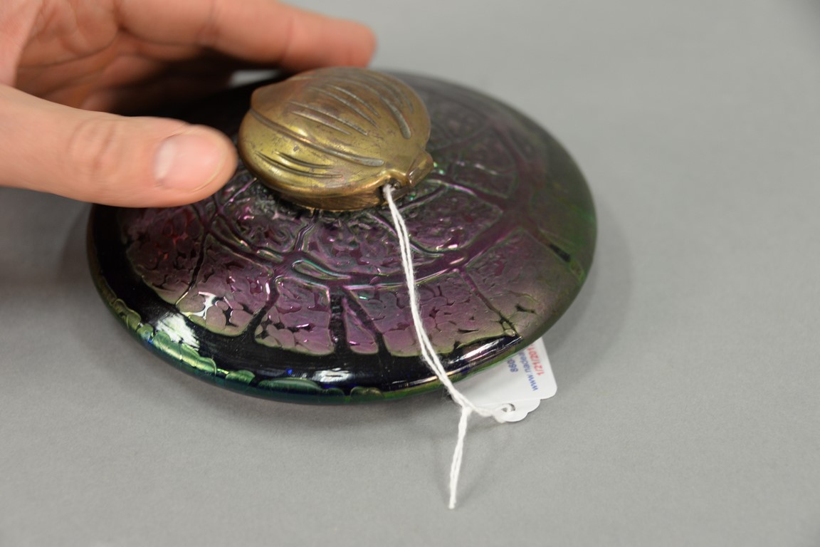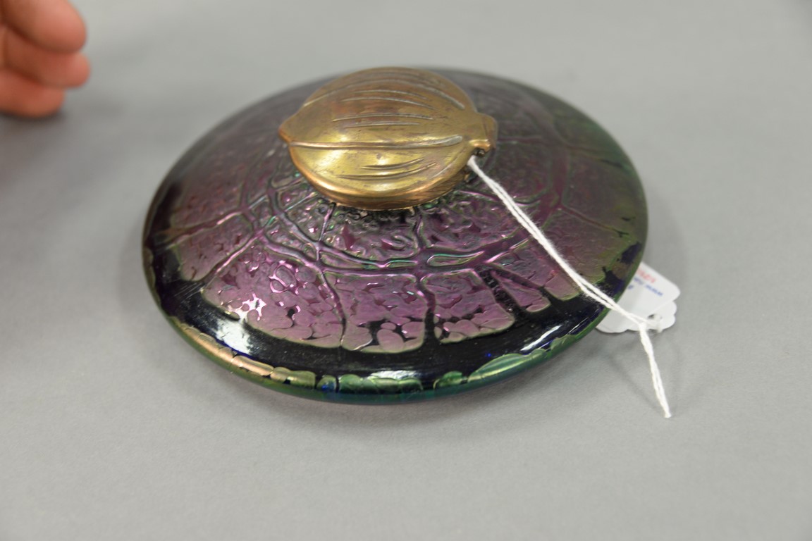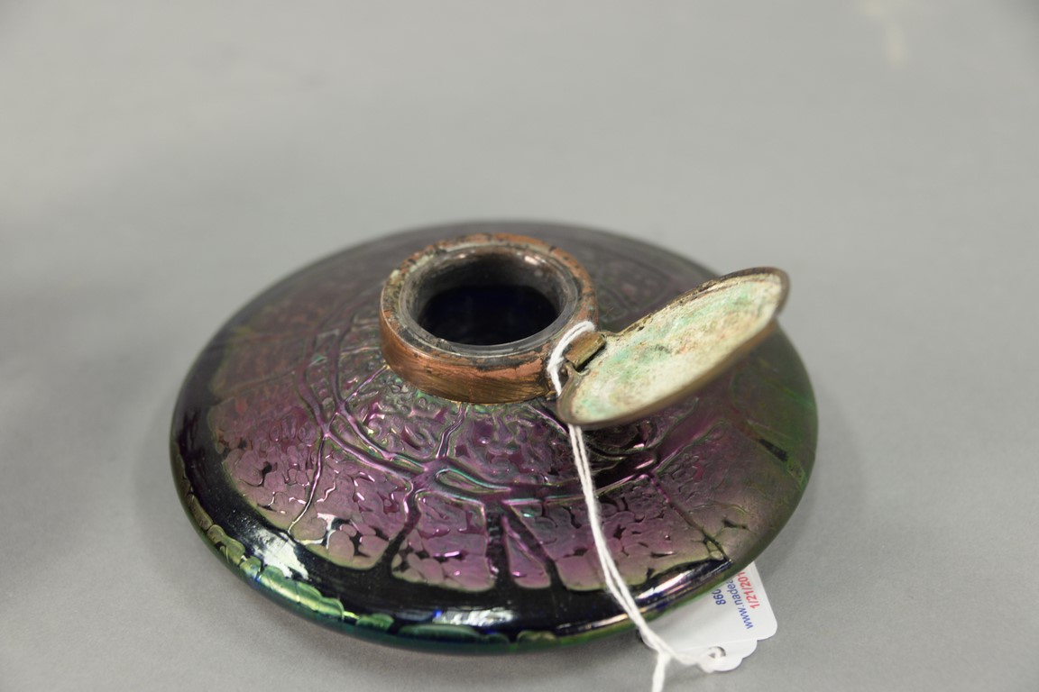 Loetz art glass inkwell Art Nouveau iridescent dcor. dia. 5 1/2in.