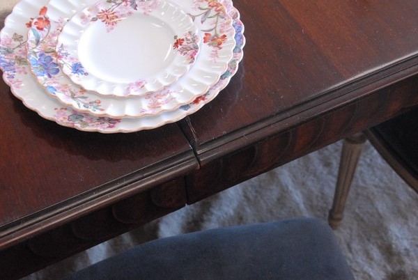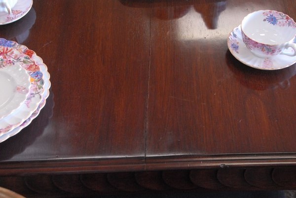 Mahogany Continental style dining table with two leaves. ht. 30in. top: 41 1/2 x 95 plus two 36 leaves opens to 167in.