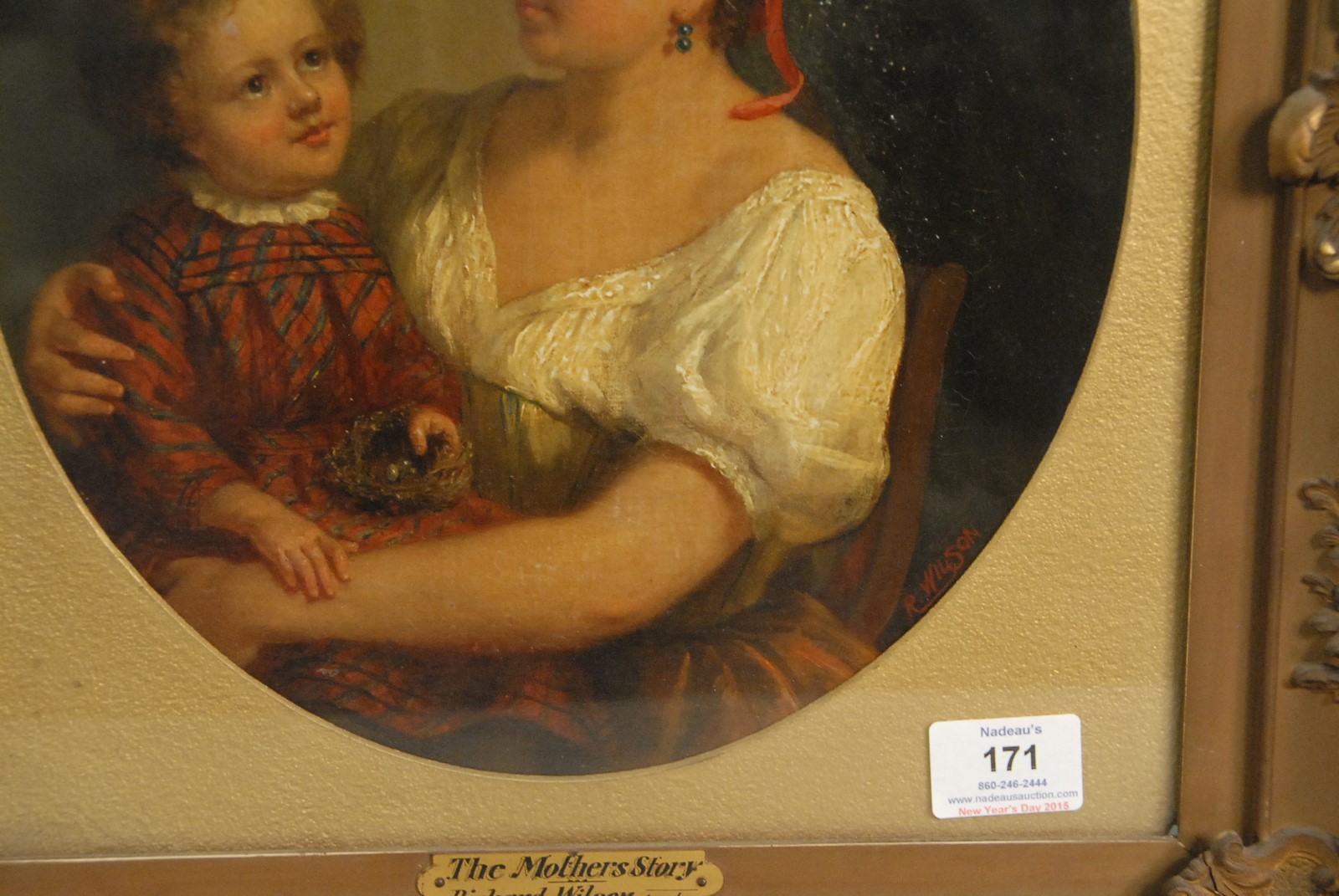 Lot 171: Richard Wilson portrait painting THE MOTHER’S STORY oil on canvas laid on board signed lower right R. Wilson 14 x 12