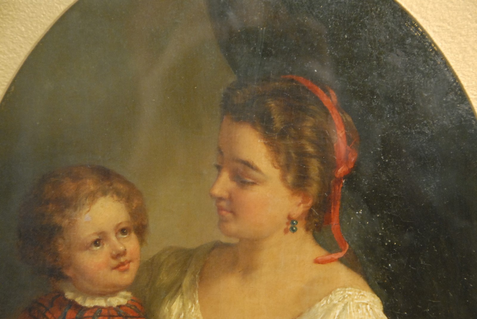 Richard Wilson portrait painting THE MOTHER’S STORY oil on canvas laid on board signed lower right R. Wilson 14 x 12