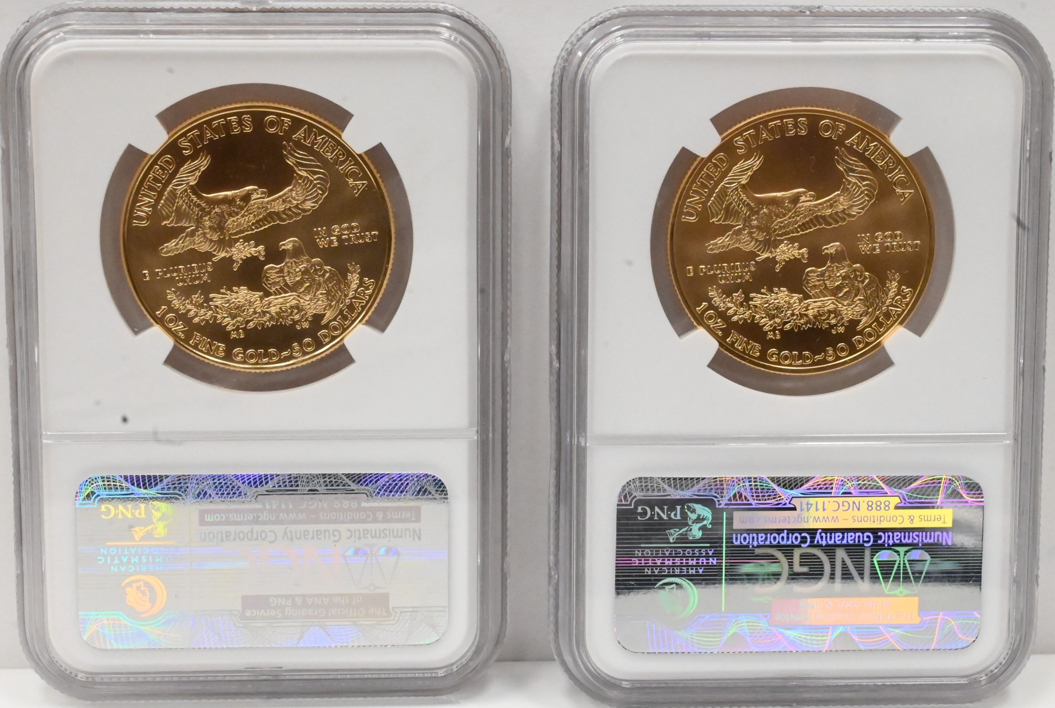 Two 2013 NGC MS 69 First Strike Gold One Ounce American Eagles, two ounces total.