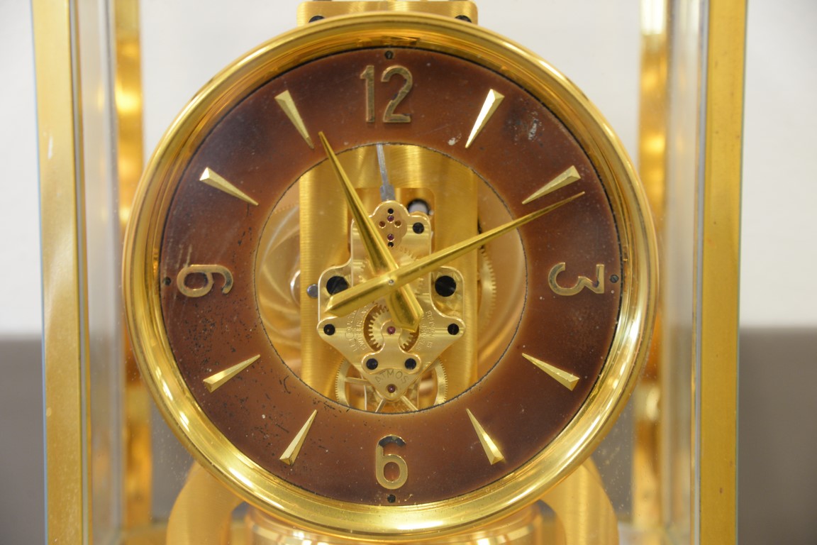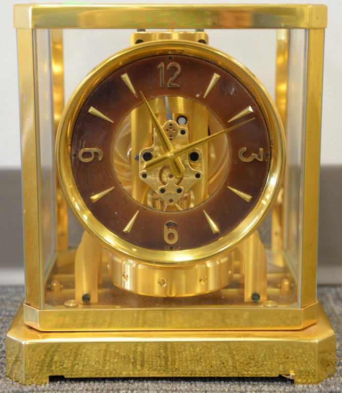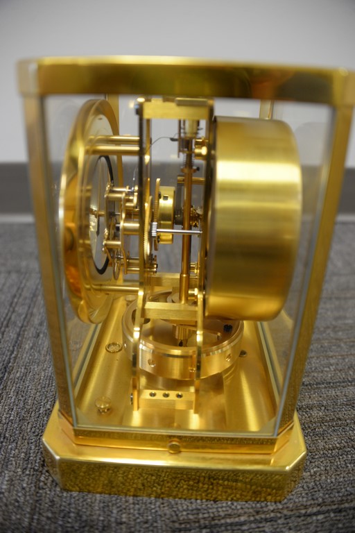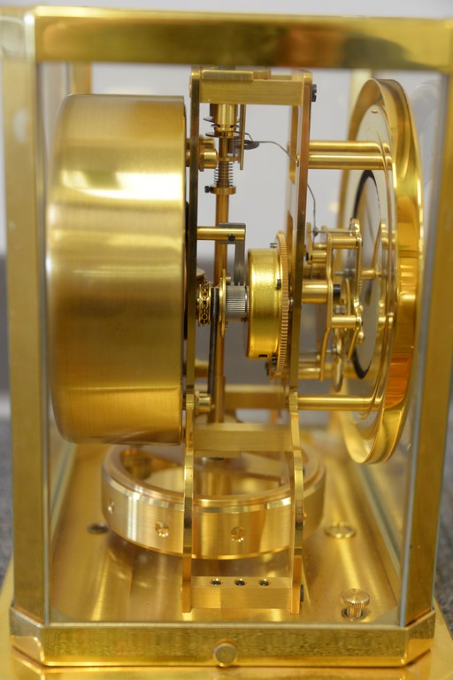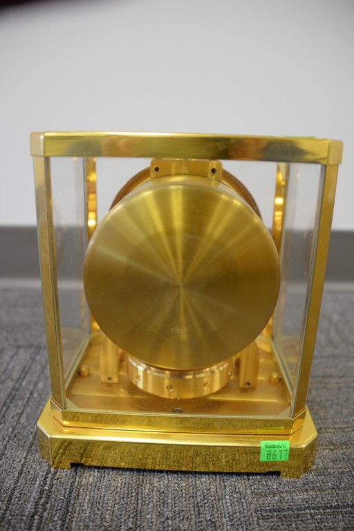 LeCoultre Atmos clock, brass and glass case. ht. 9 1/4in., wd. 7 1/2in.