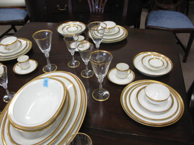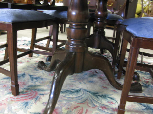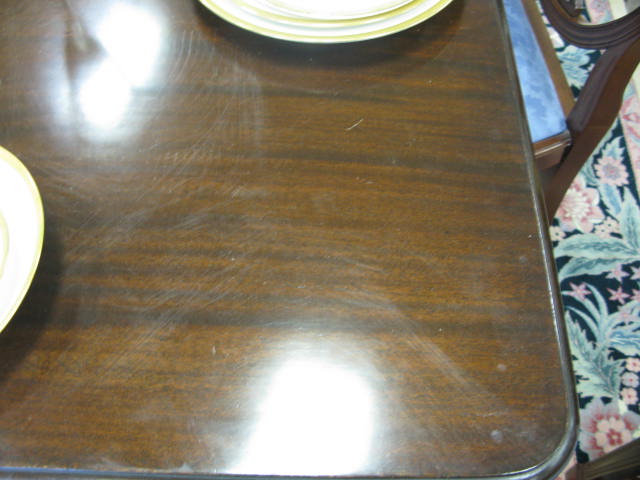 British Antique Replicas, two part mahogany dining table, including support boards and brass clips