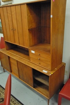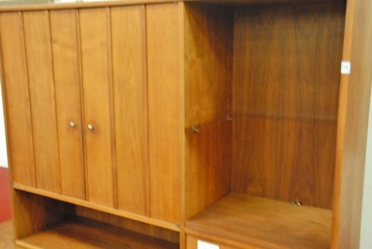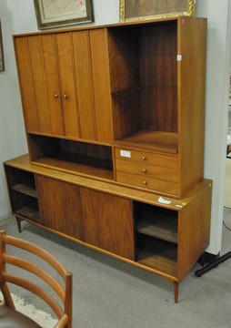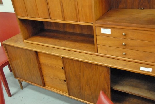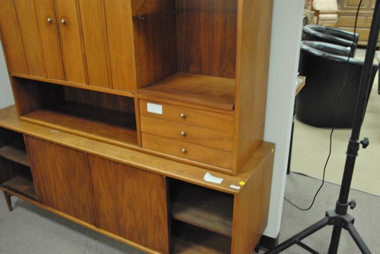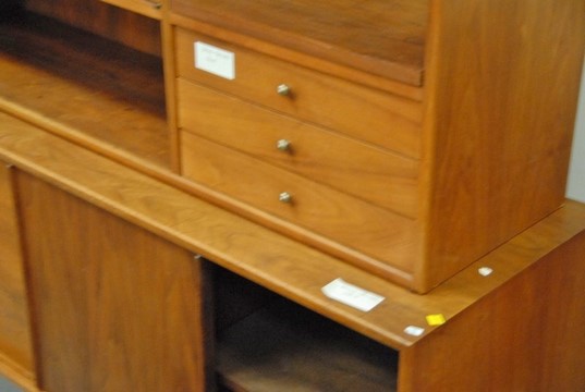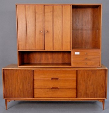 Brown Saltman credenza with cabinet top, base: ht. 27 1/2in. lg. 66in. dp. 19in.