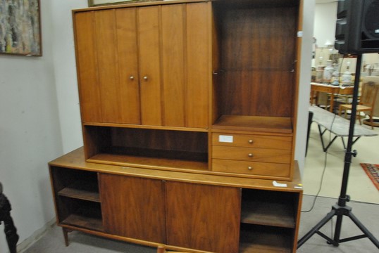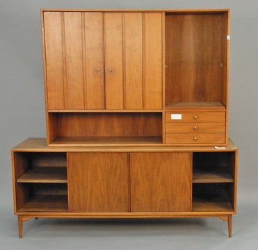 Lot 172: Brown Saltman credenza with cabinet top, base: ht. 27 1/2in. lg. 66in. dp. 19in.