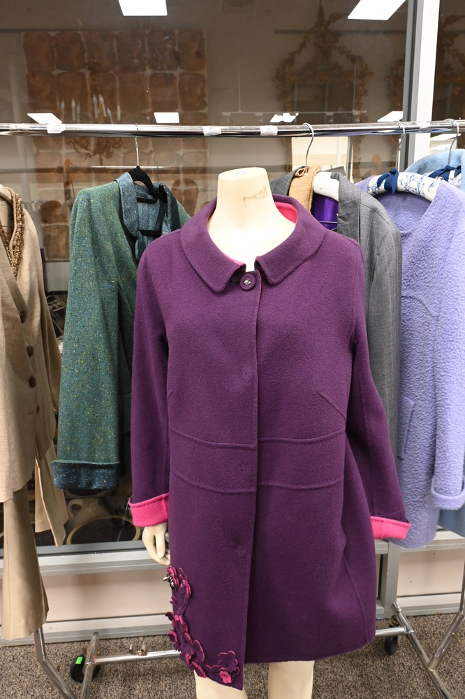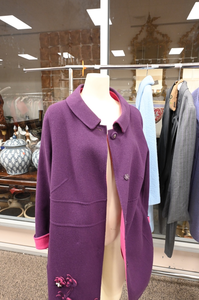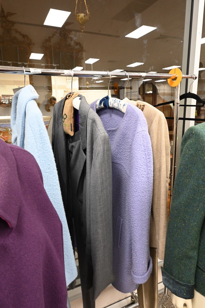 Lot 172: Eight Piece Lot by Italian Designer Juanita Sabbadini, to include a baby blue coat; lavender jacket; purple wool blend jacket; grey …