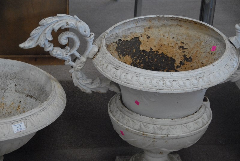 Lot 172: Group of four iron outdoor planters, two are 18, one 15 and one 11.