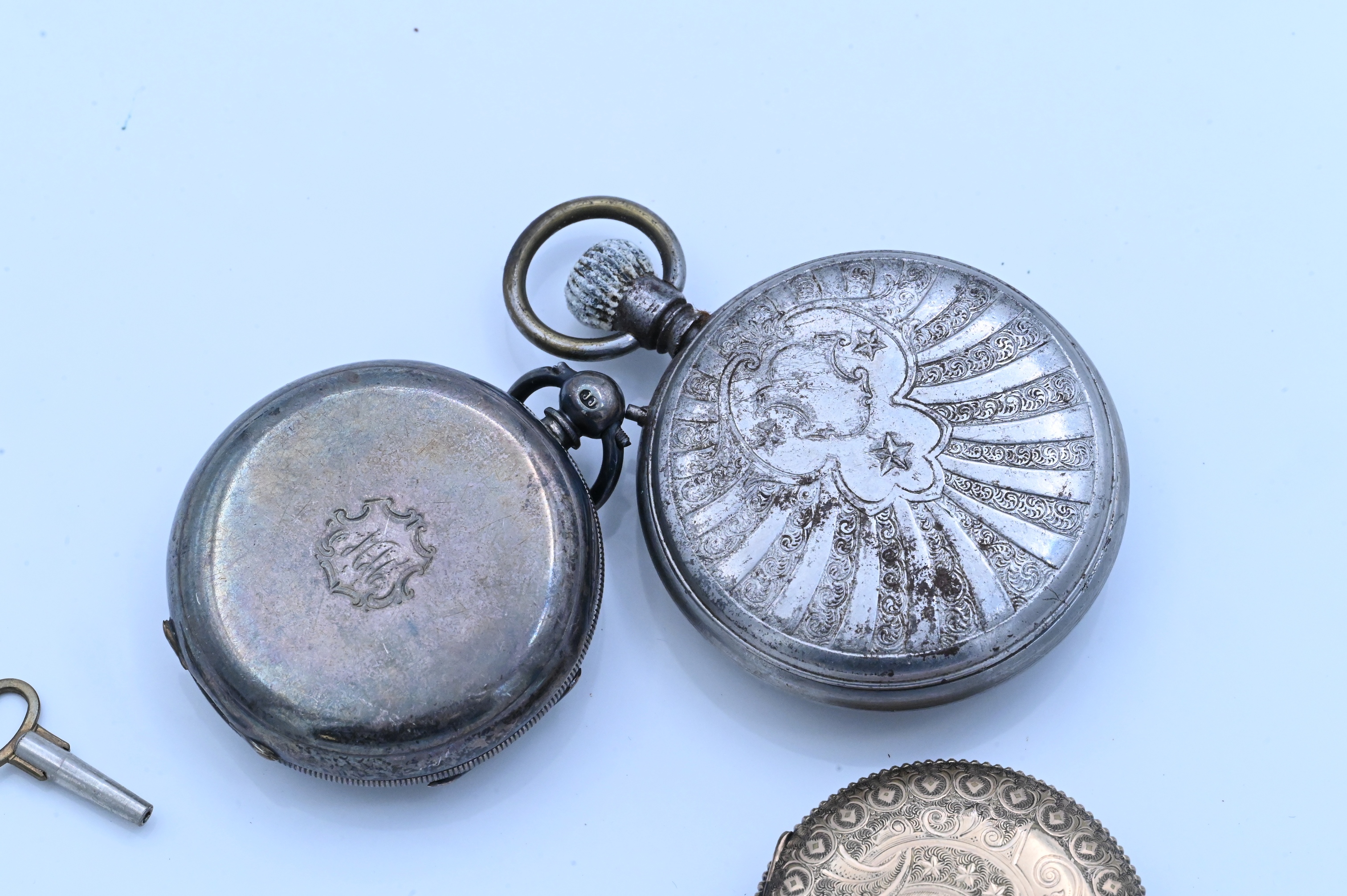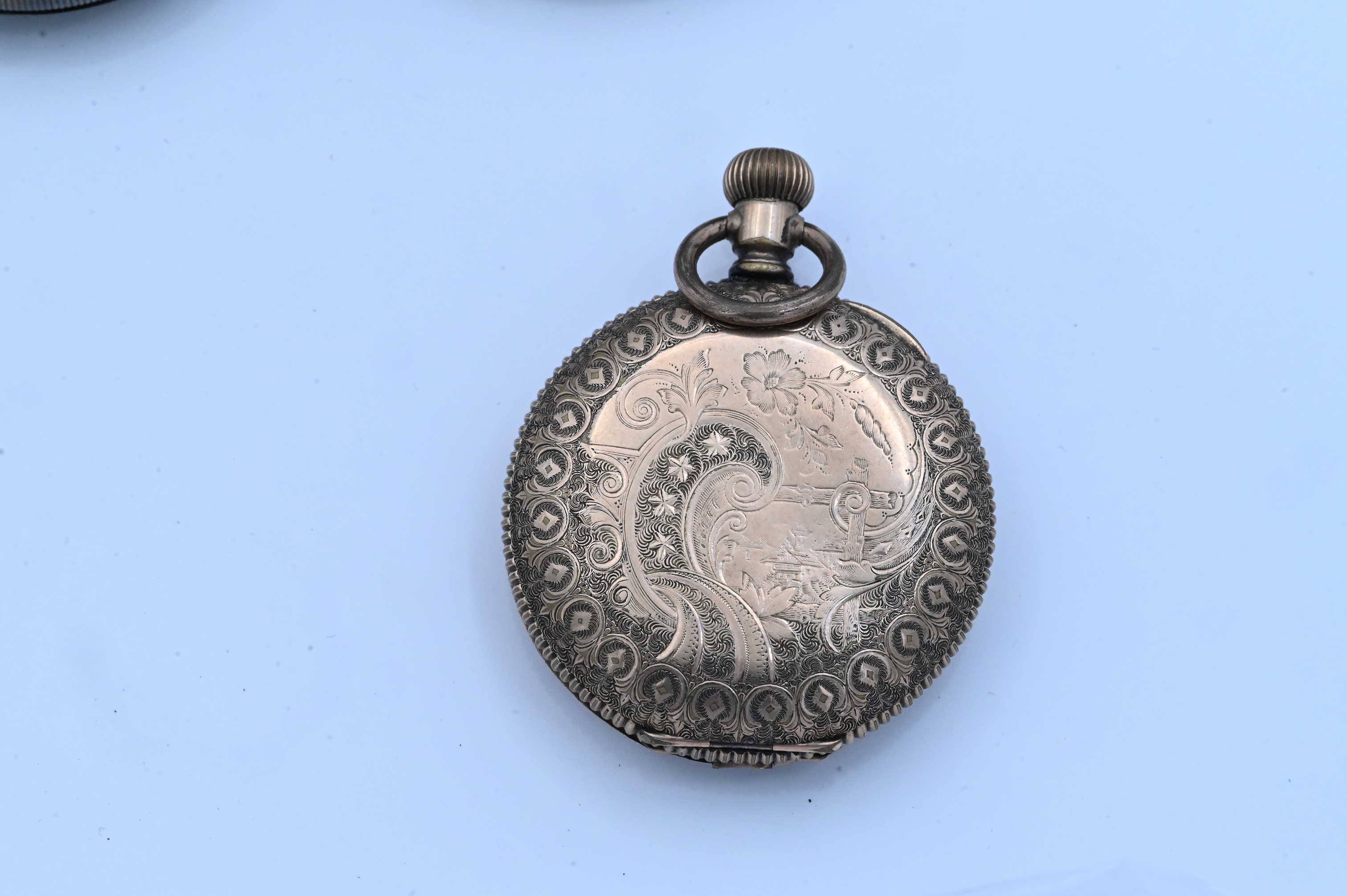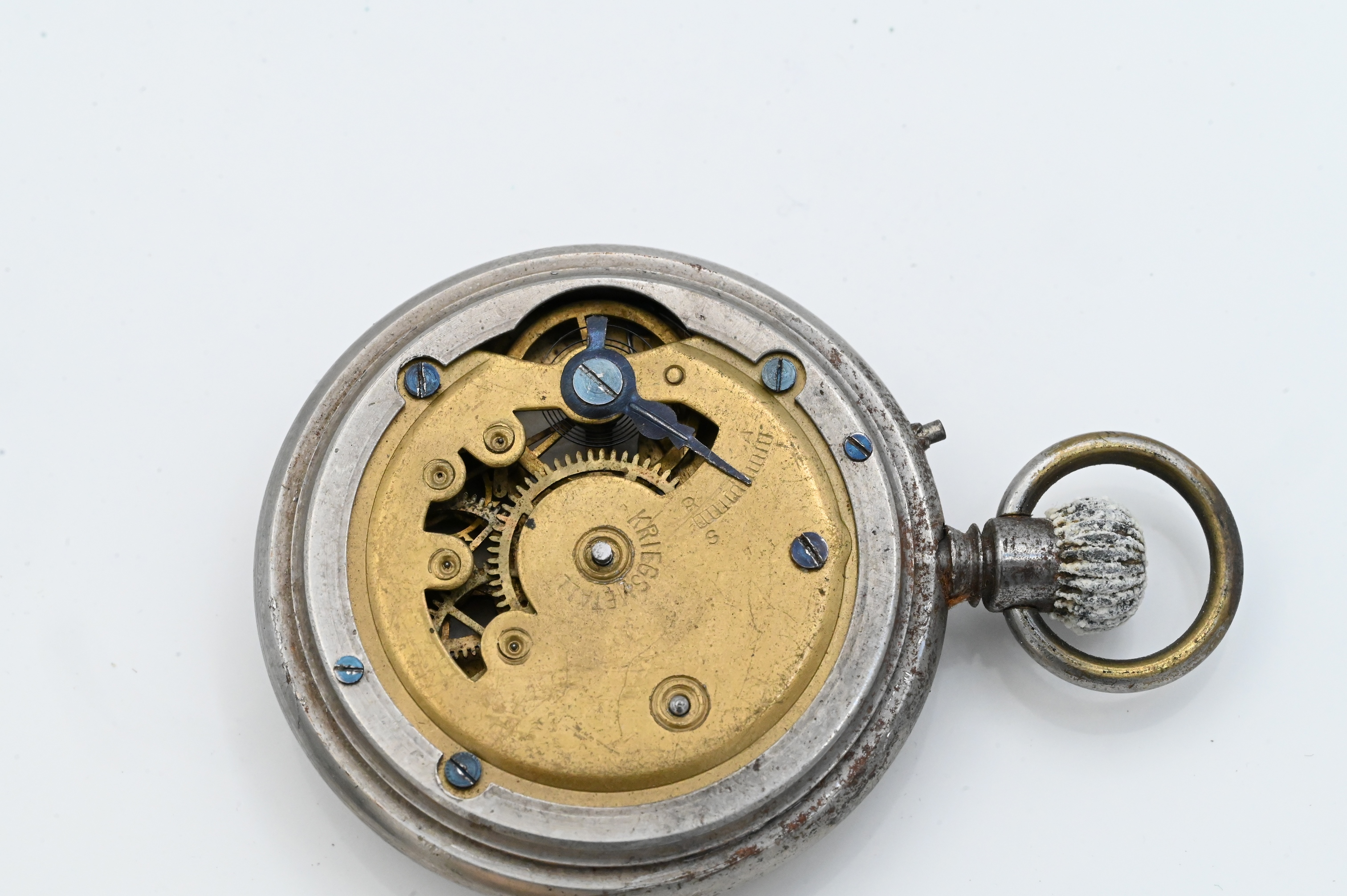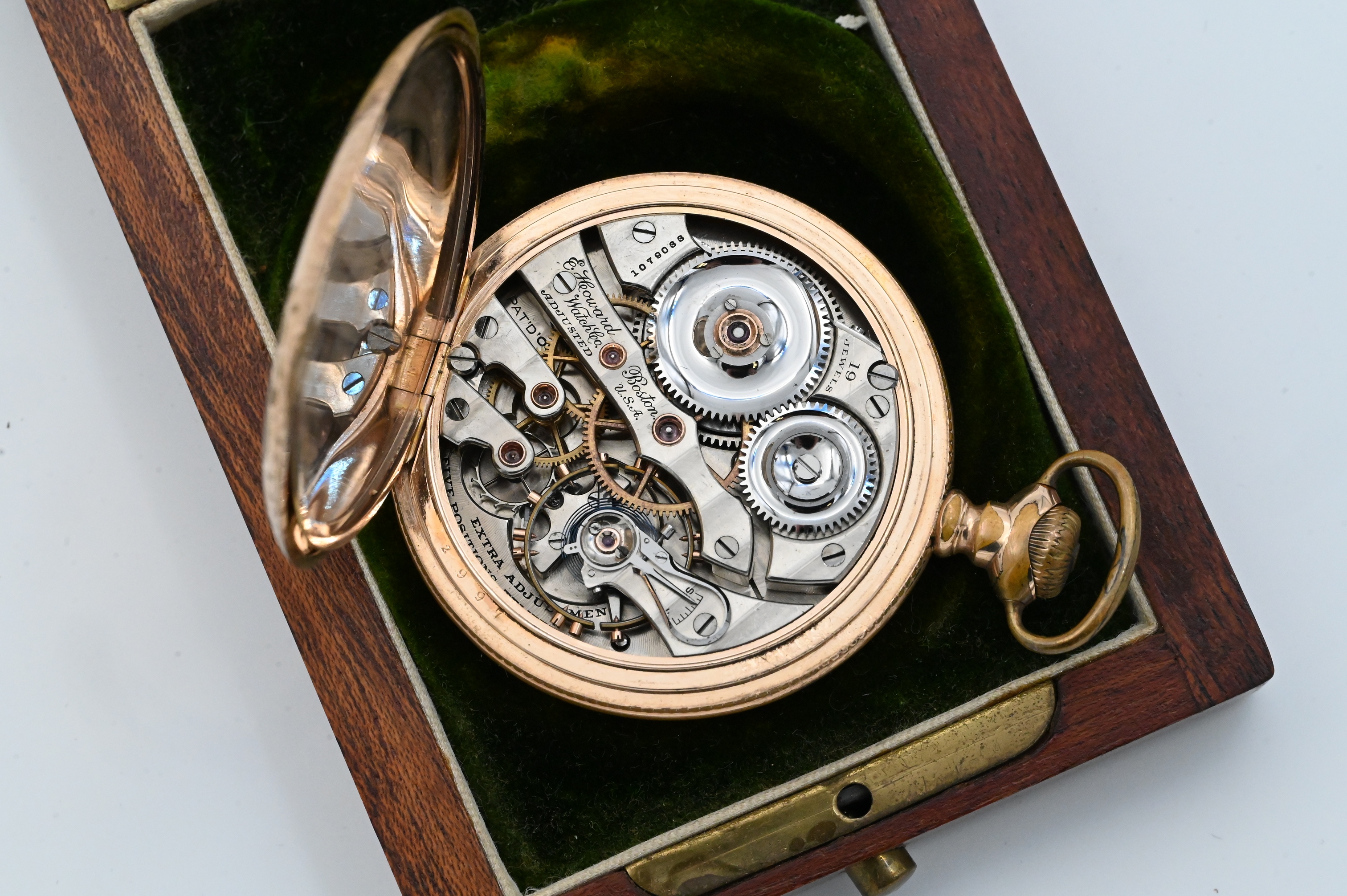 Including an E. Howard Watch Co. 19-jewel open-face pocket watch, serial number 1079033, in fitted wood box with original paper license dated 1910; one W. Pitt English silver pocket watch, hallmarked and labeled “Watch & Clockmaker, Epworth”; one Atlas Watch Co., Chicago open-face pocket watch, movement no. 1789469, case marked B&B Regal 14K 10 Years; and one Kriegs Modelle nickel pocket watch with engraved back and brass movement. Diameter of largest 55 mm.