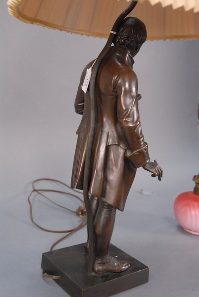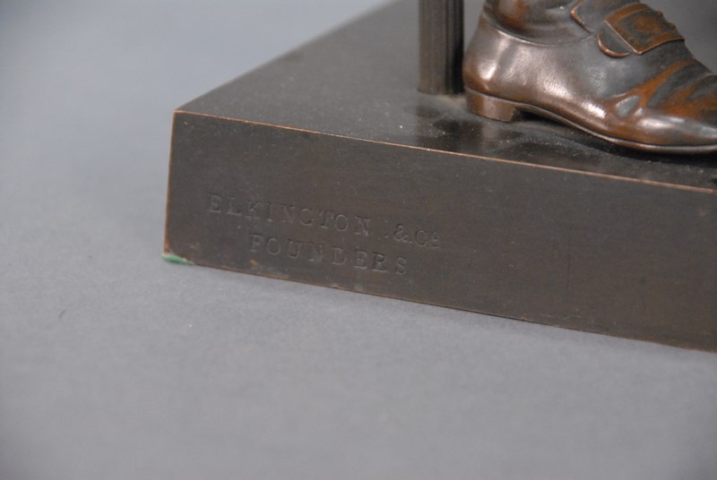Lot 172: John Foley 1818-1874 Bronze Sculpture OLIVER GOLDSMITH reading a book on square bronze base signed on base J. H. Foley R.A. London marked on opposite side: Elkington & Co. Founders now made into table lamp.