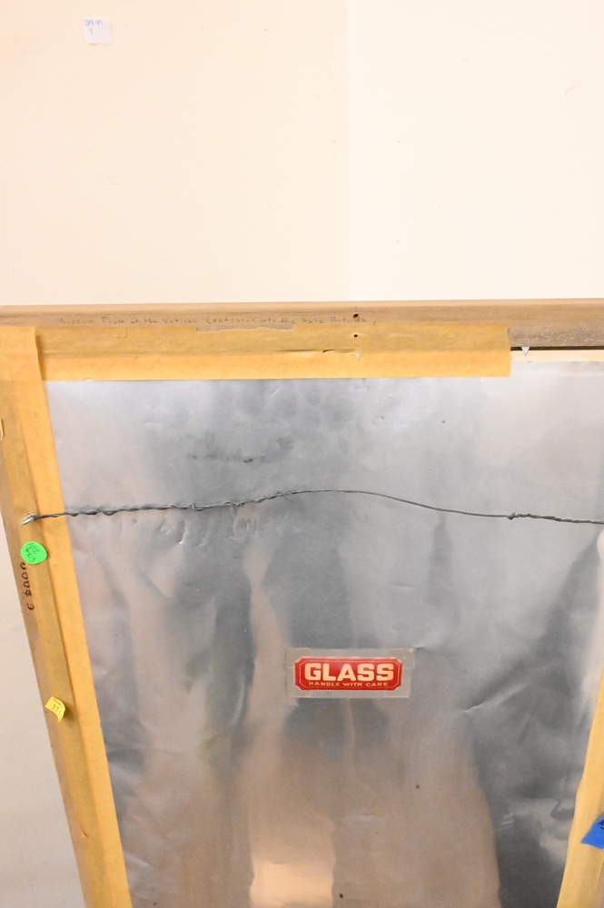 Pair of Italian School Pen and Ink, 18th century, staircase to entrance of Museo Pio Clementino, Vatican; along with a view through a monumental doorway into sculpture gallery, pen and grey ink with grey wash; each 19 1/8″ x 13 1/8″. Provenance: Ex coll: David T. Hersey, Boston. Purchased at Marika’s Antiques, Boston, December 2, 1975, no receipt available.Estate of Wallace Bradway, New Haven, CT.