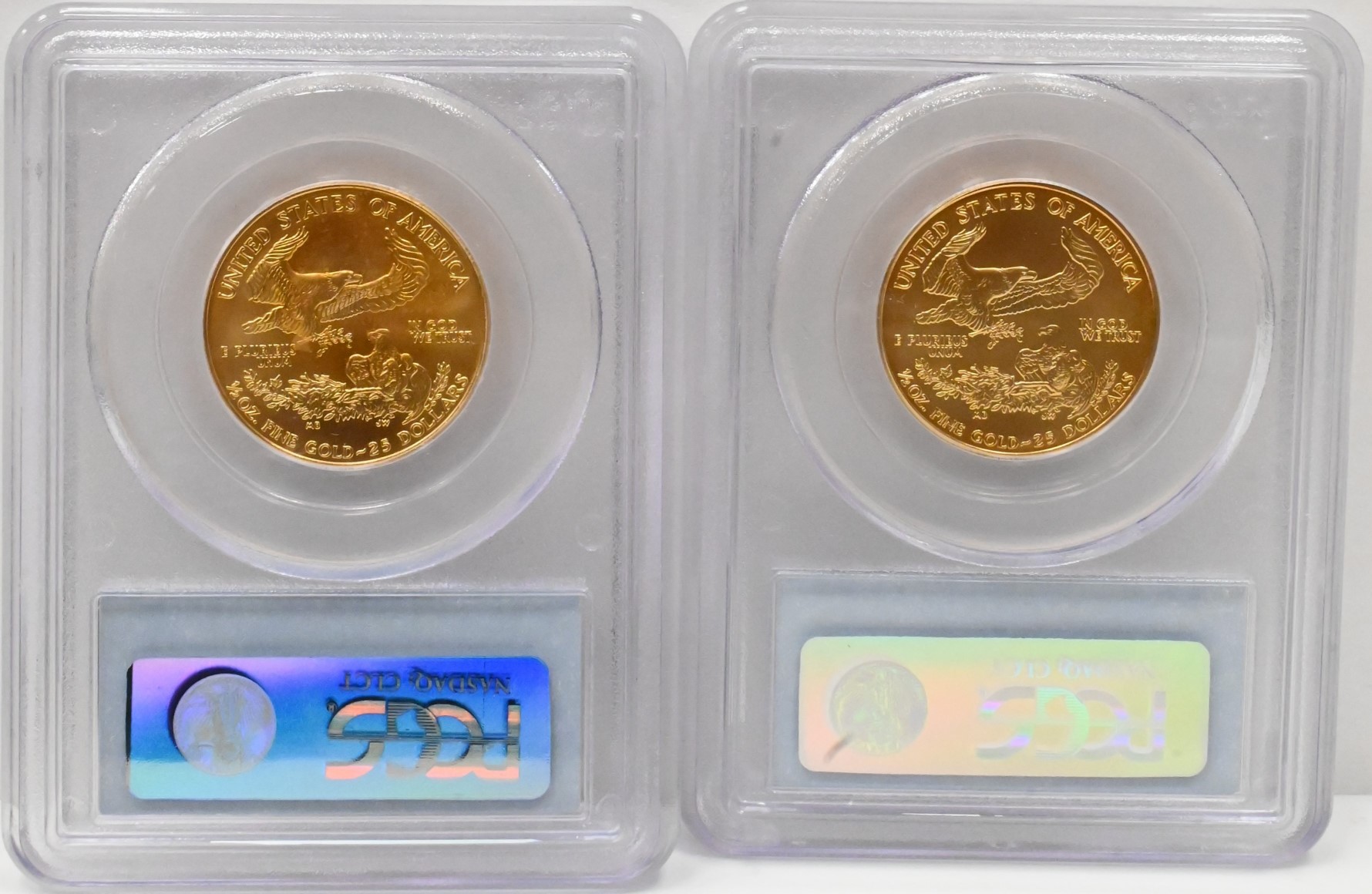 Two 2006 W $25 PCGS MS 69 American Gold Half Ounce Eagles, one ounce total.