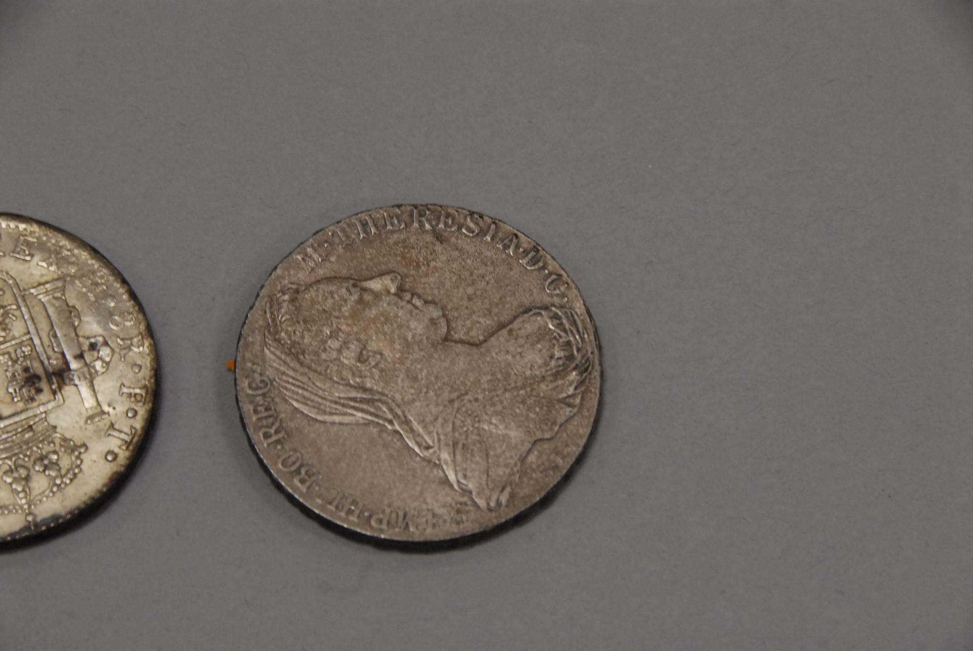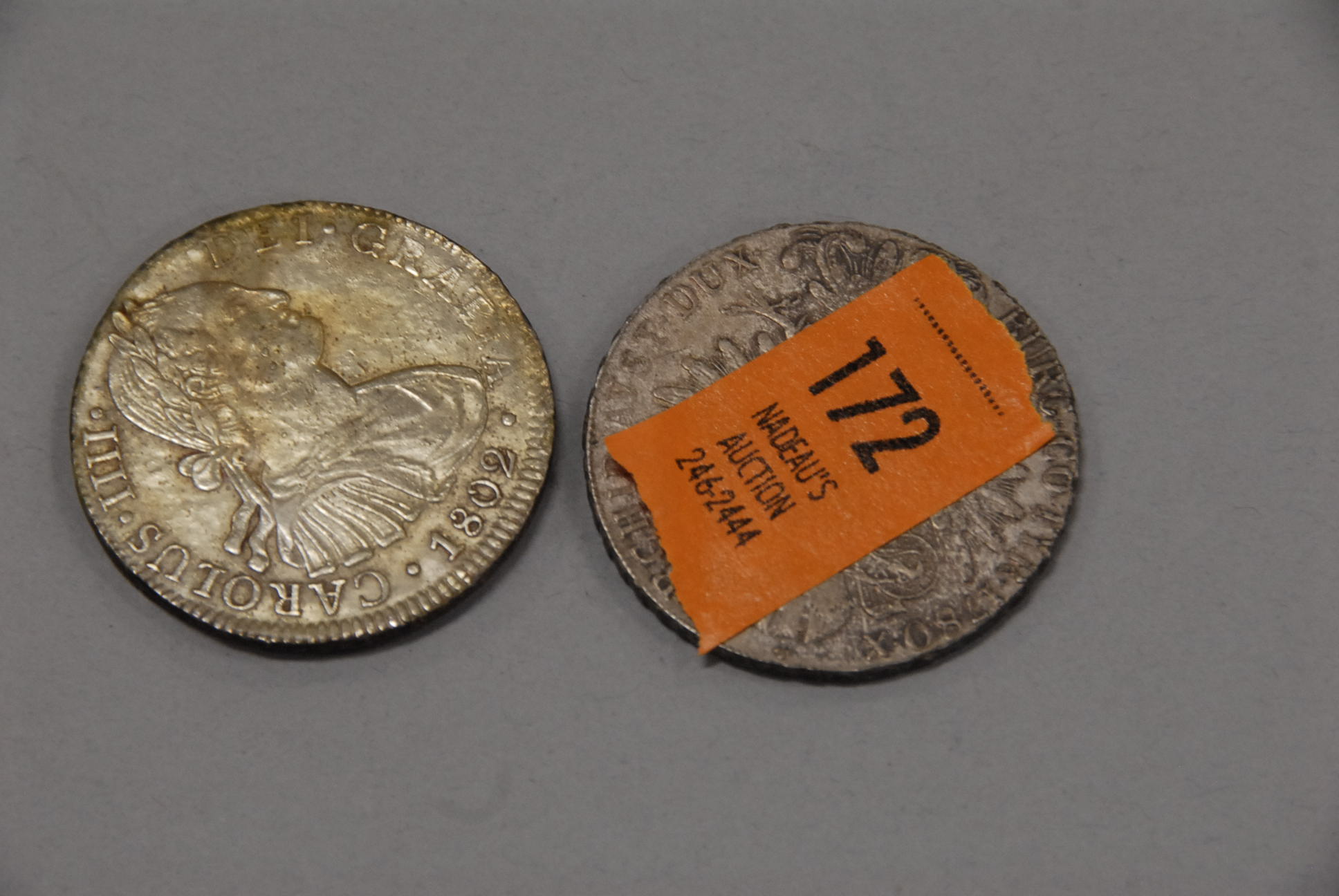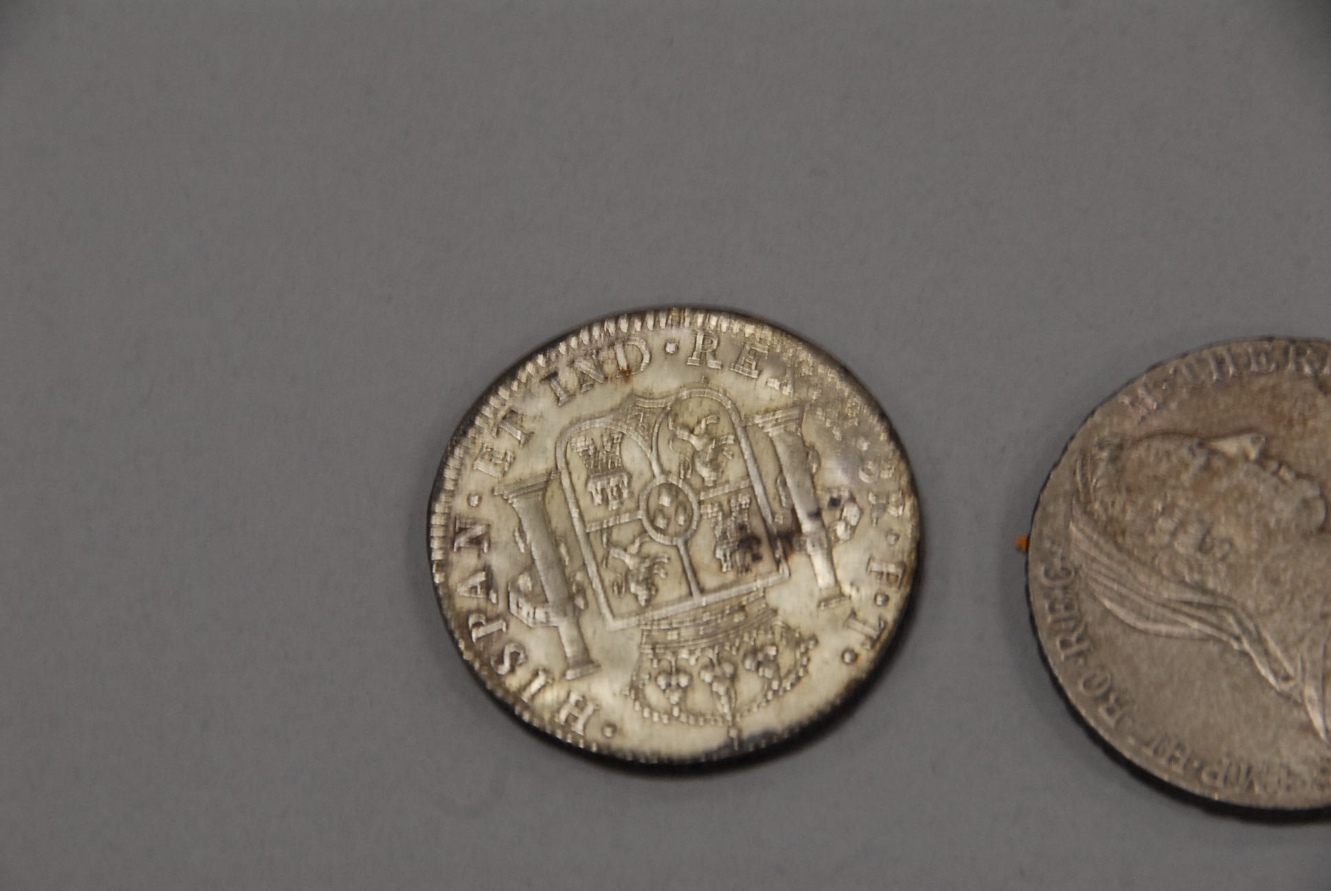 Two large foreign coins, one is 18th century, one is a US Connecticut half dollar