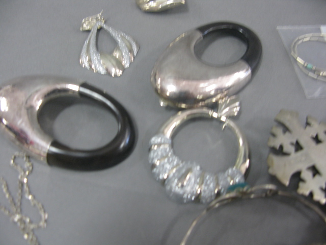 Bag lot of sterling silver jewelry earrings, chains and bracelets, etc