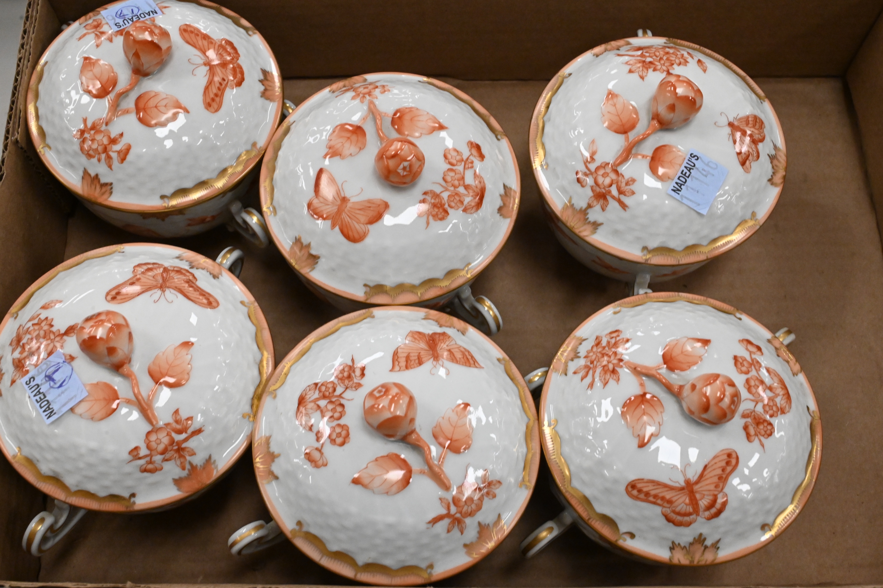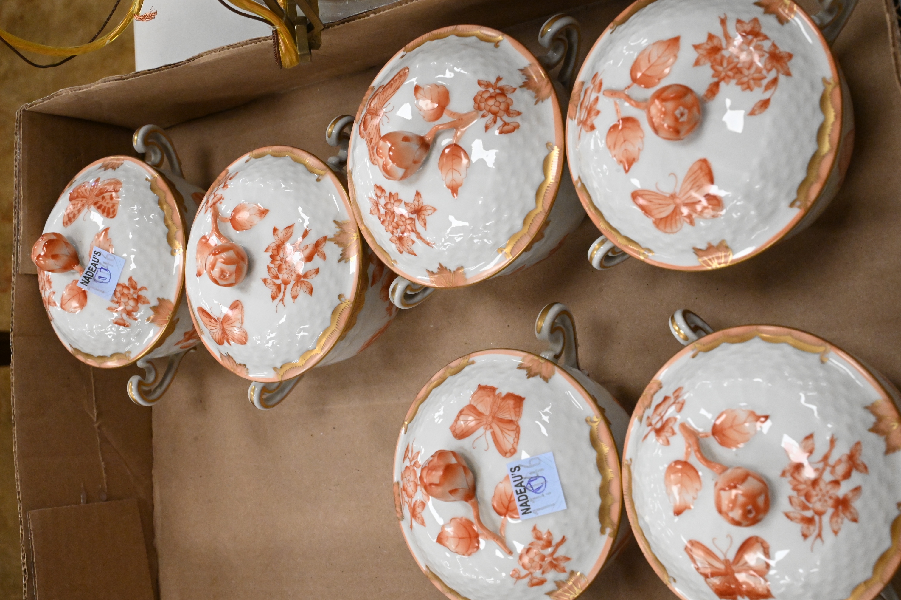 Lot 173: Approximately 94 Piece Assembled Herend Rust “Chinese Bouquet” Porcelain Tea Service