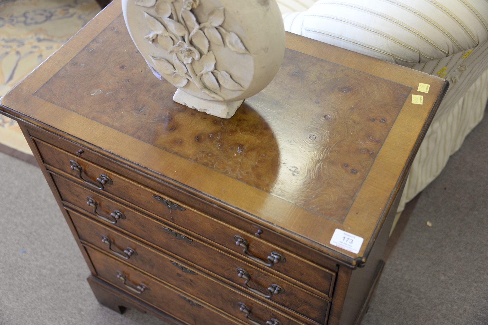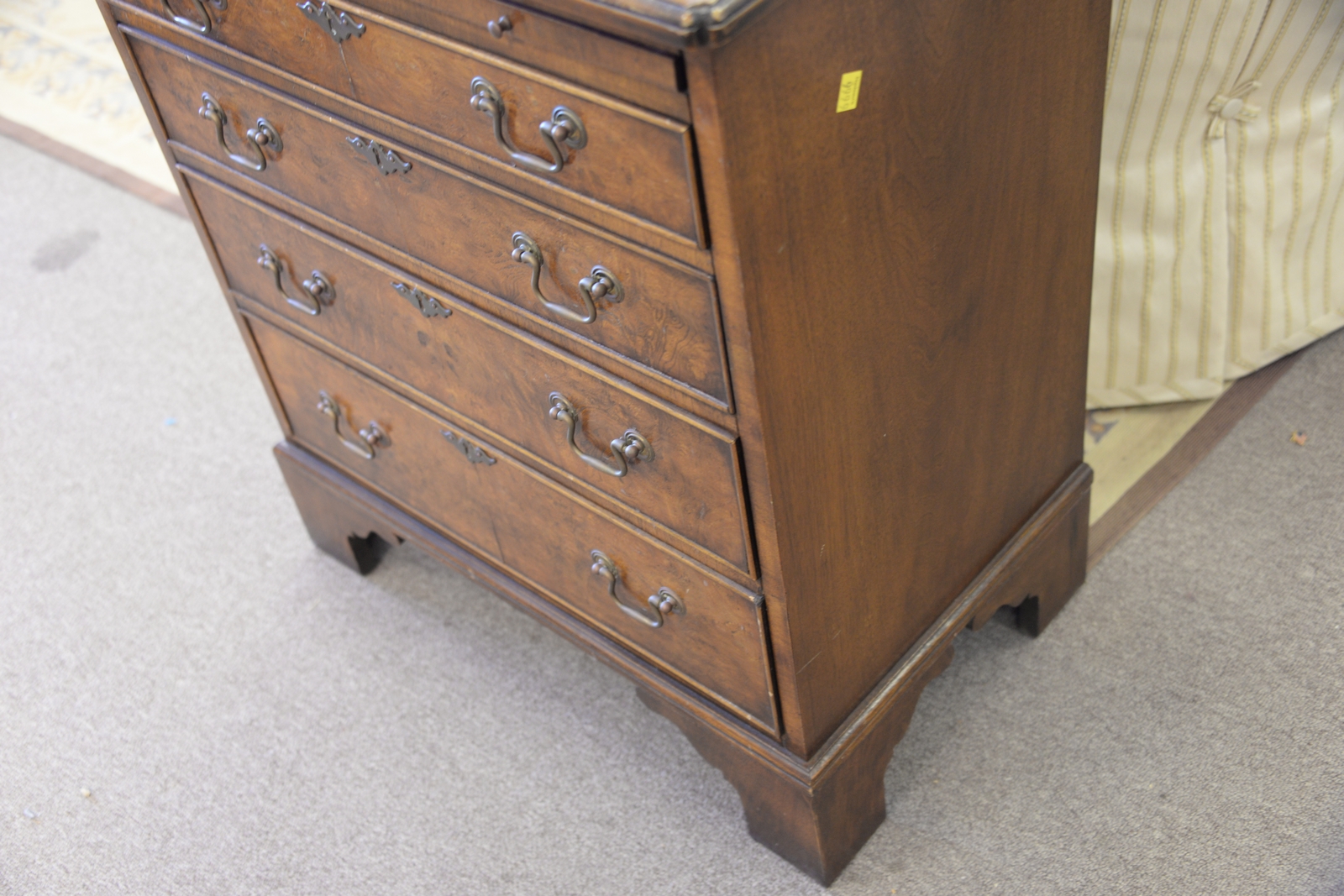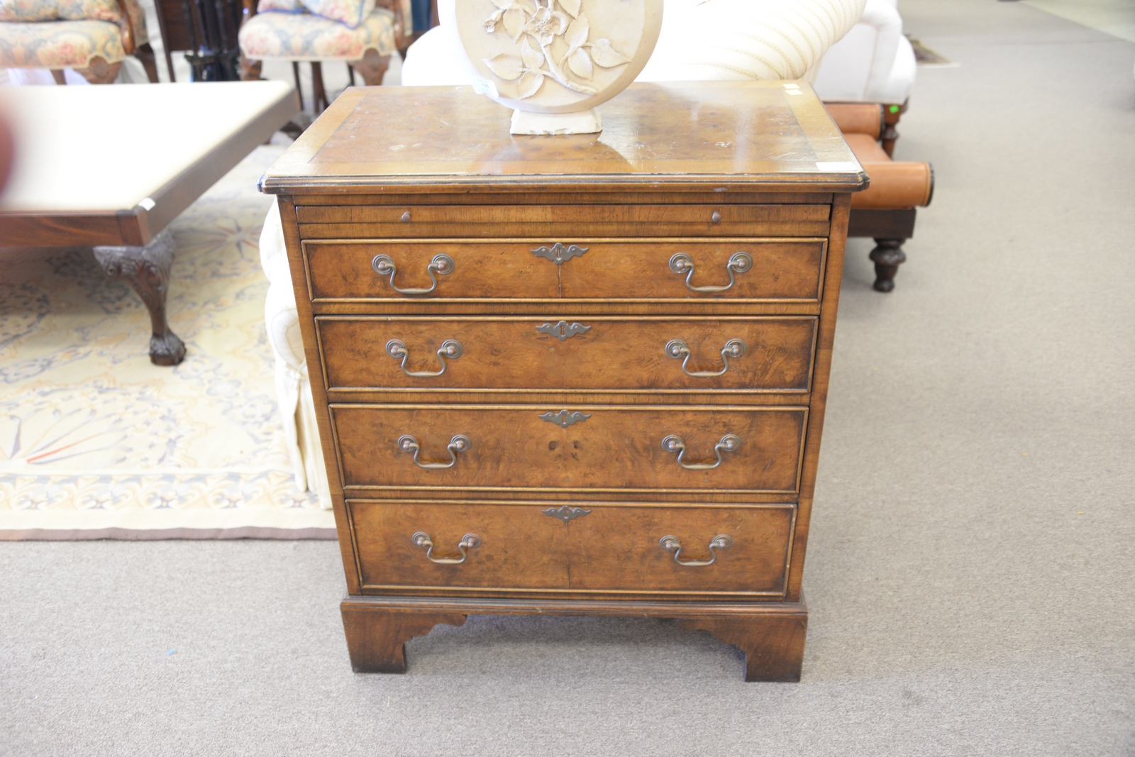 Burlwood bachelor’s chest with slide. ht. 29 1/2in., wd. 25 1/2in., dp. 15 1/2 in.