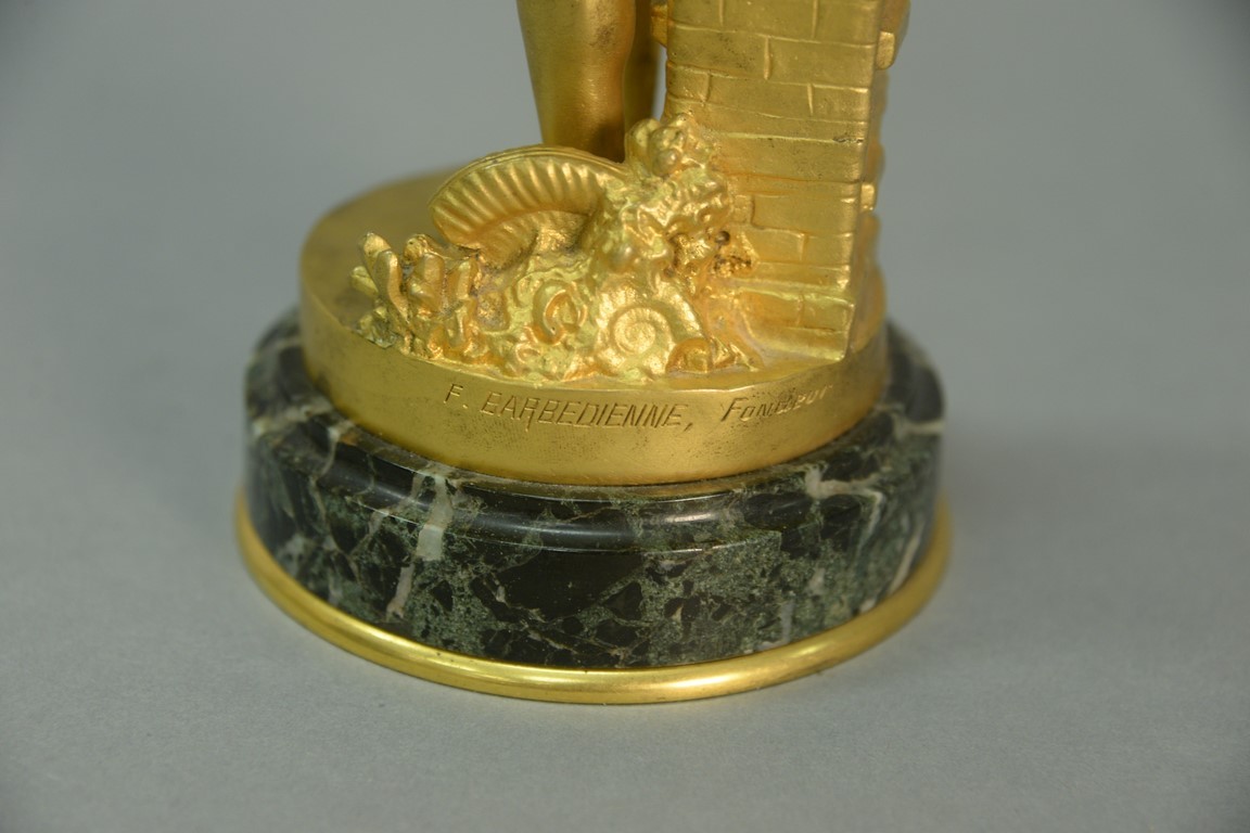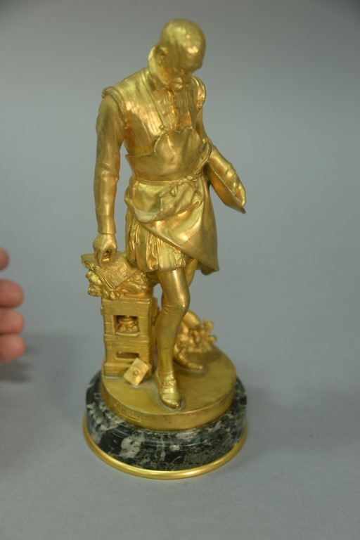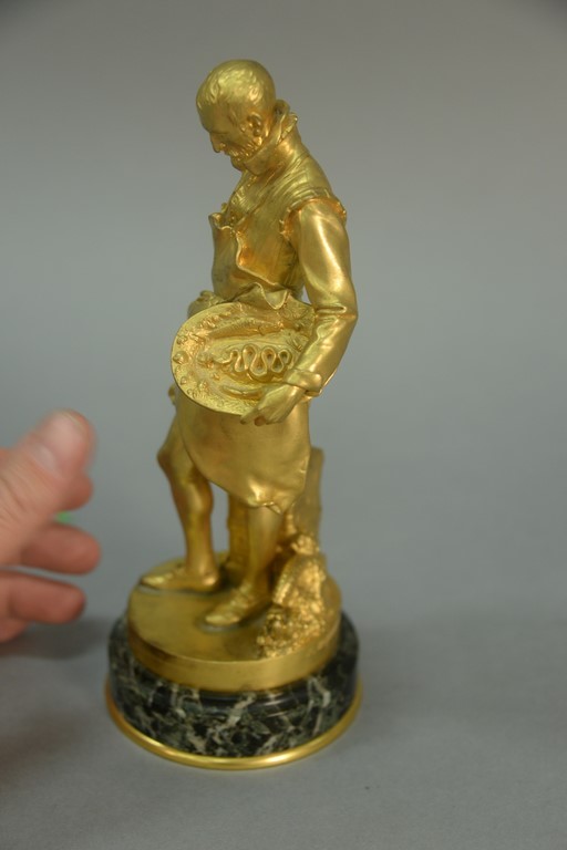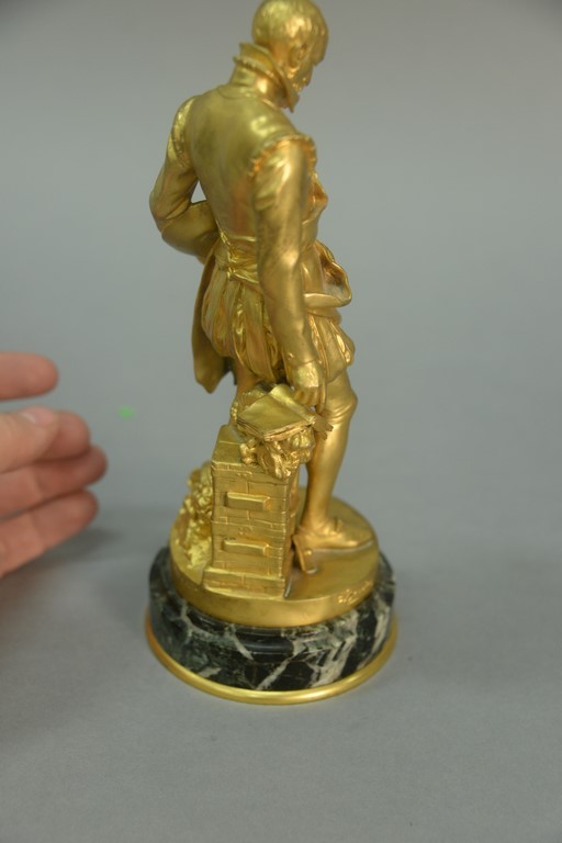 Lot 173: Ernest Barrias 1841-1905 gilt bronze Bernard Palissy Paris France Renaissance costume holding pallissyware dish marked: E. Bar…