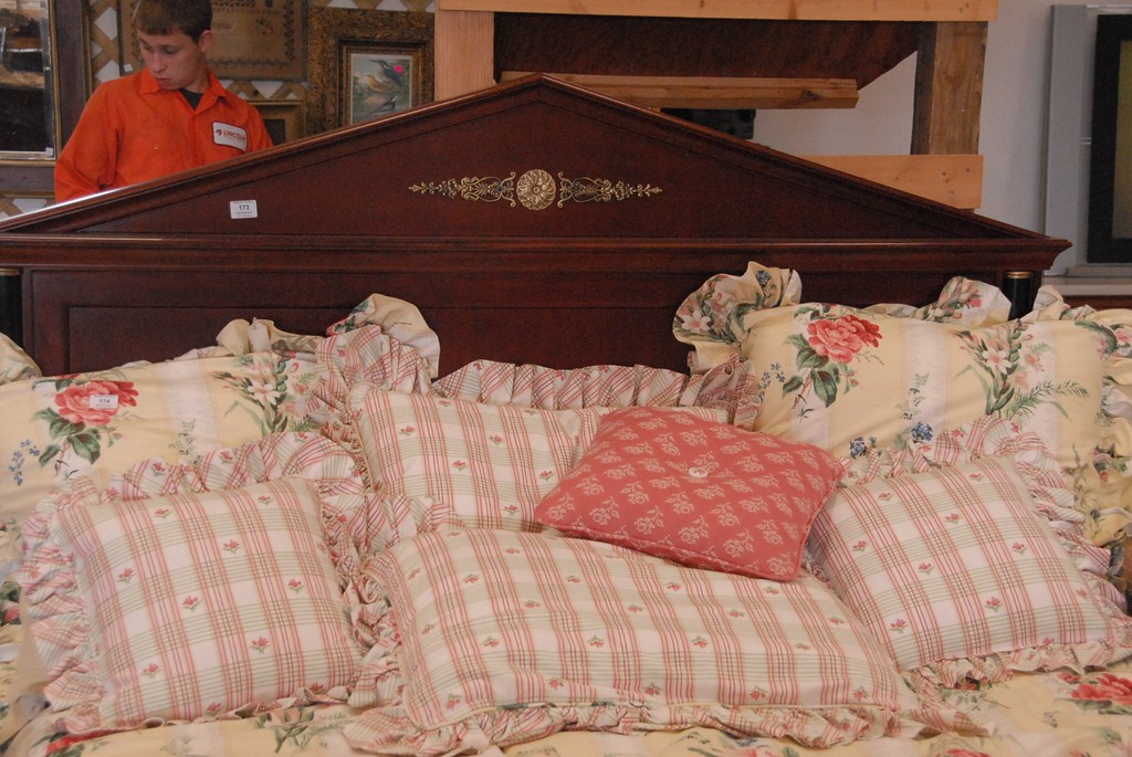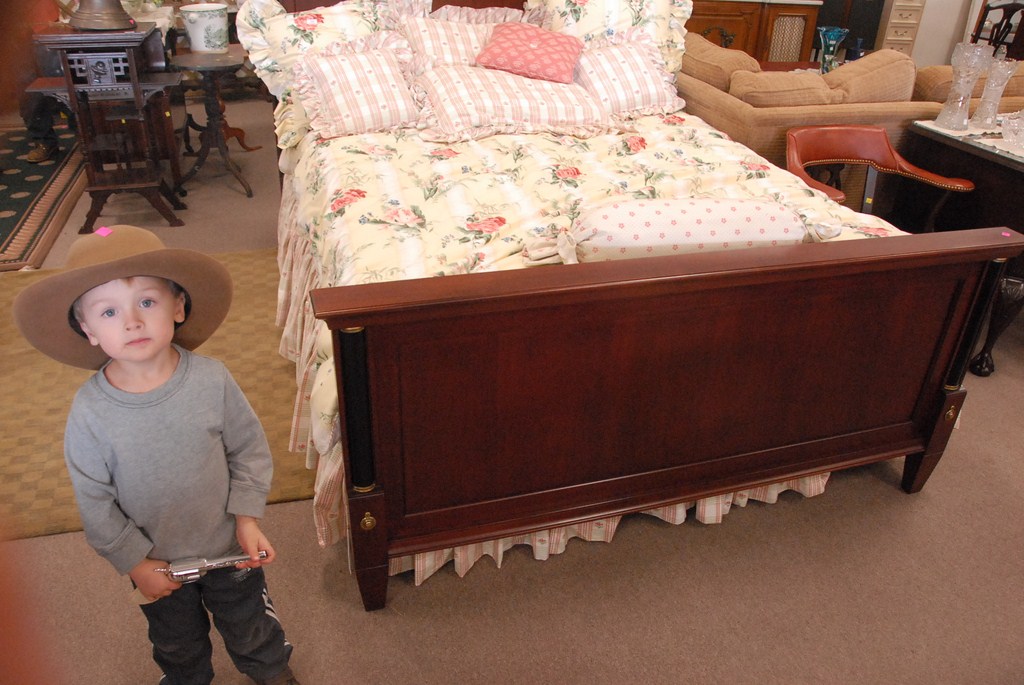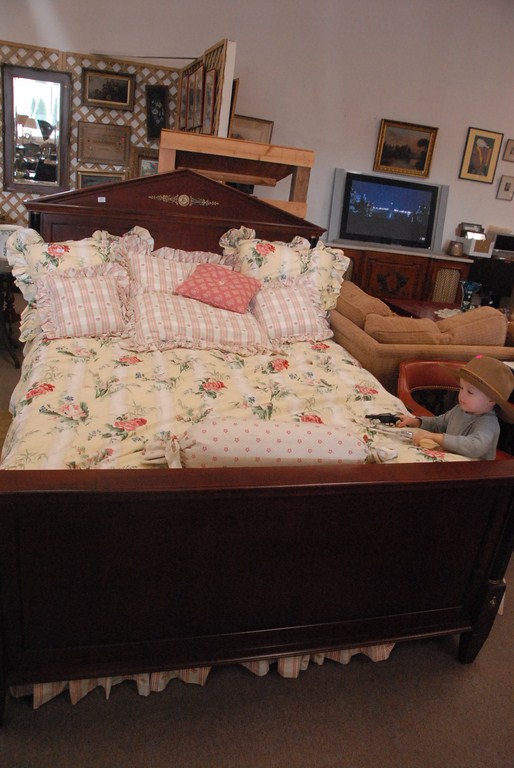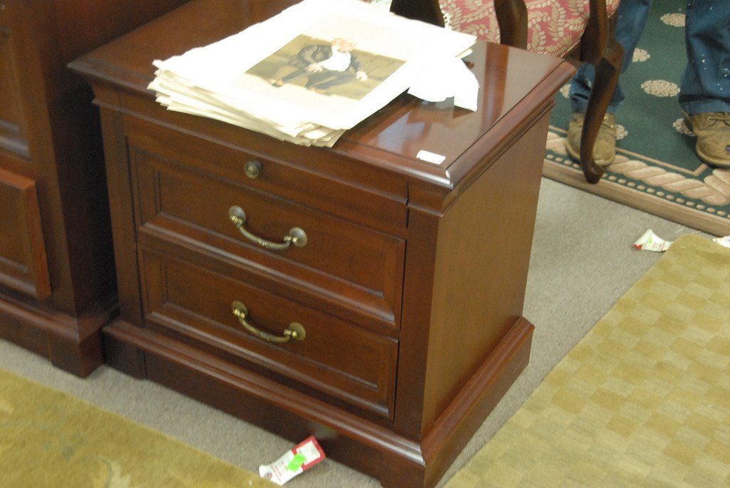 Ethan Allen dark cherry queen size bed two night tables.