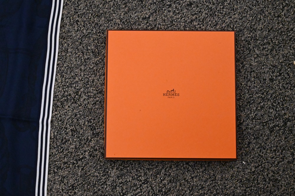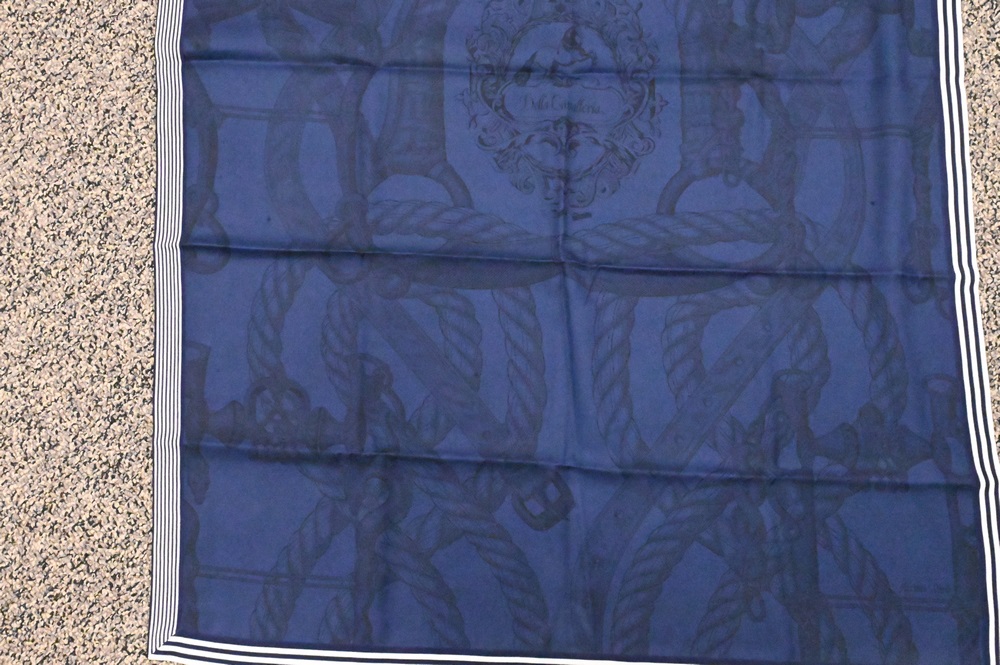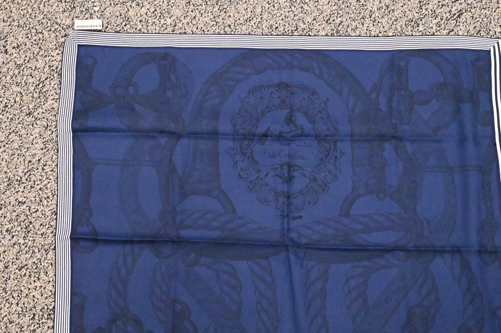 Lot 173: Hermes Paris “Della Cavalleria” Silk Scarf, new in original box including original inventory tag, 34″ x 34″.