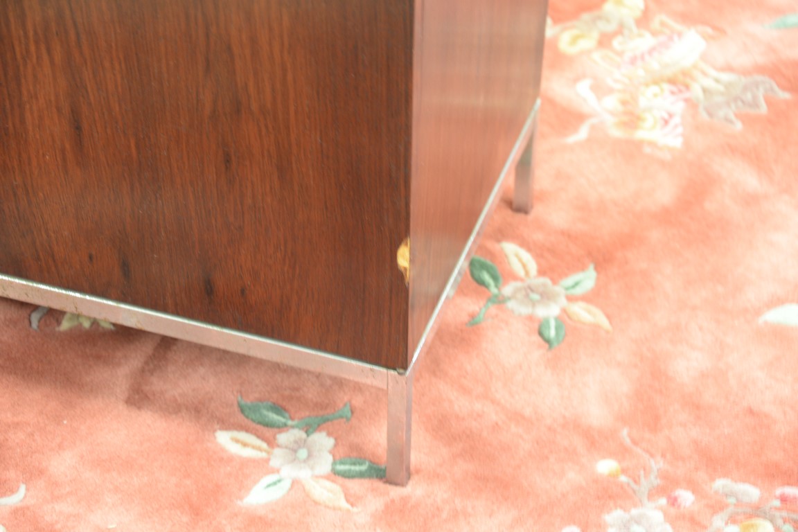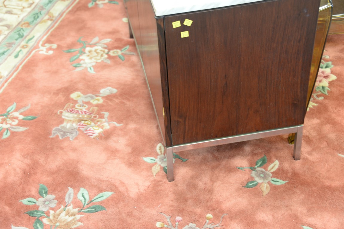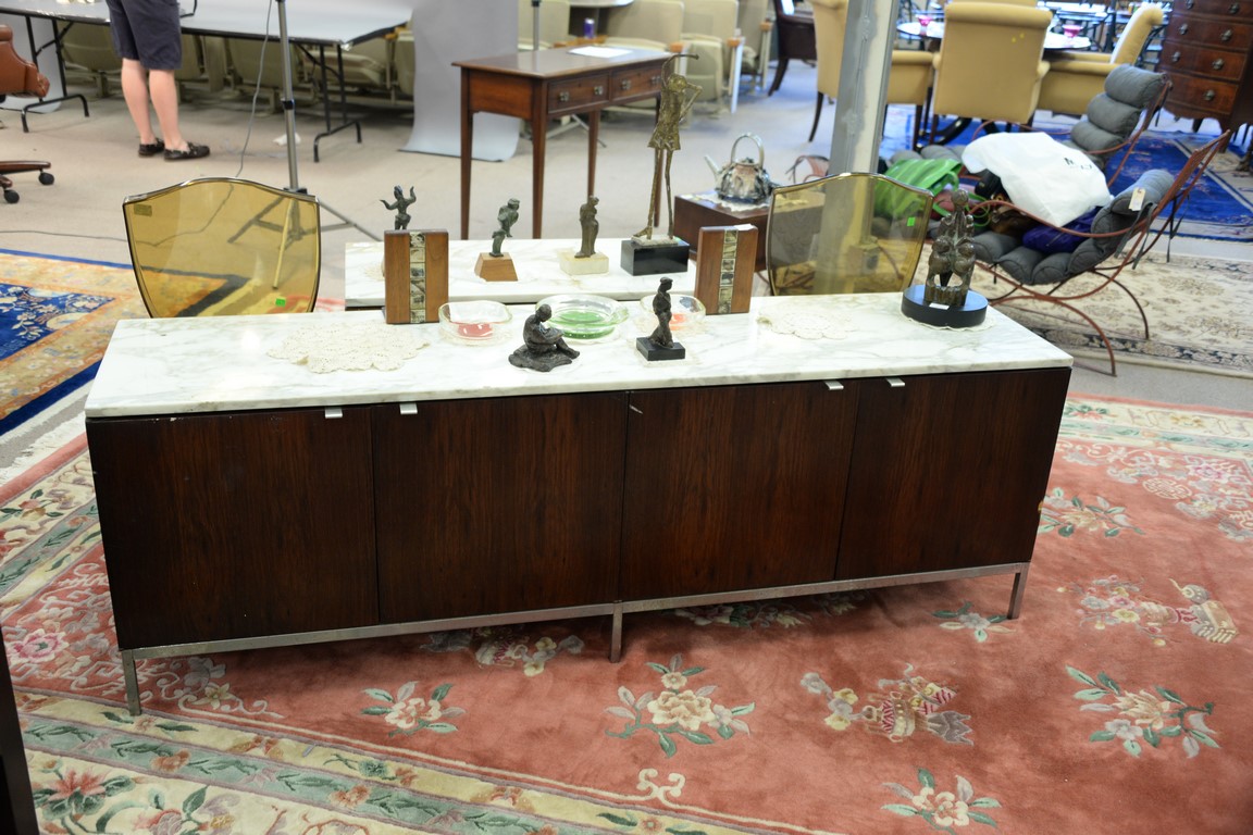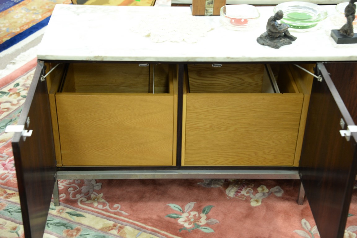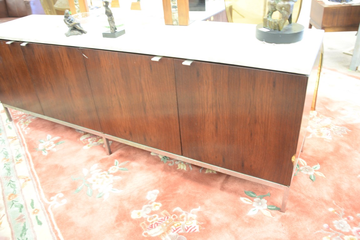 Knoll marble top rosewood credenza veneer loss. ht. 25 1/2in., wd. 75in., dp. 18in.