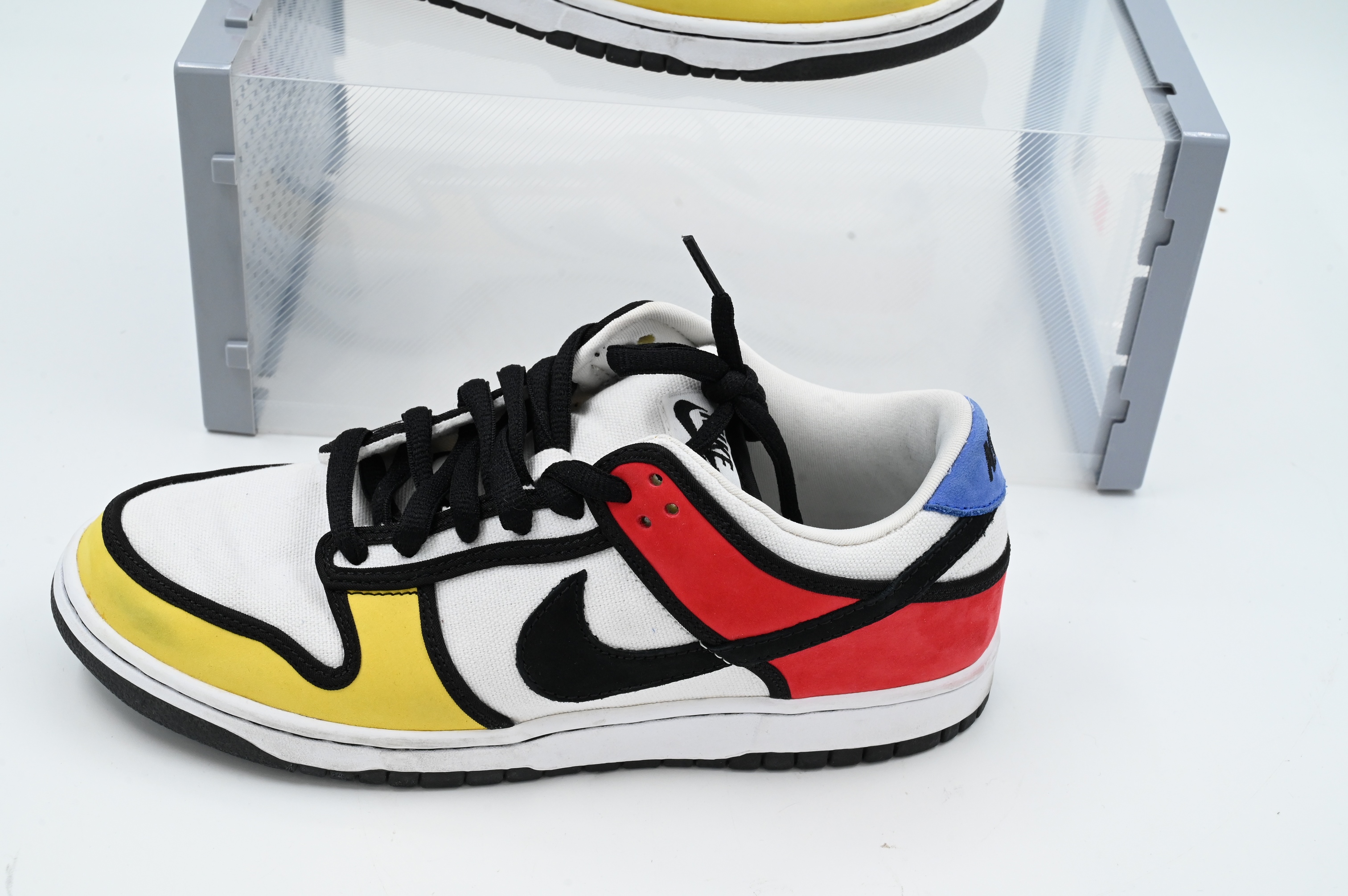 Men’s Nike Sneakers SB Dunk Low “Piet Mondrian” in Red, Yellow, Blue, White, and Back