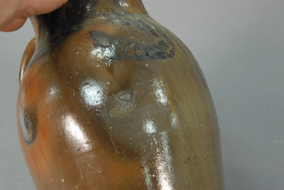 Stoneware two gallon jug with blue decoration. ht. 13 1/2in. Being sold to benefit a Connecticut Museum.
