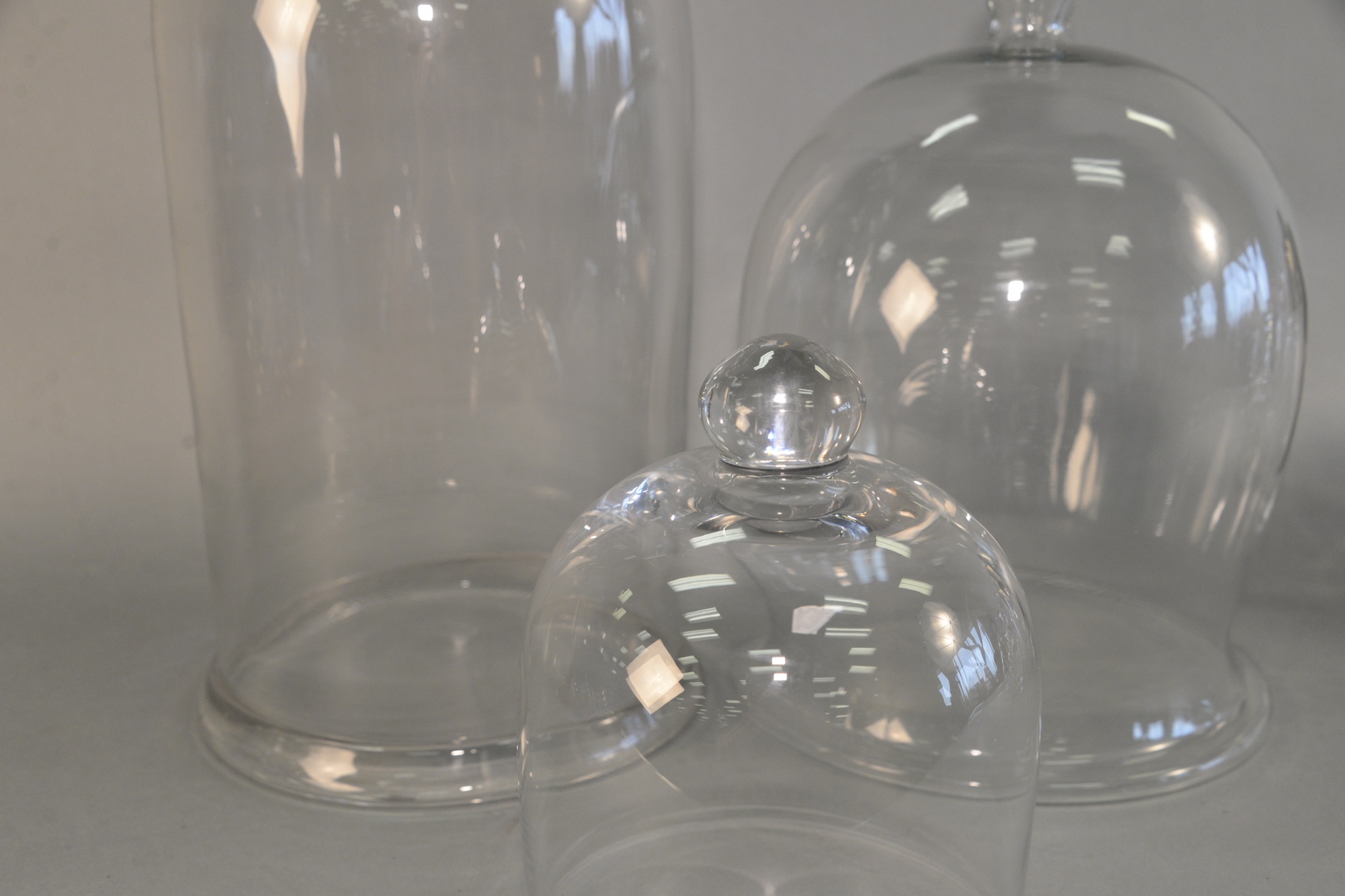 Lot 173: Three Glass Bell Shaped Domes small, medium and large heights: 9, 14 and 20 Provenance: Thirty-five year collection of Dana Coole…