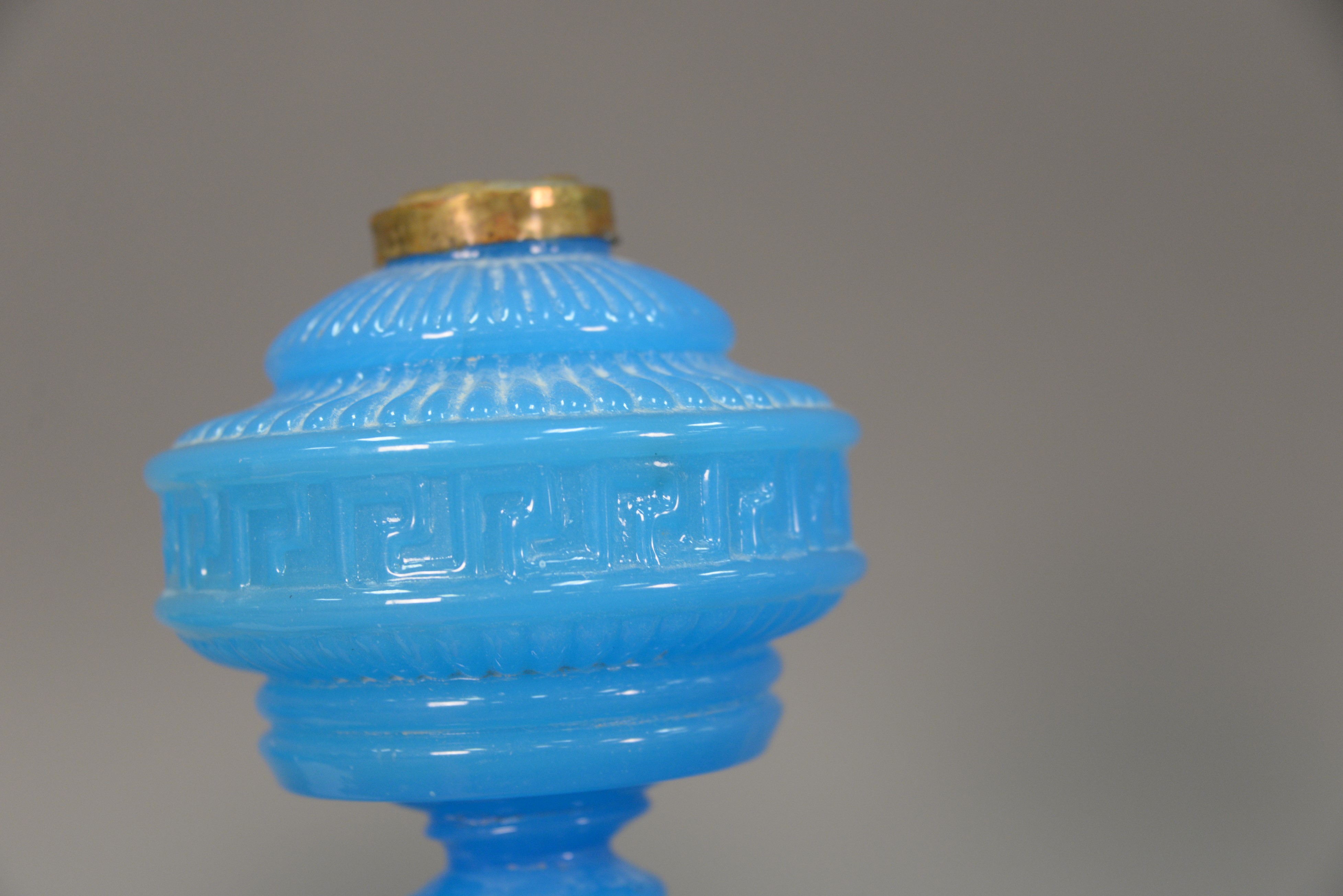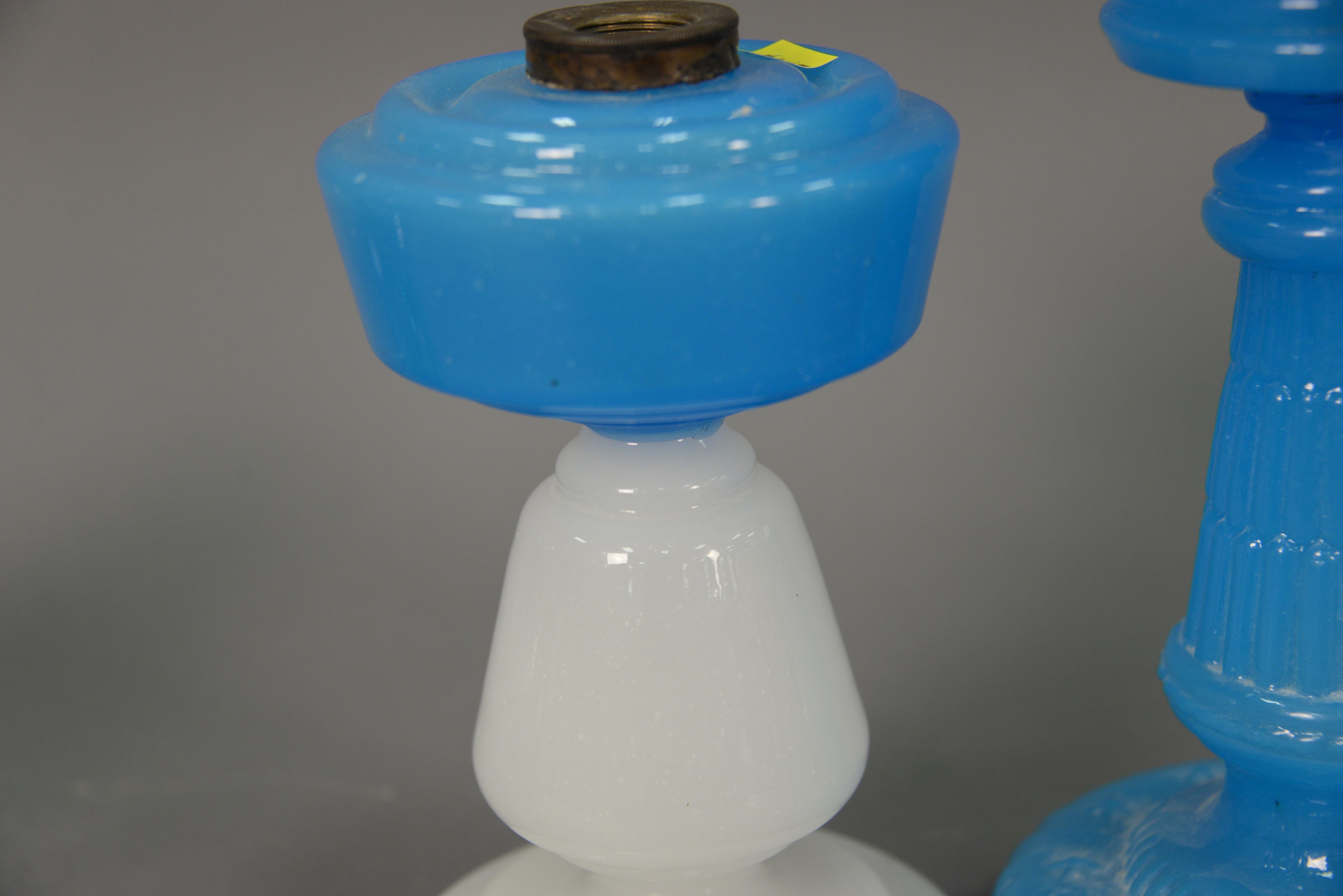 Two 19th century oil lamps including Clambroth and Blue opaline glass oil lamp and an opaline oil lamp. ht. 8 in. & 11 1/2 in.