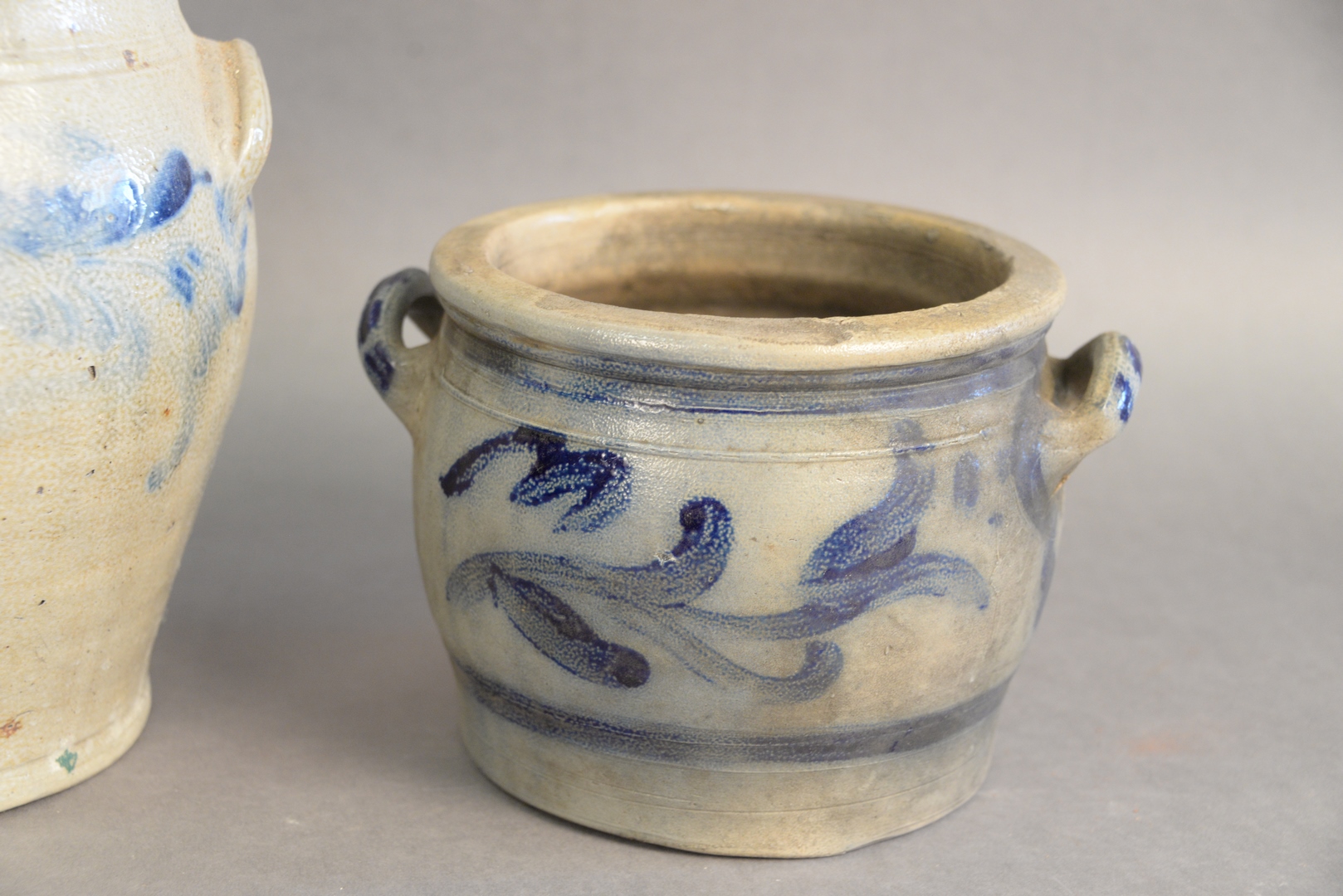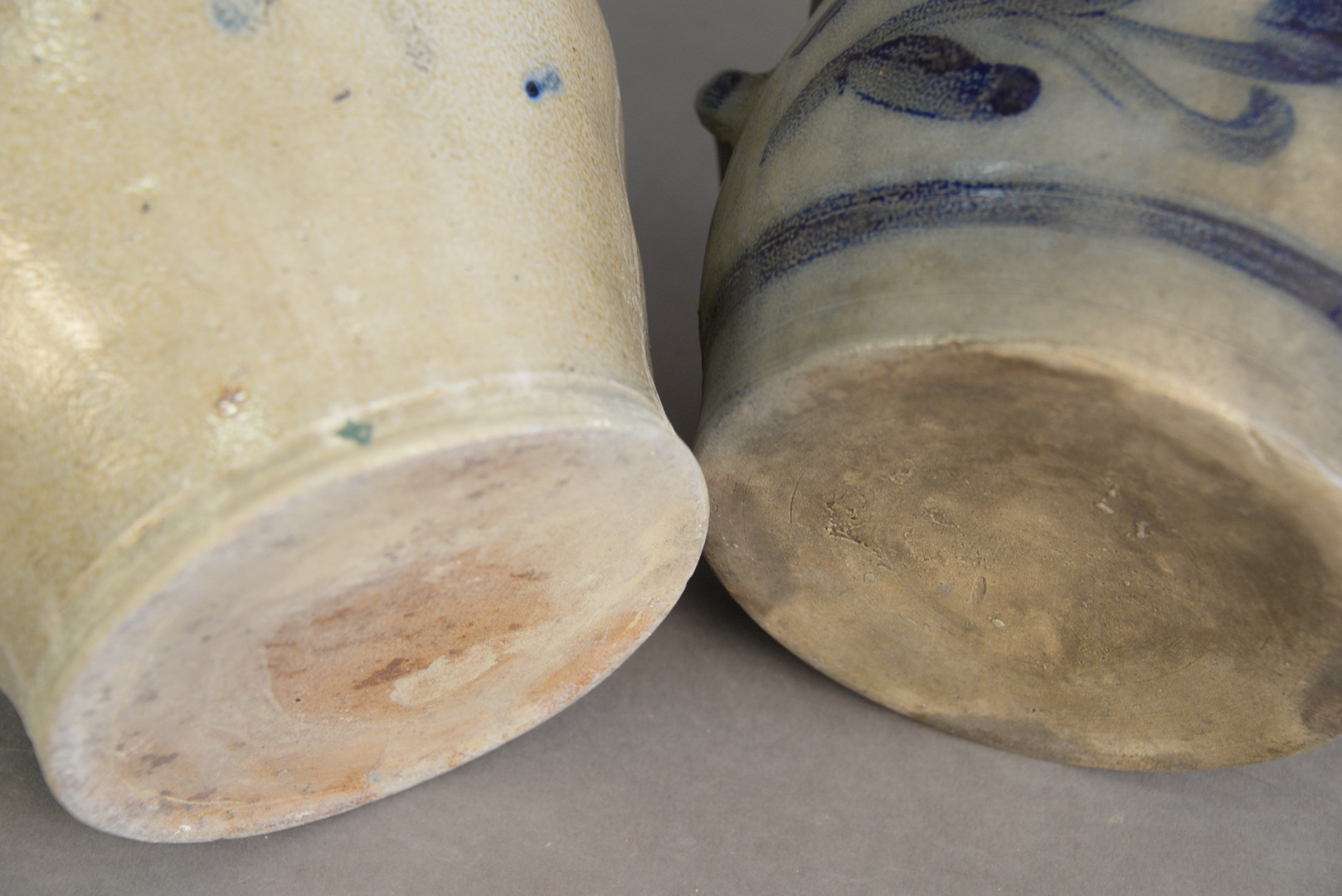 Lot 173: Two Piece Lot of Cobalt Decorated Stoneware, one marked ‘Tegelen’, the other marked ‘1 1/2’, heights 11 and 6 1/2 inches. Provenance: From a Newport, Rhode Island historic home, in the same family since 1761.