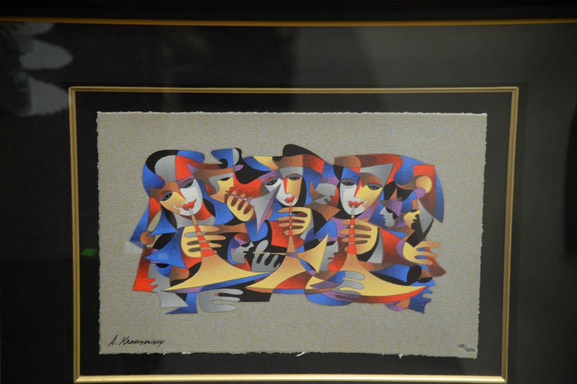 Lot 173A: Two Anatole Krasnyansky lithographs including Musical Sphere and Brass Quintet, sight size 27 x 25 1/2 & 12 x 17
