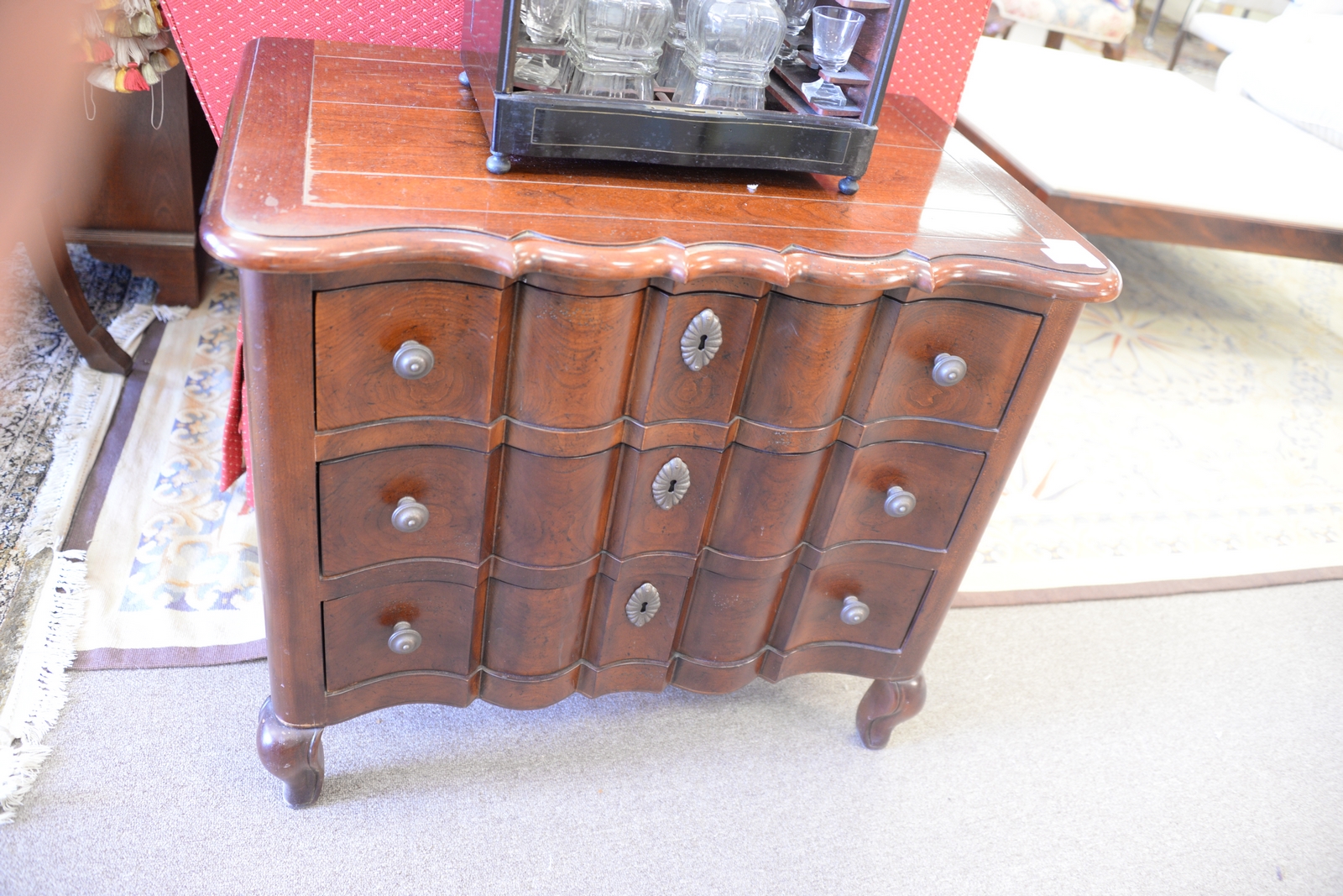 Baker three drawer commode, ht. 26 1/2 in., wd. 30in., dp. 18in.