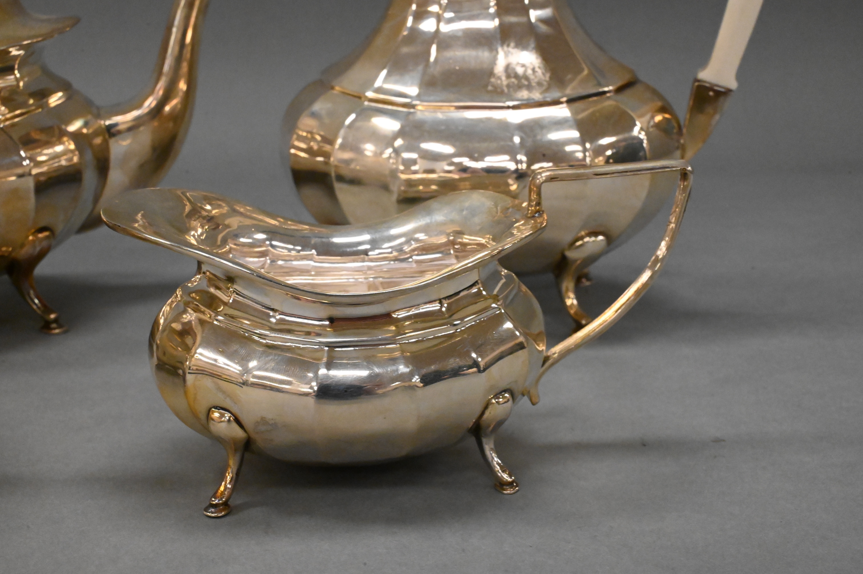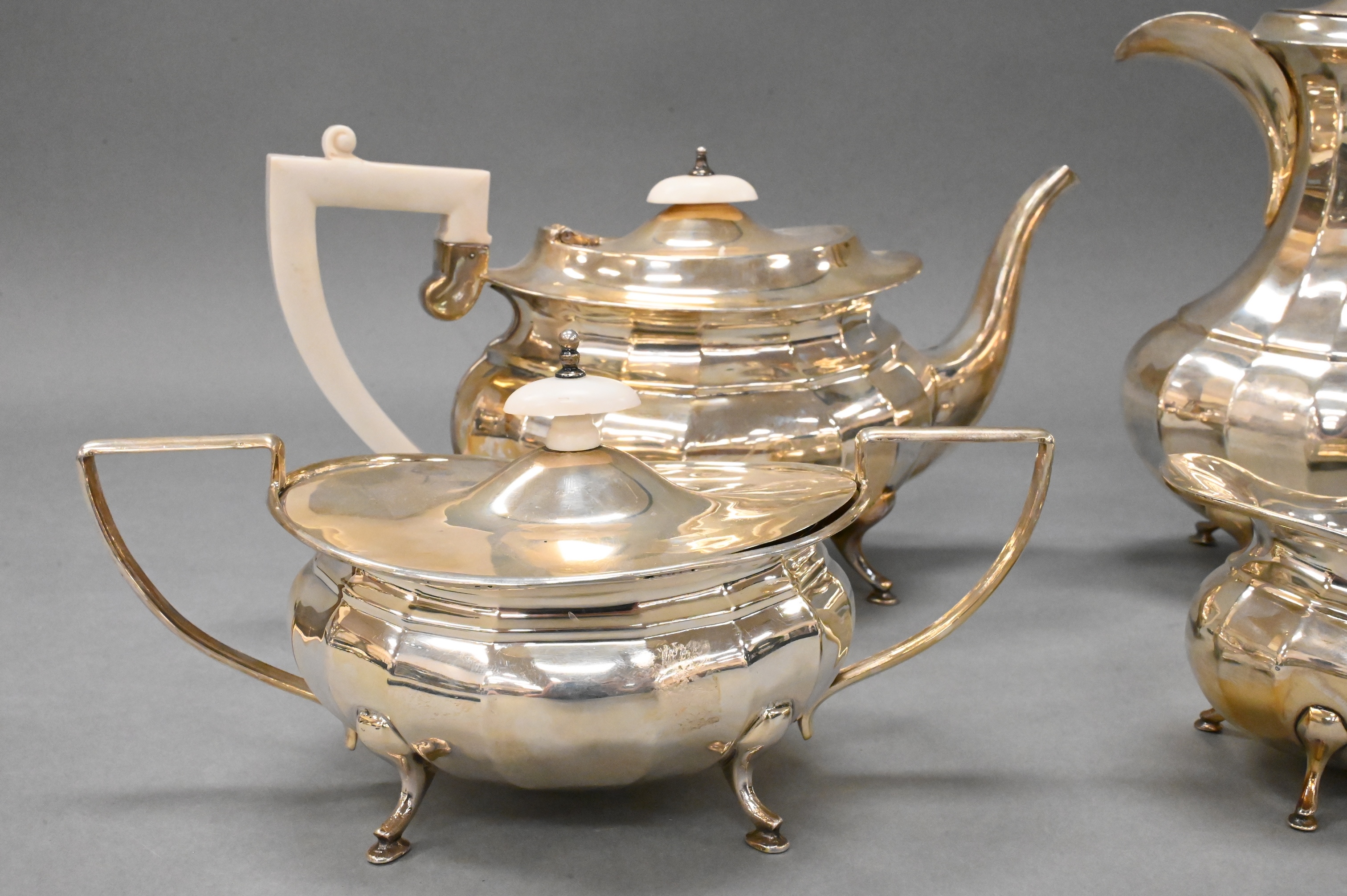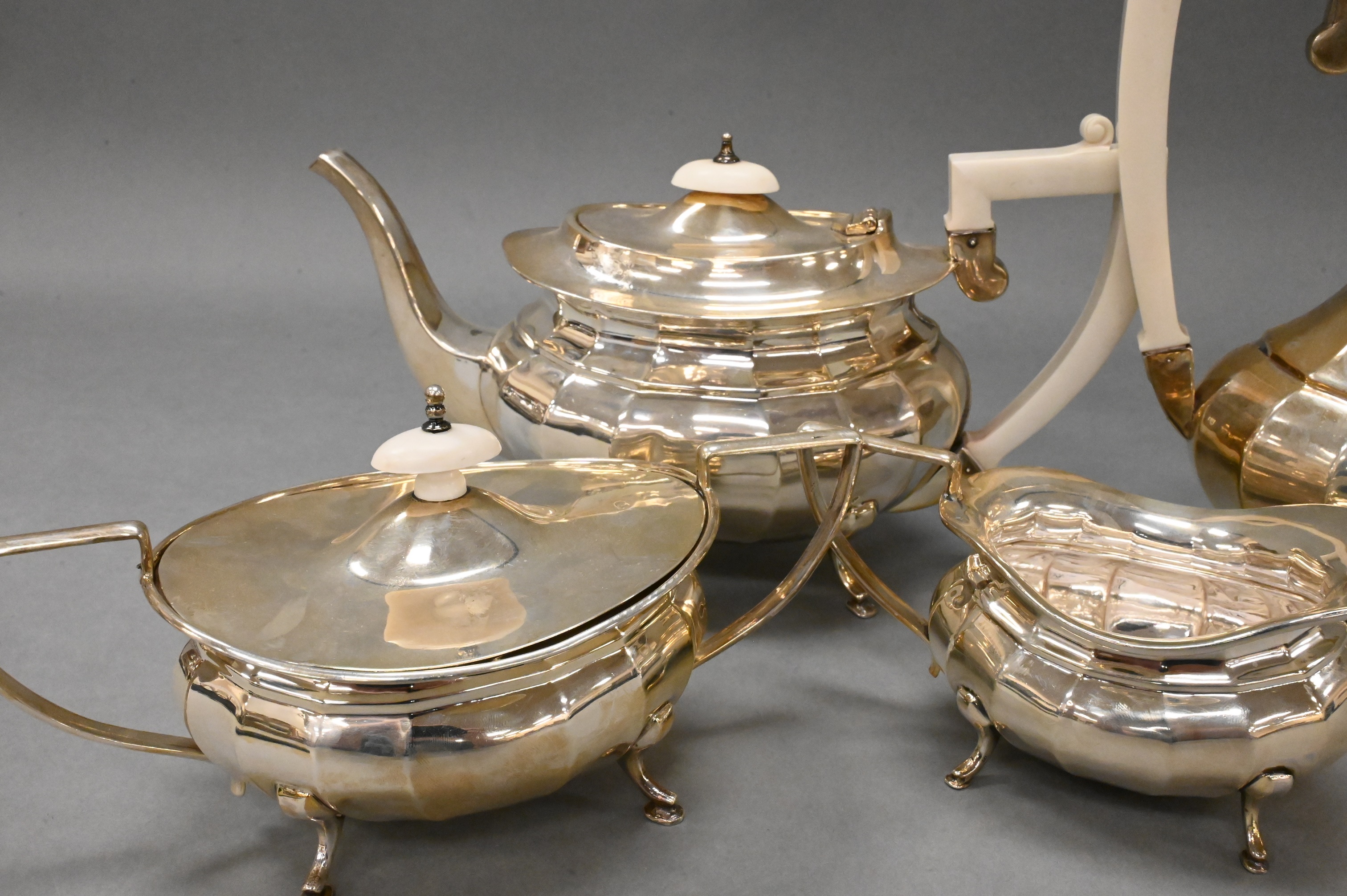 Lot 174: Four Piece Egyptian Silver Tea and Coffee Set