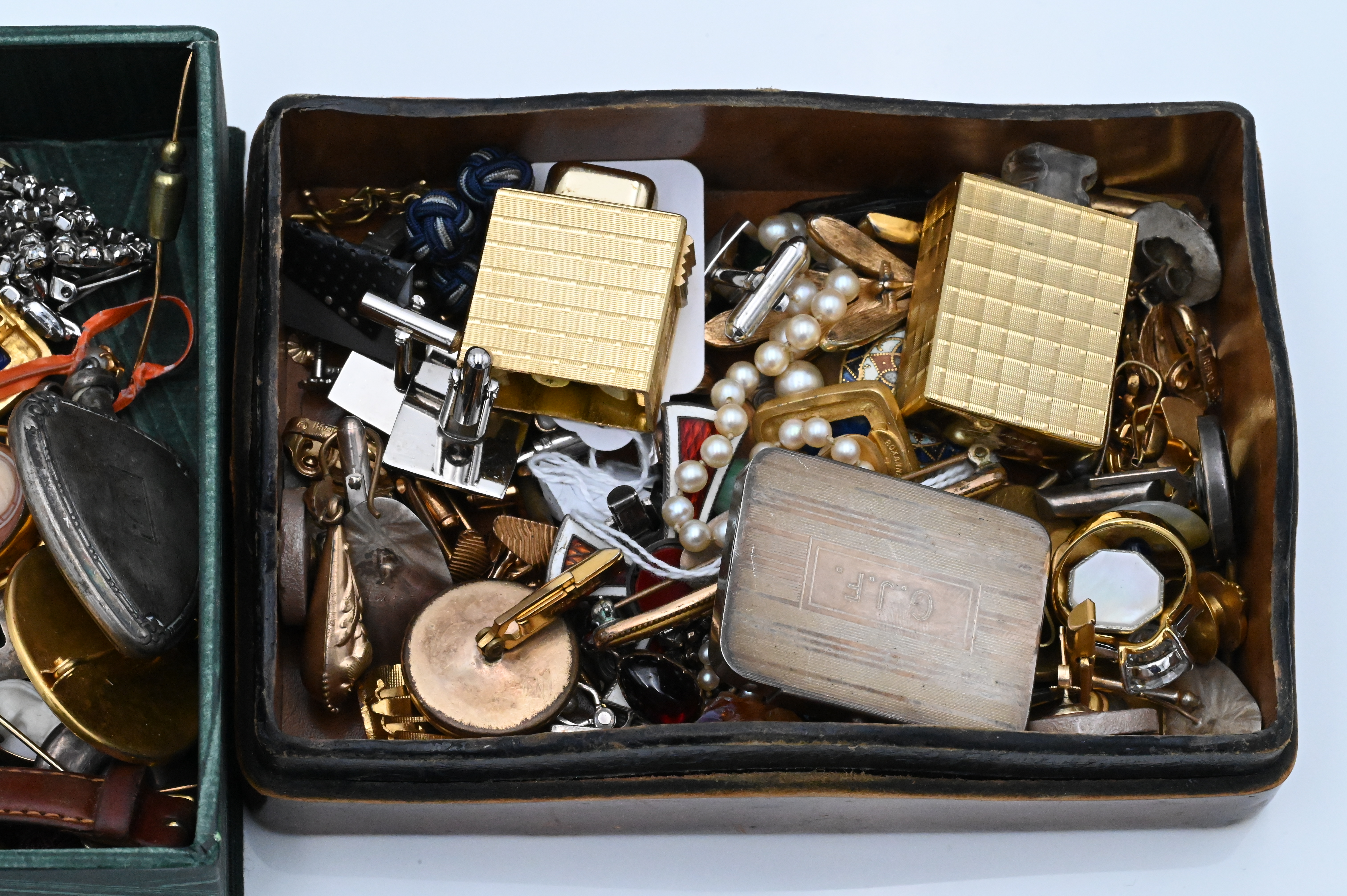 Large Lot of Gold, Silver and Vintage Costume and Victorian Jewelry, to include cufflinks, watch, pins, earrings.