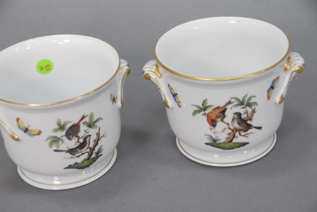 Pair of Herend pots with handles, ht. 5.