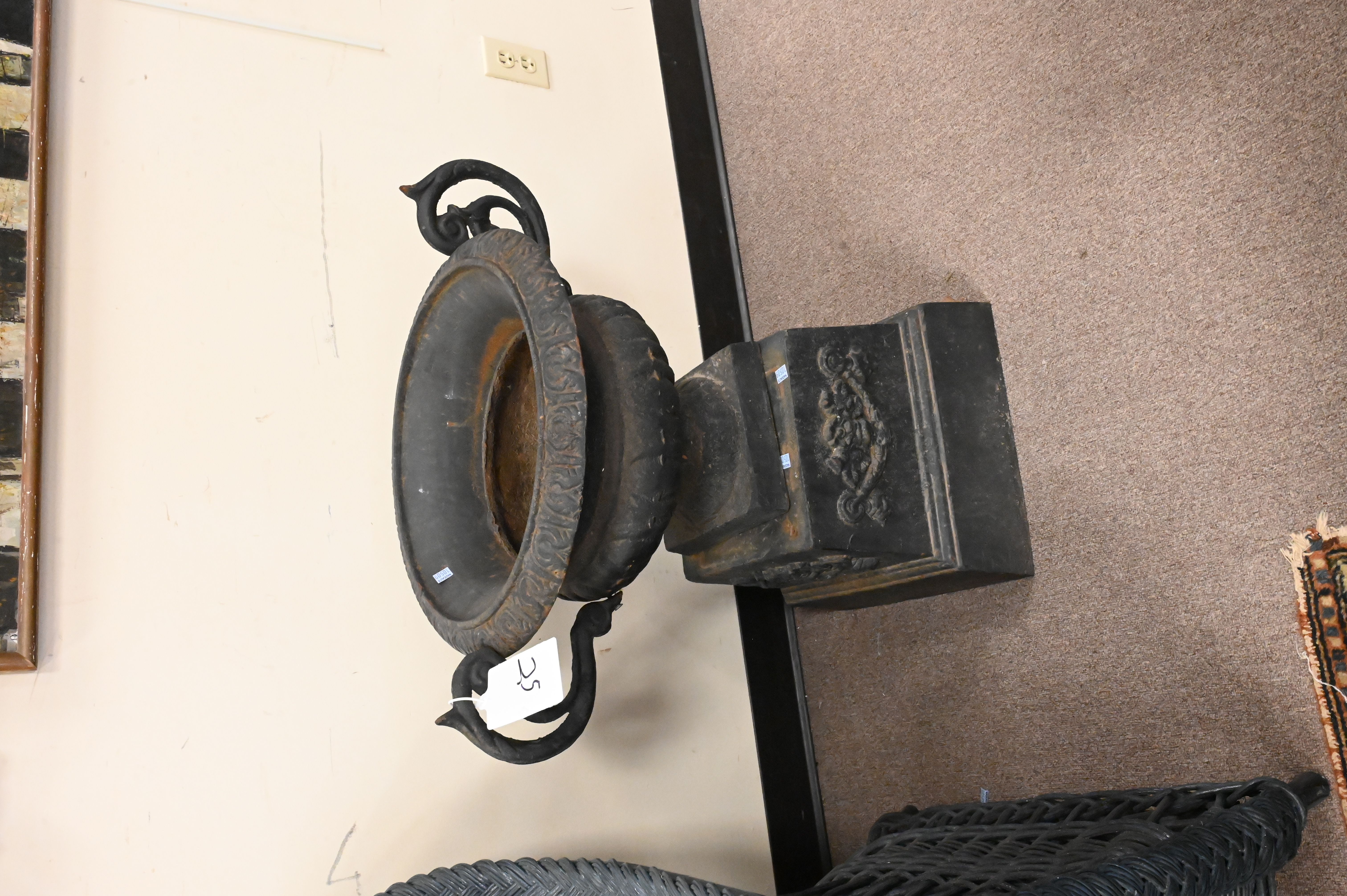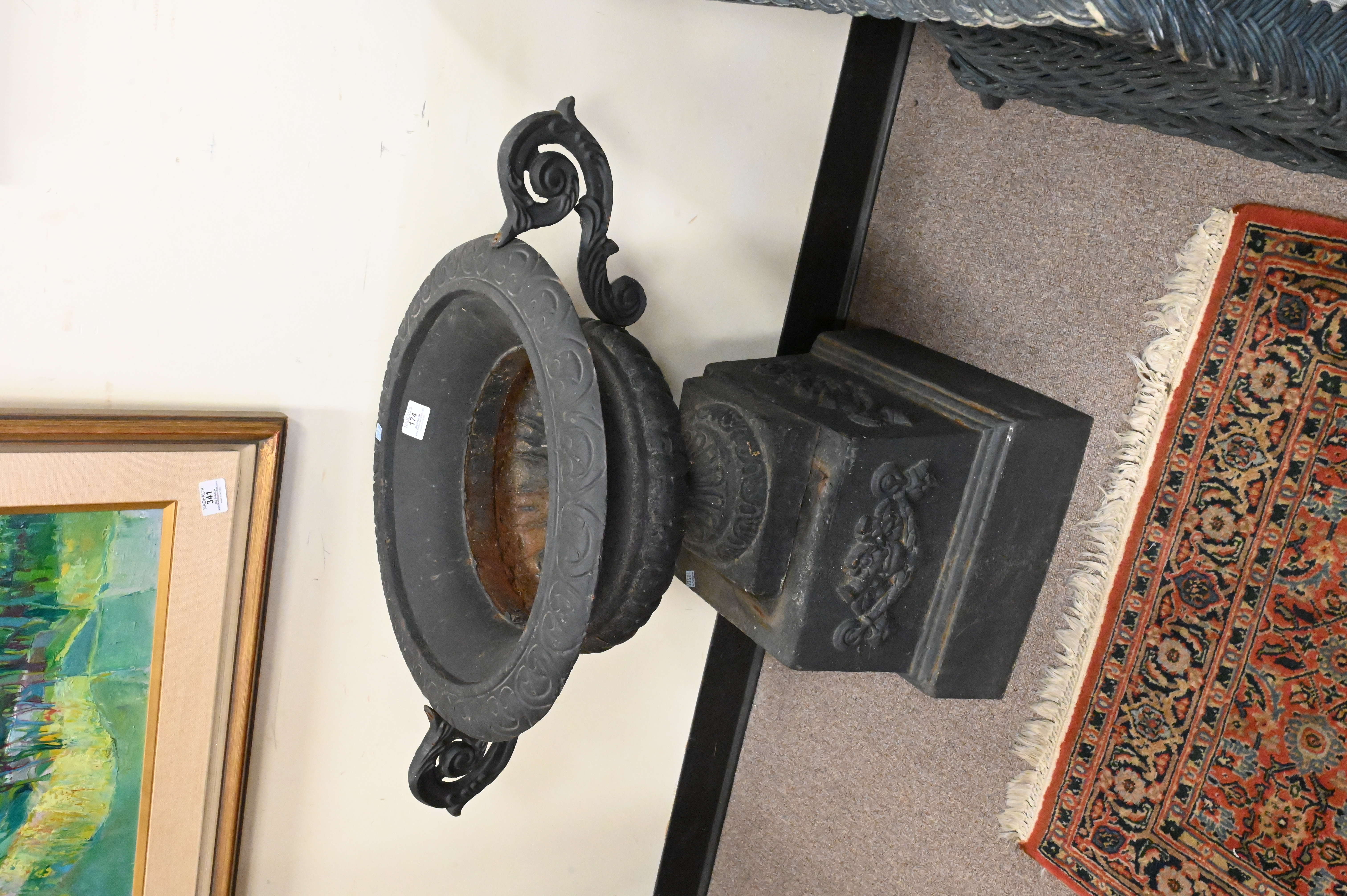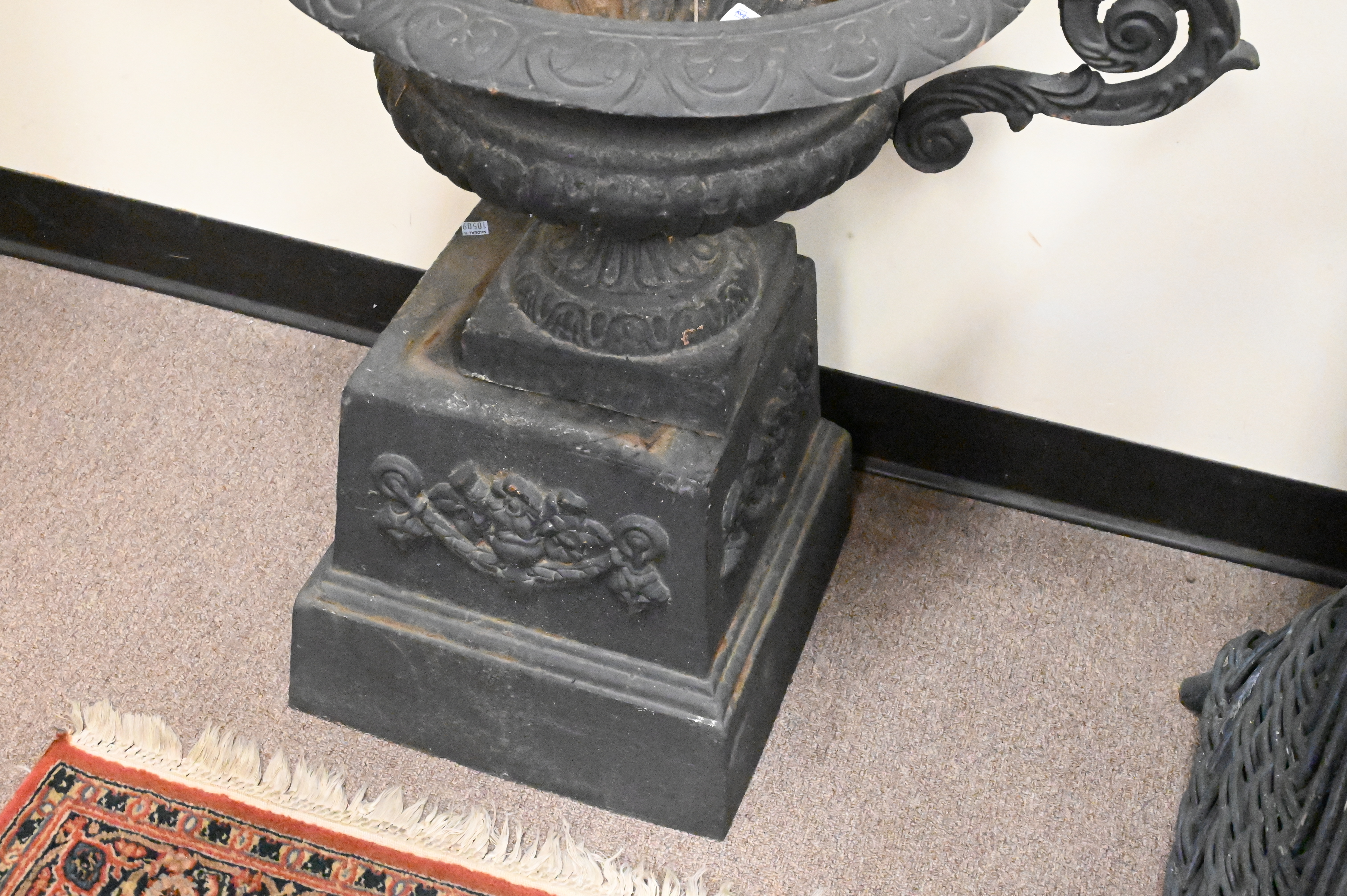 Lot 174: Pair of Iron Urns on Square Pedestals