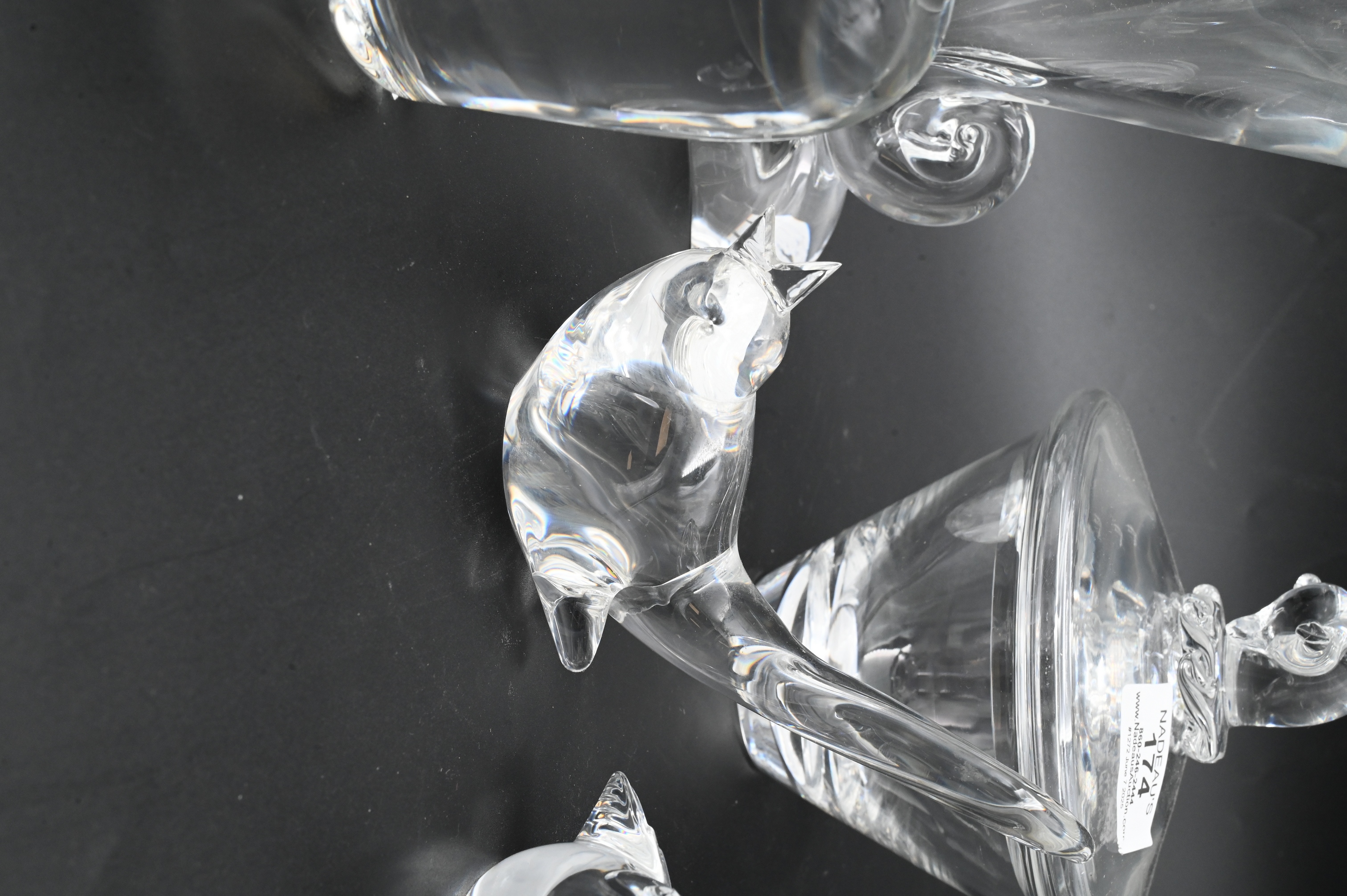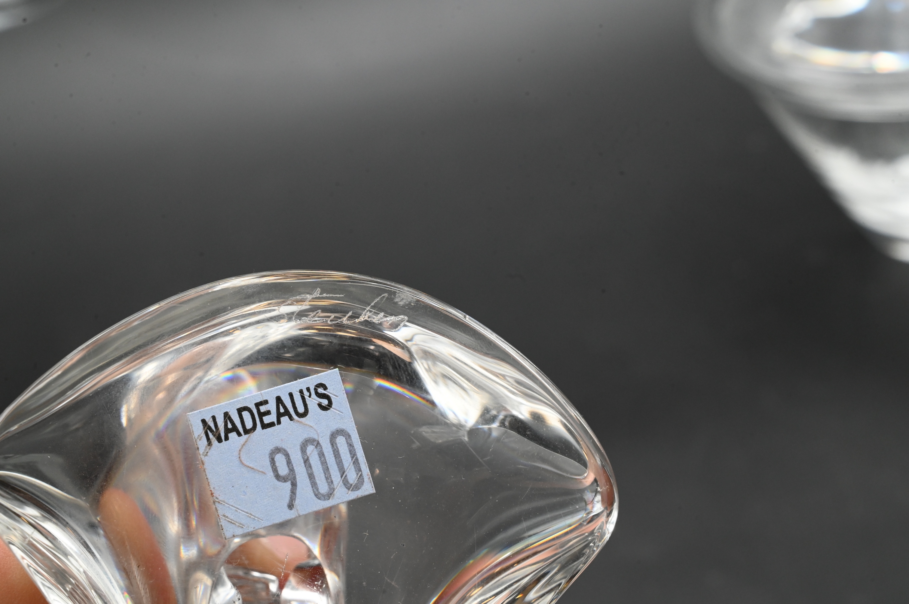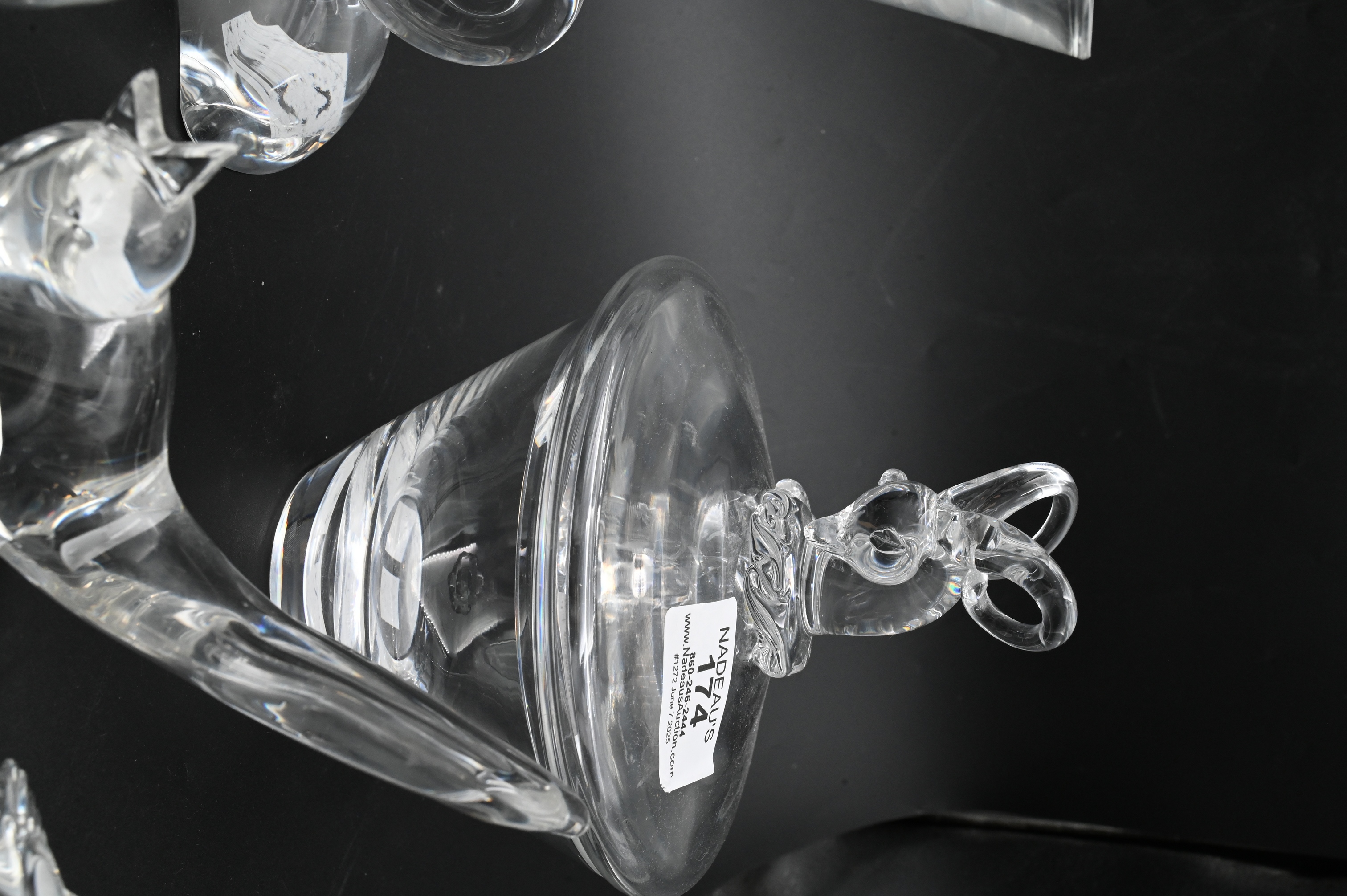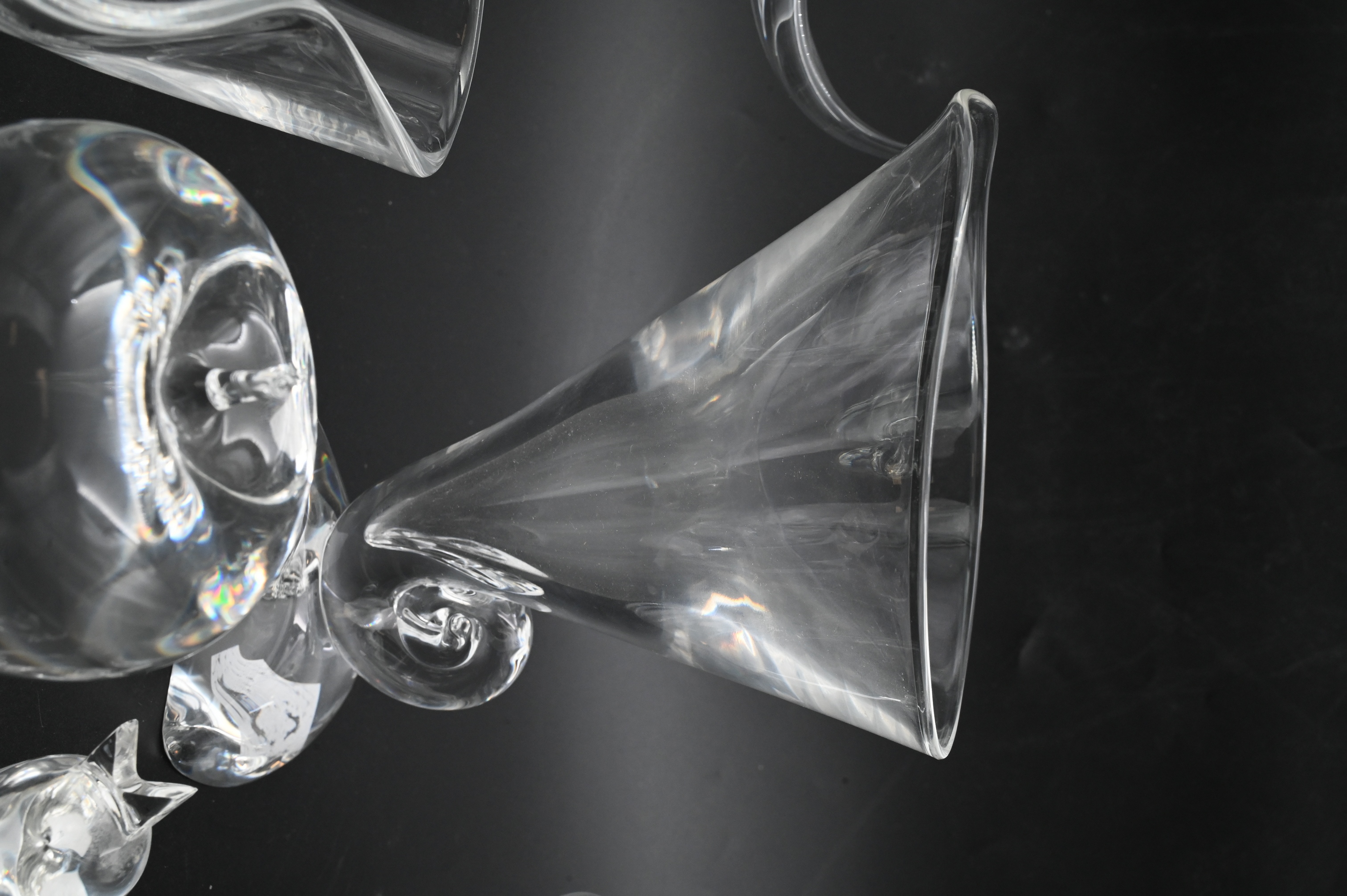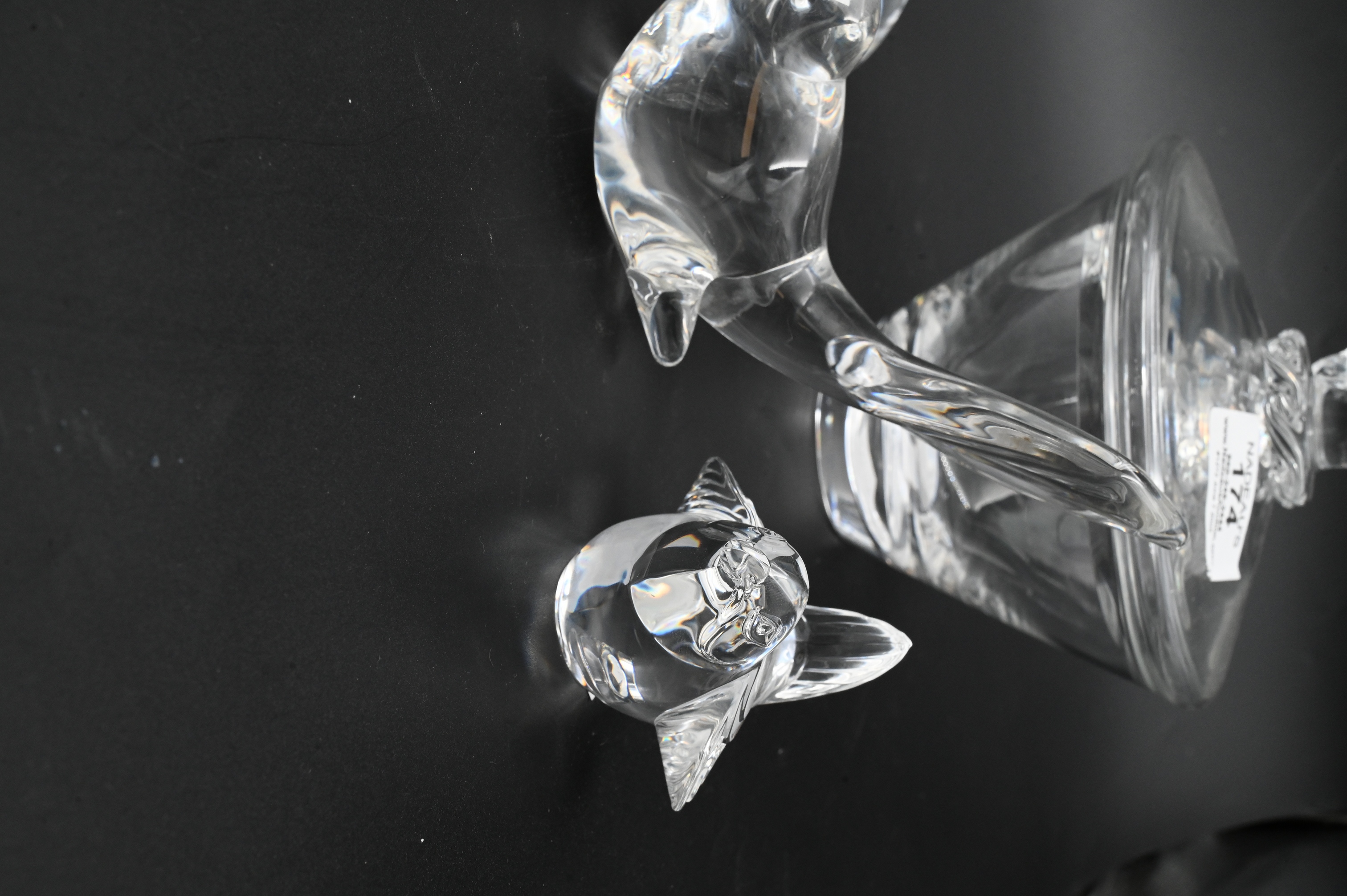 to include “Songbird #8112” candy dish having ram head finial #7936, songbird #8603, Apple #7874,a small bird, Trefoil bowl #8123, along with Snail Scroll Form Vase, all signed on base