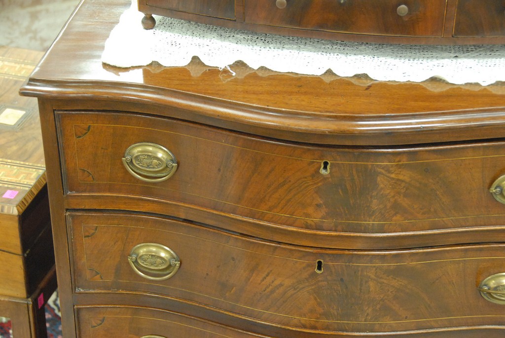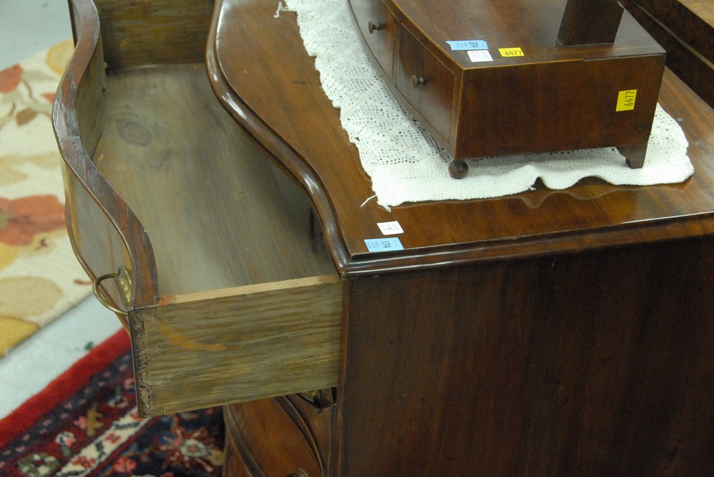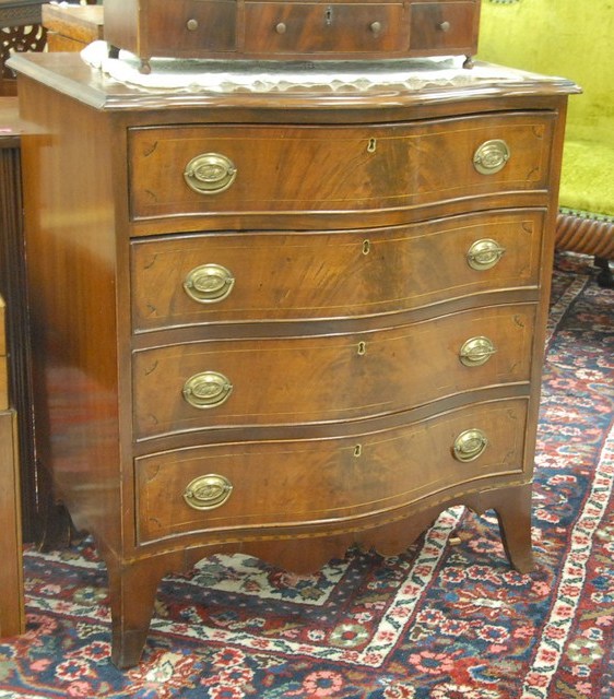 Lot 174: Small size mahogany reverse serpentine four drawer chest made up of old wood, ht. 33in. wd. 30in.