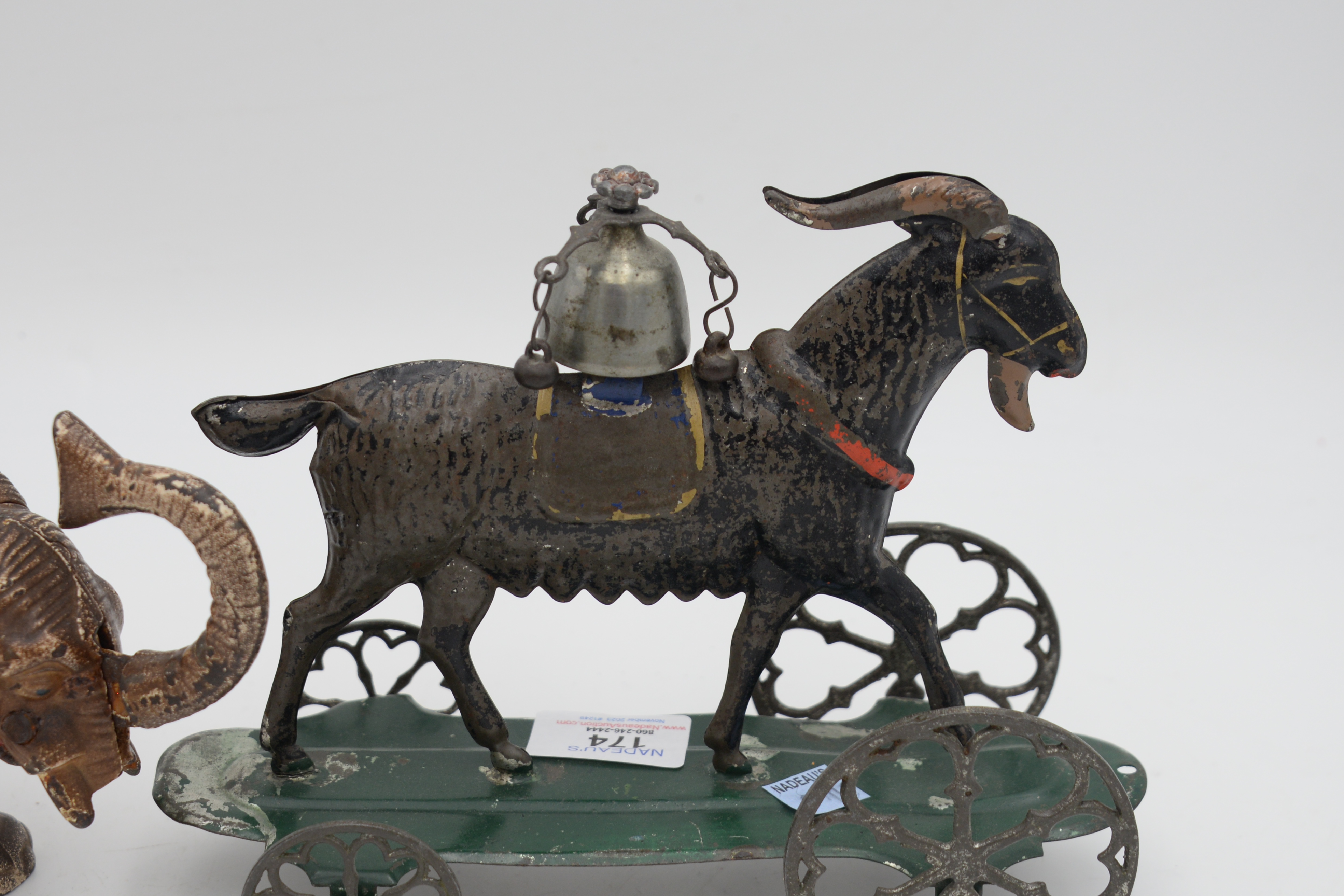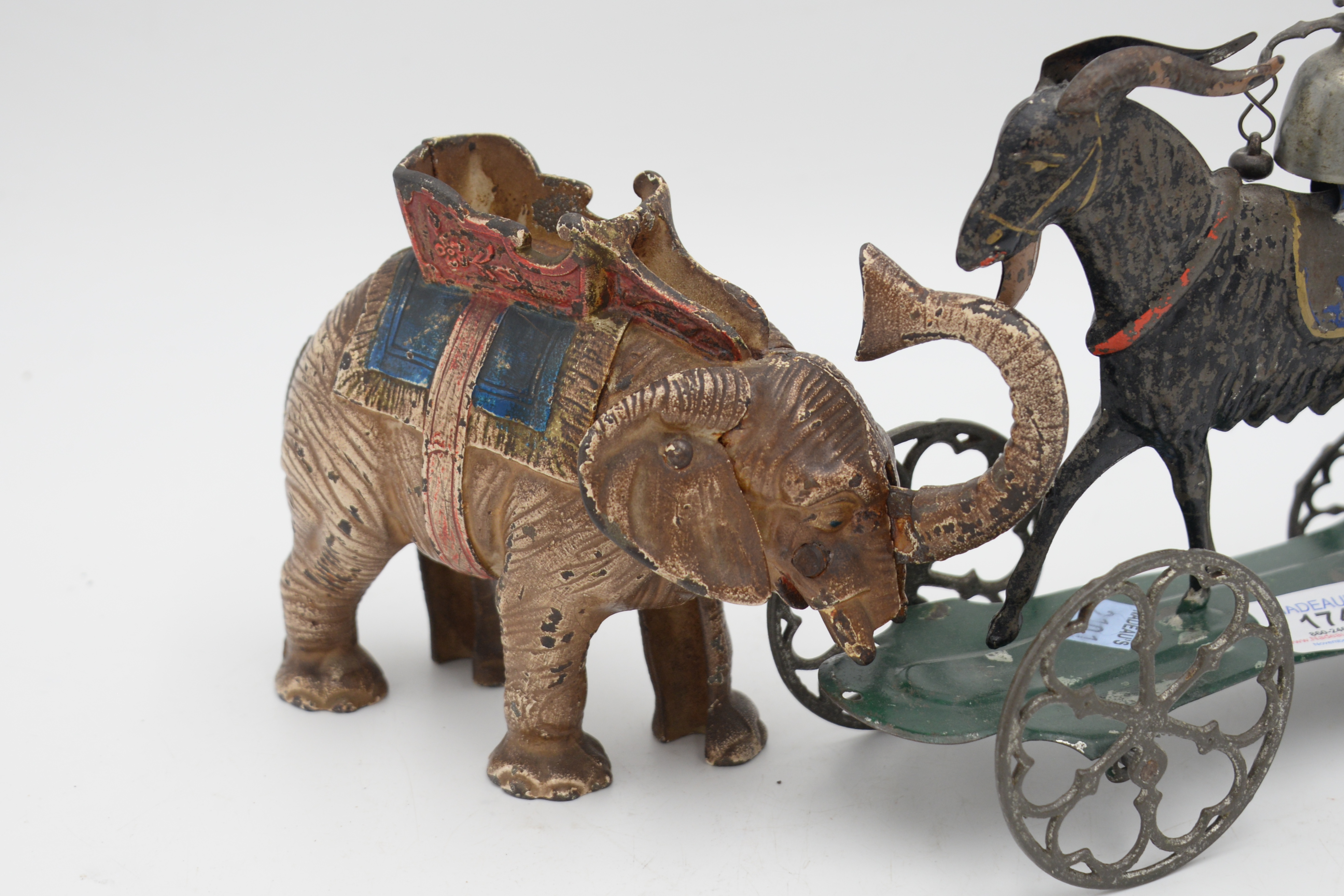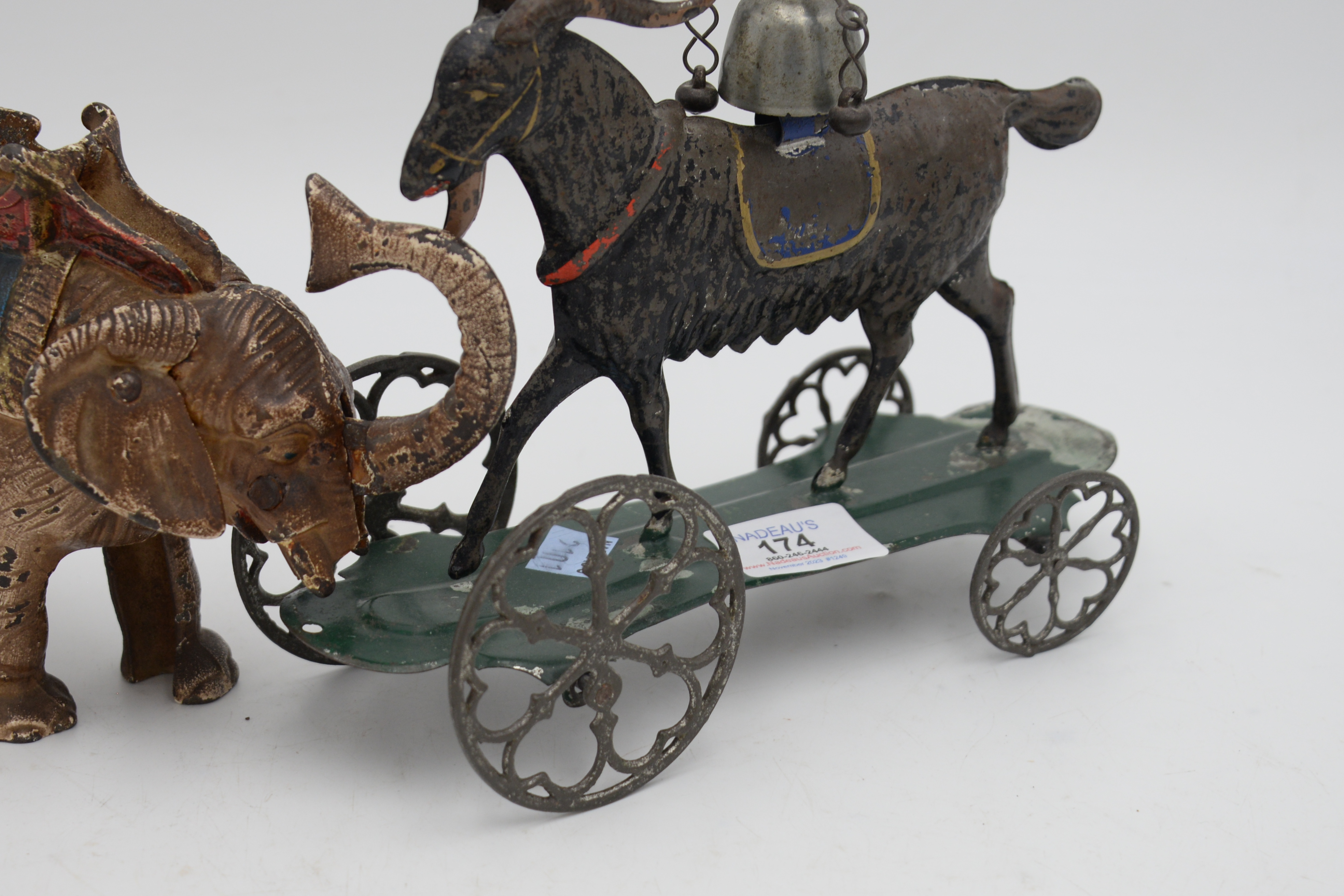 Lot 174: Elephant Figure along with Tin Goat Set on Wheels