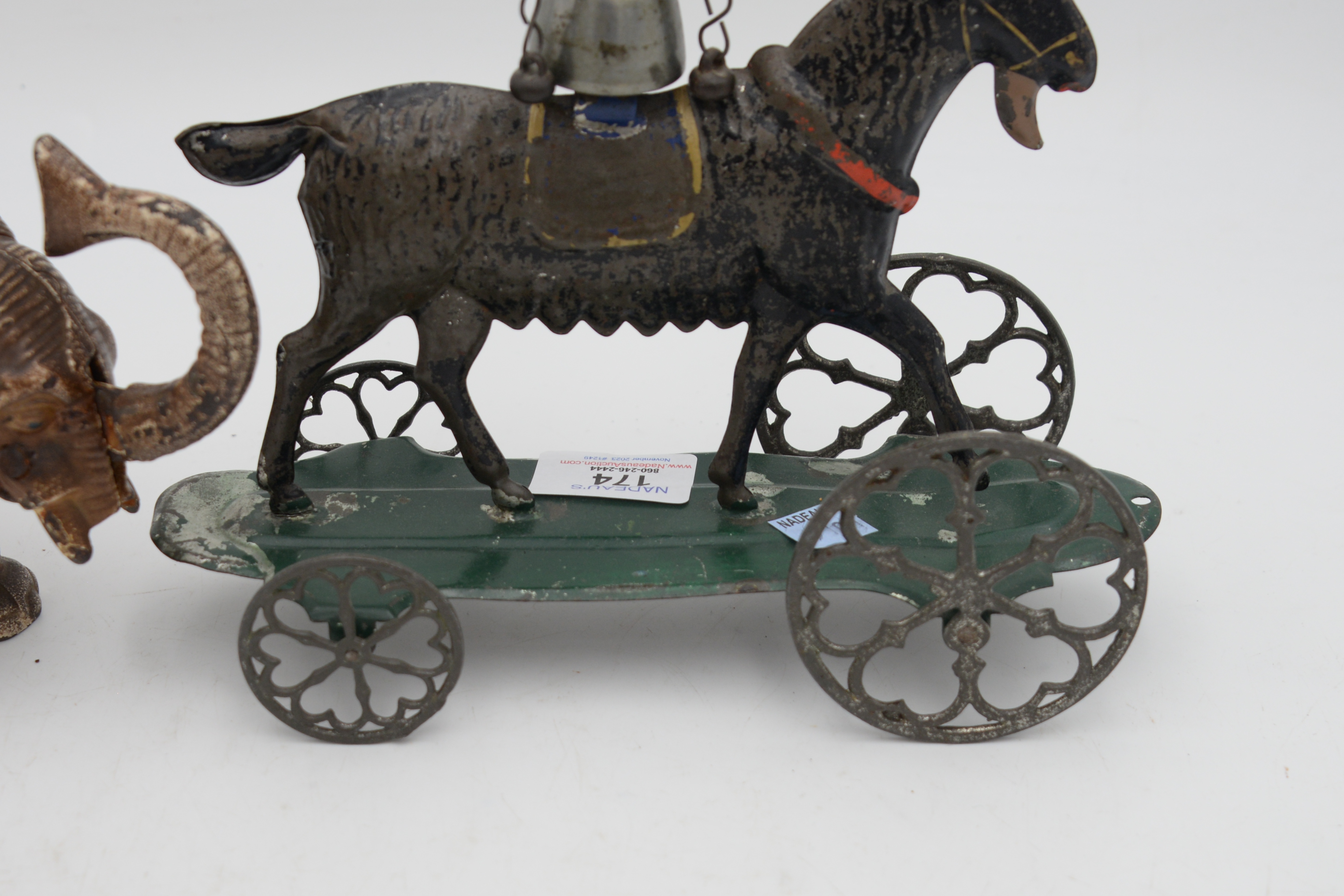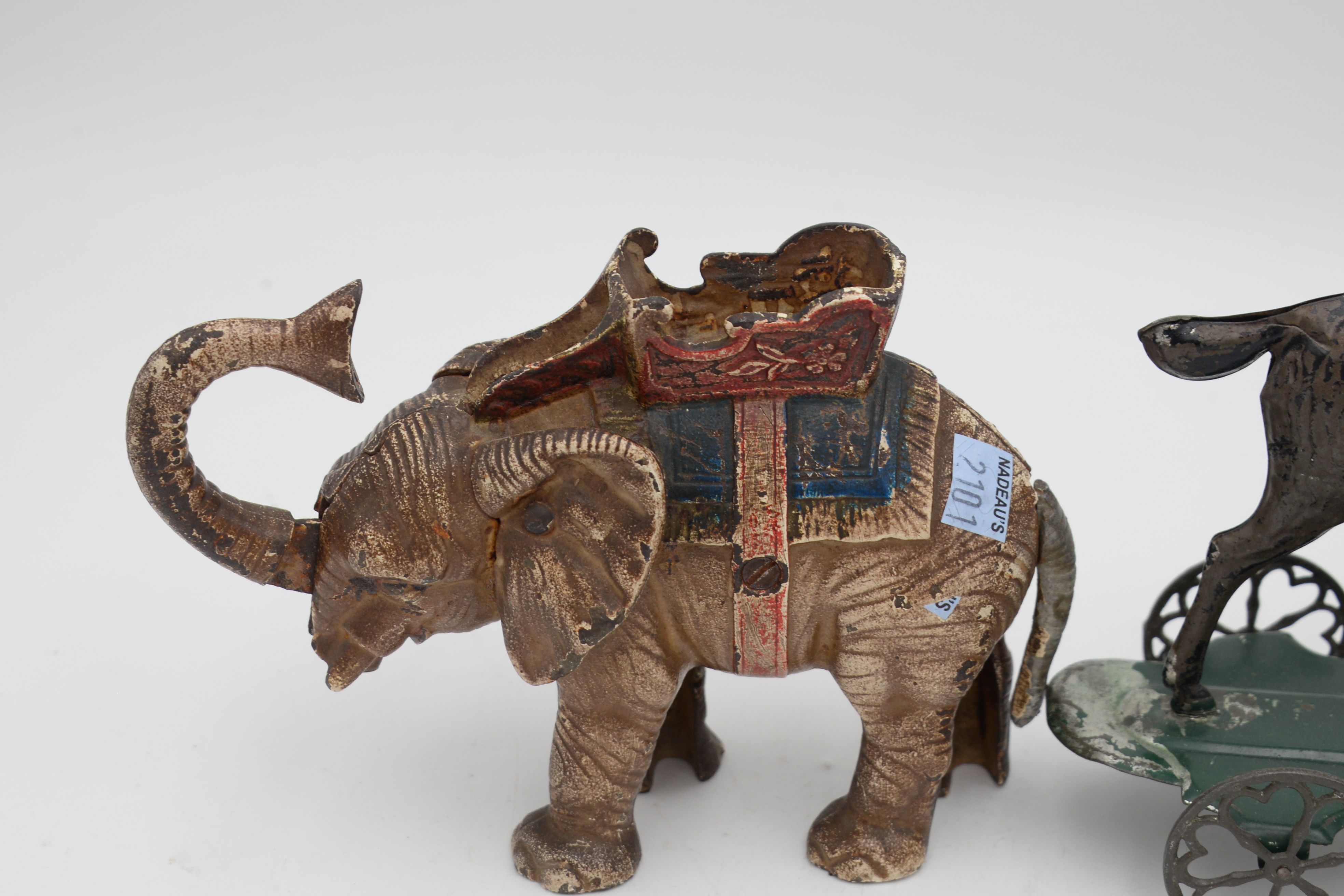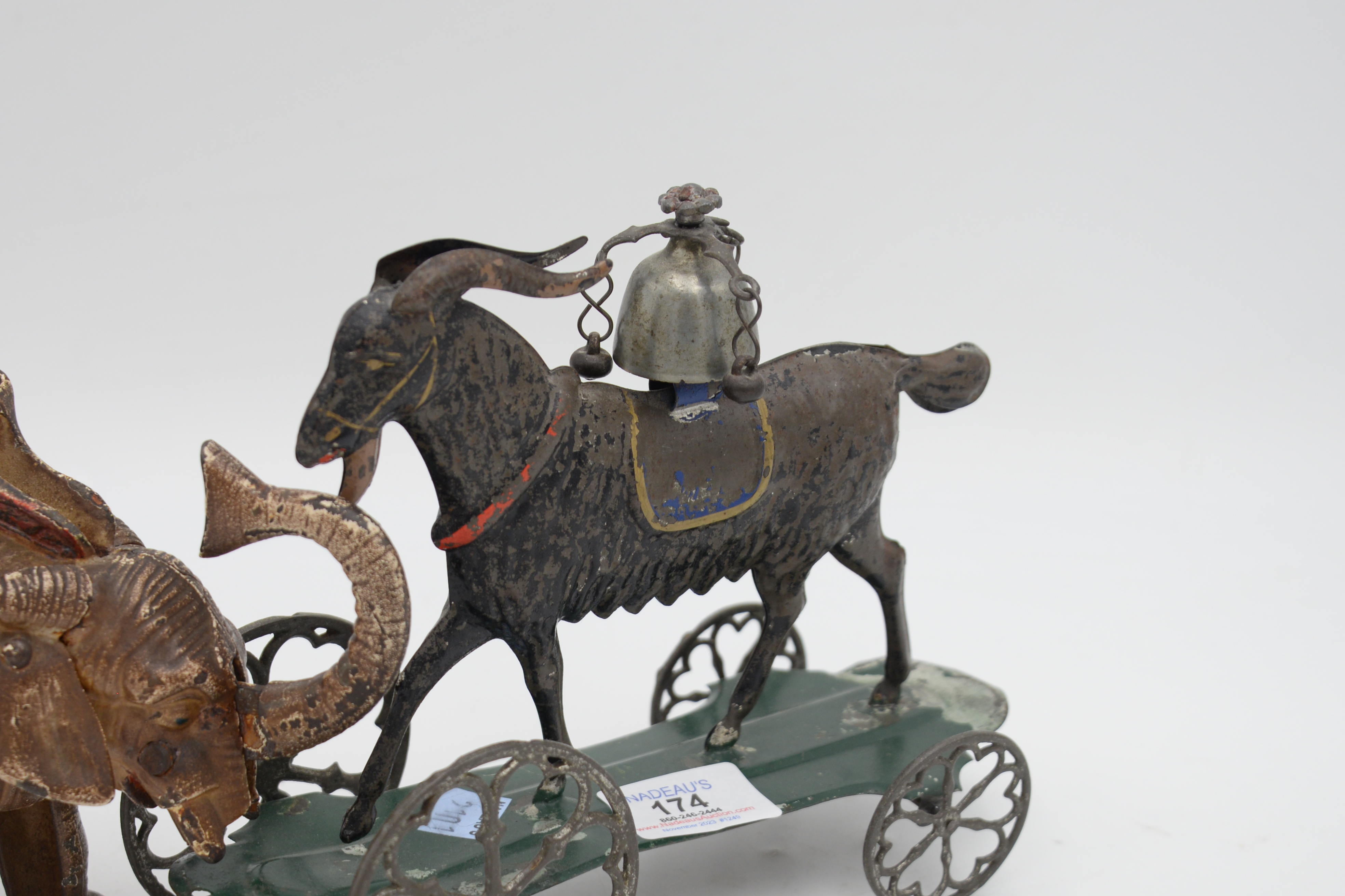 Lot 174: Elephant Figure along with Tin Goat Set on Wheels